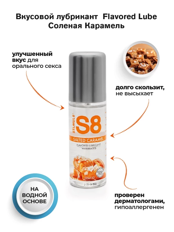 Восхитительный гель с ароматом и вкусом соленой карамели на водной основе "Stimul 8 Salted Caramel" - идеальная немецкая классика для самых чувственных моментов!
