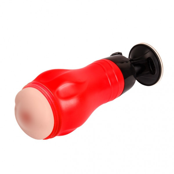 Мастурбатор помещен в специальный тубус, выполненный из ABS-пластика в красном цвете. В основании тубуса имеется мощная присоска, которая позволяет крепить мастурбатор к любой ровной поверхности, а специальное колесико еще и позволит отрегулировать угол наклона!