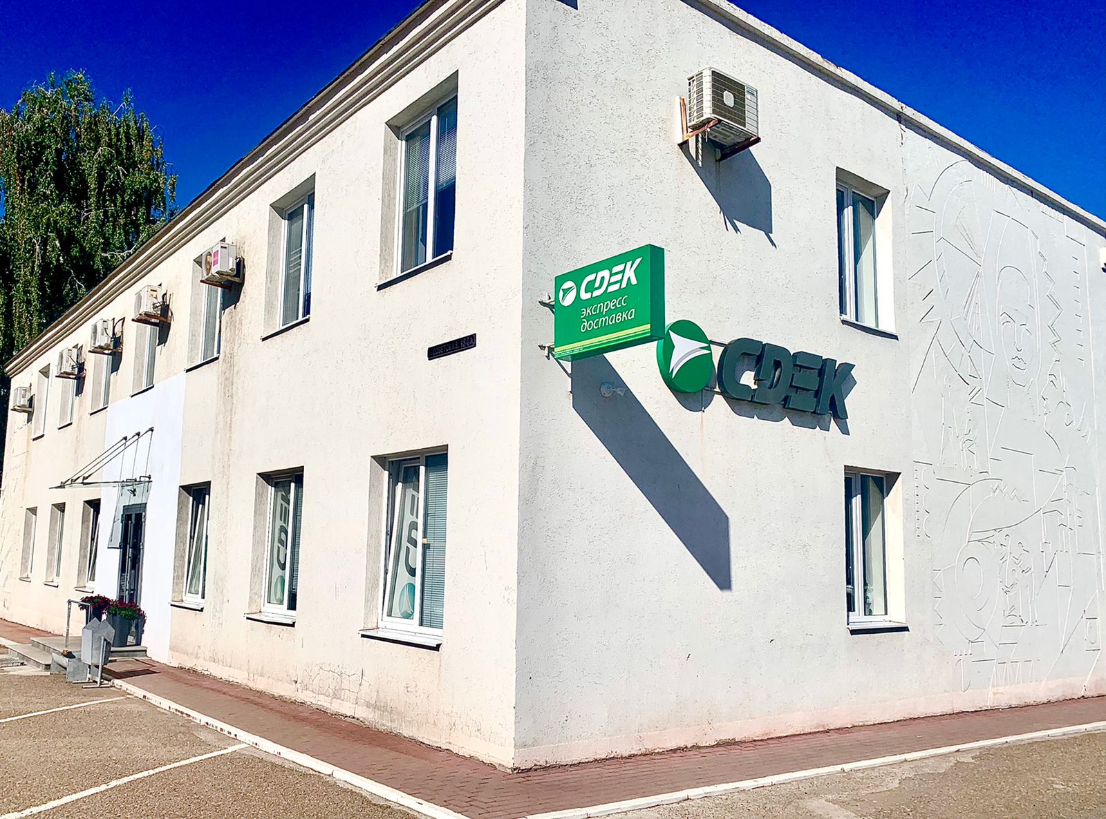 Автобусная остановка «Горгаз», белое двухэтажное здание, центральный вход