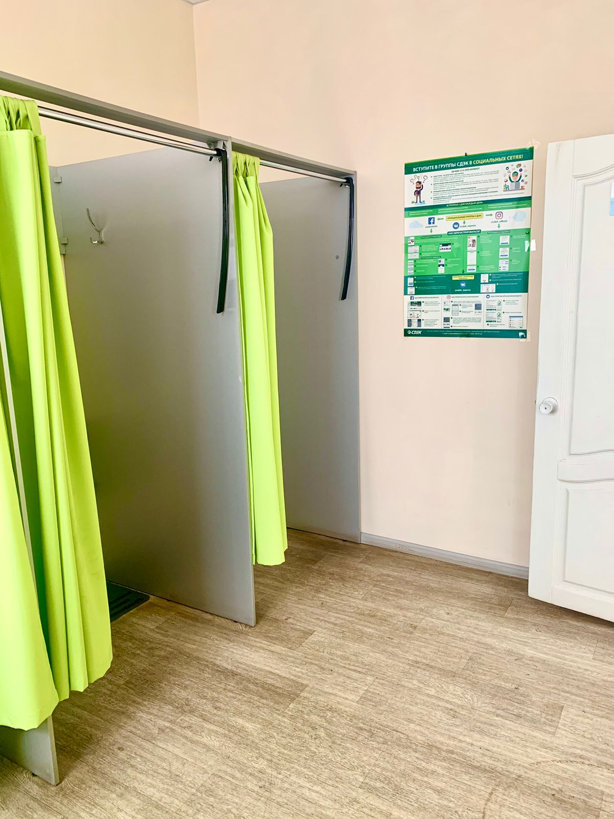 Войти в отделение банка Совкомбанк через центральный вход, на 1 этаже расположен постамат.