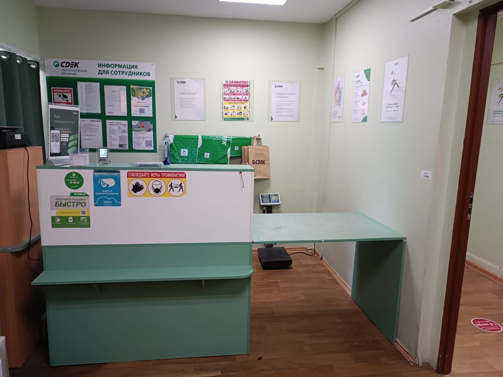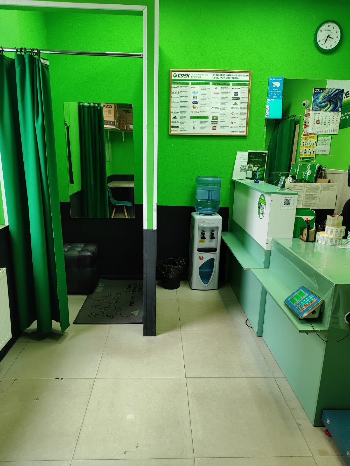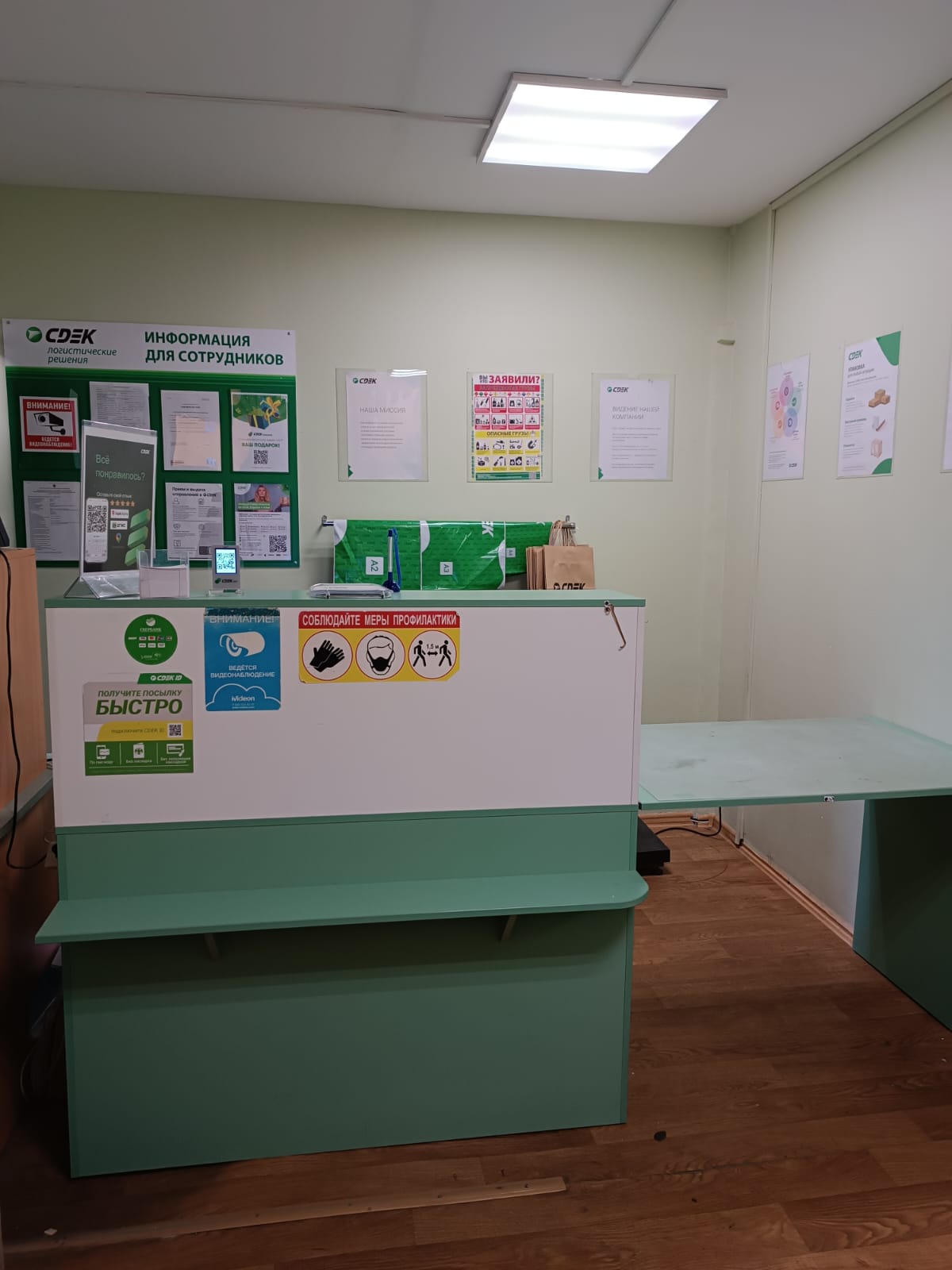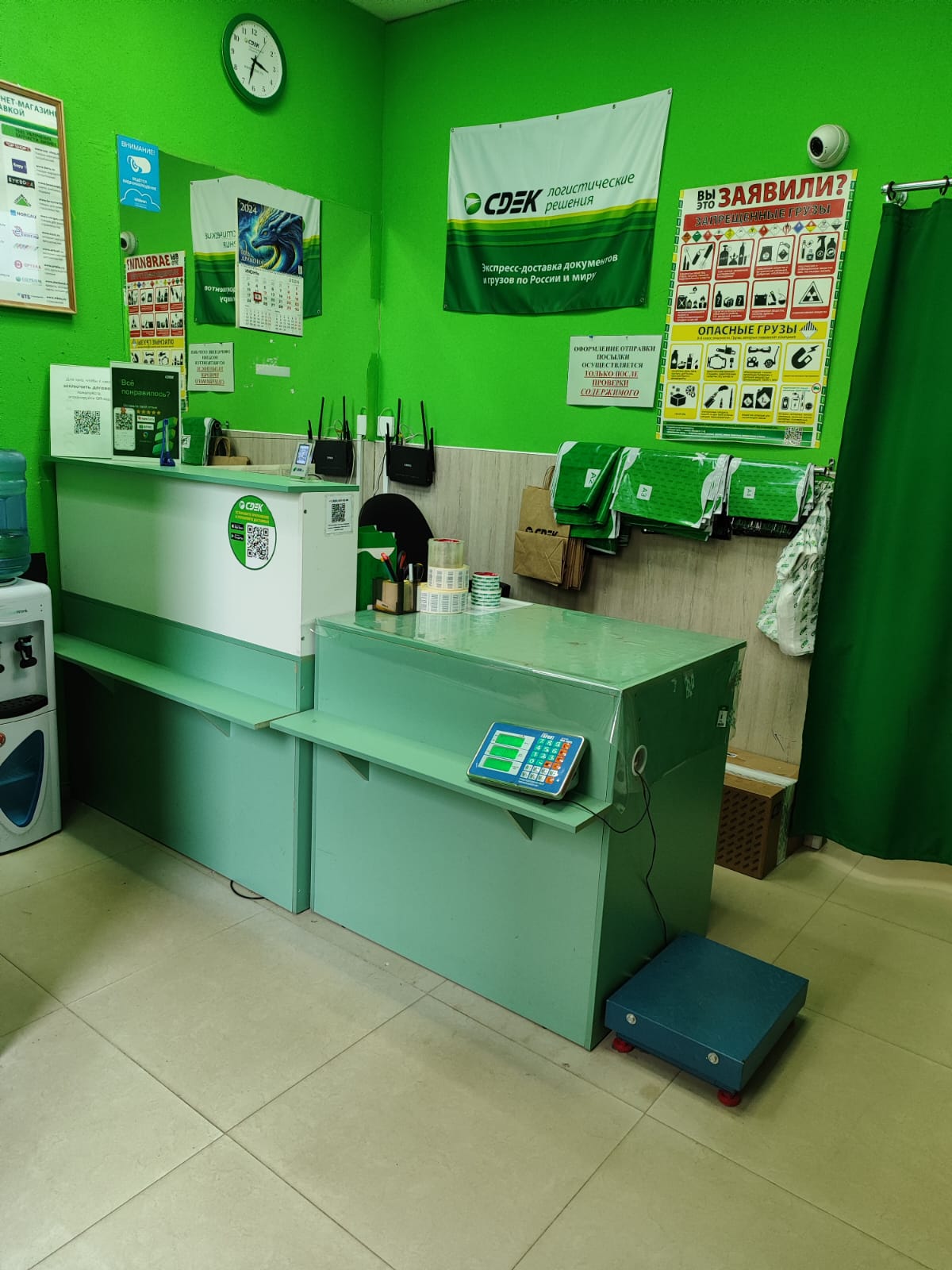 Остановка МФЦ. Пешком в сторону церкви по проспекту Ленина (МФЦ остается сзади). Пройдя дом №8, по левую руку с торца дома будет отдельный вход в цокольный этаж с вывеской «CDEK». Спуститься