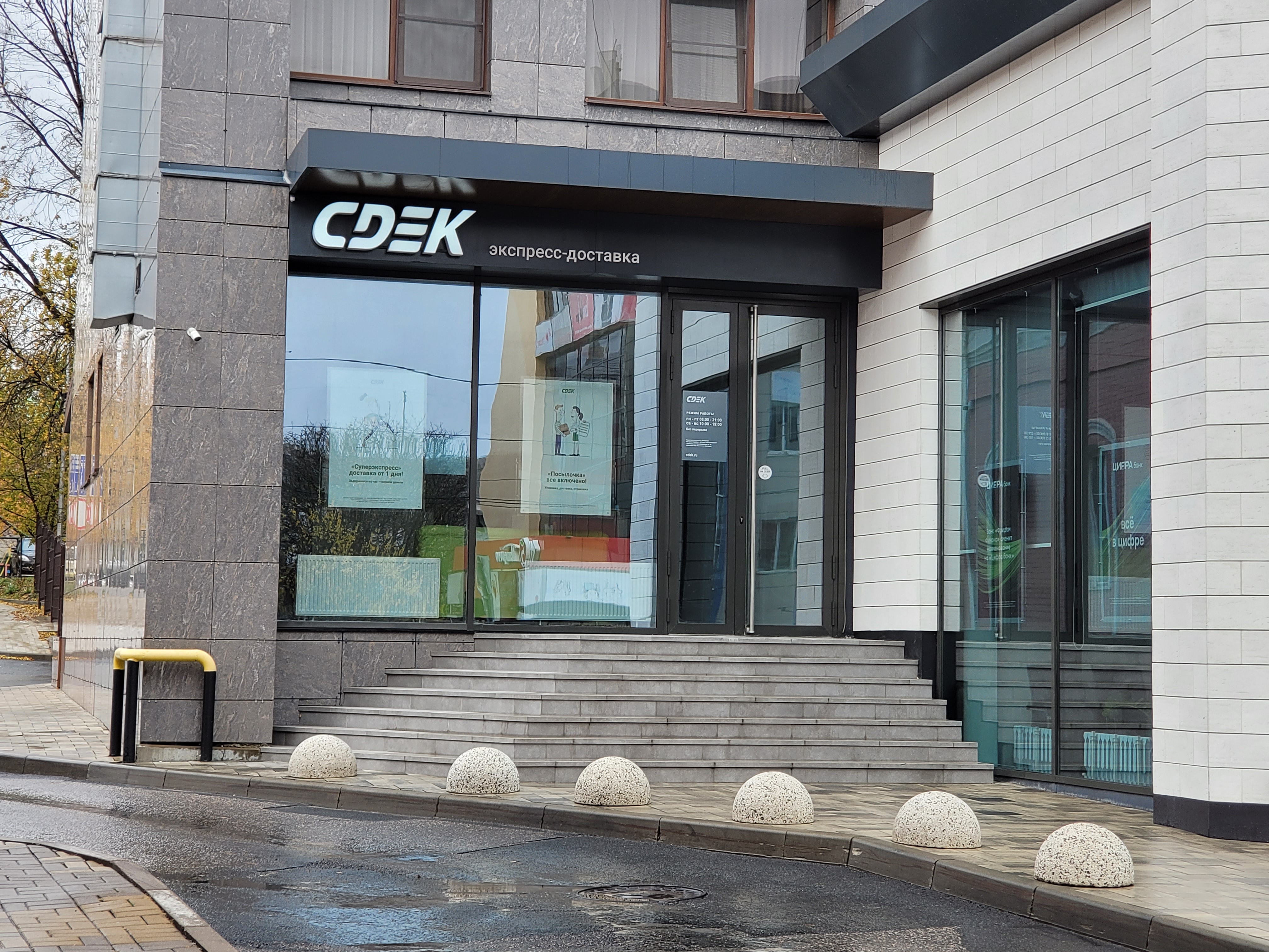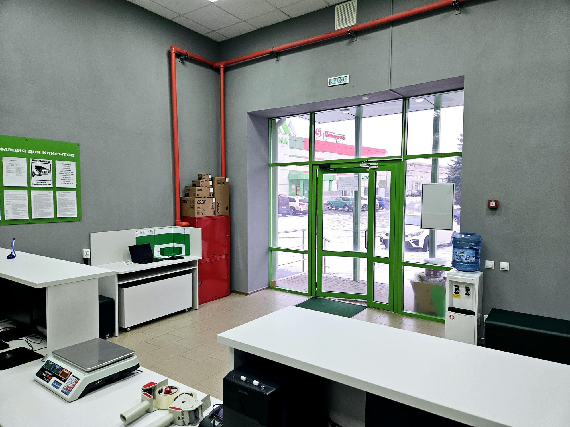 От МФЦ «Мои документы» в сторону ЖД вокзала через 100 м по правой стороне офис компании СДЭК.