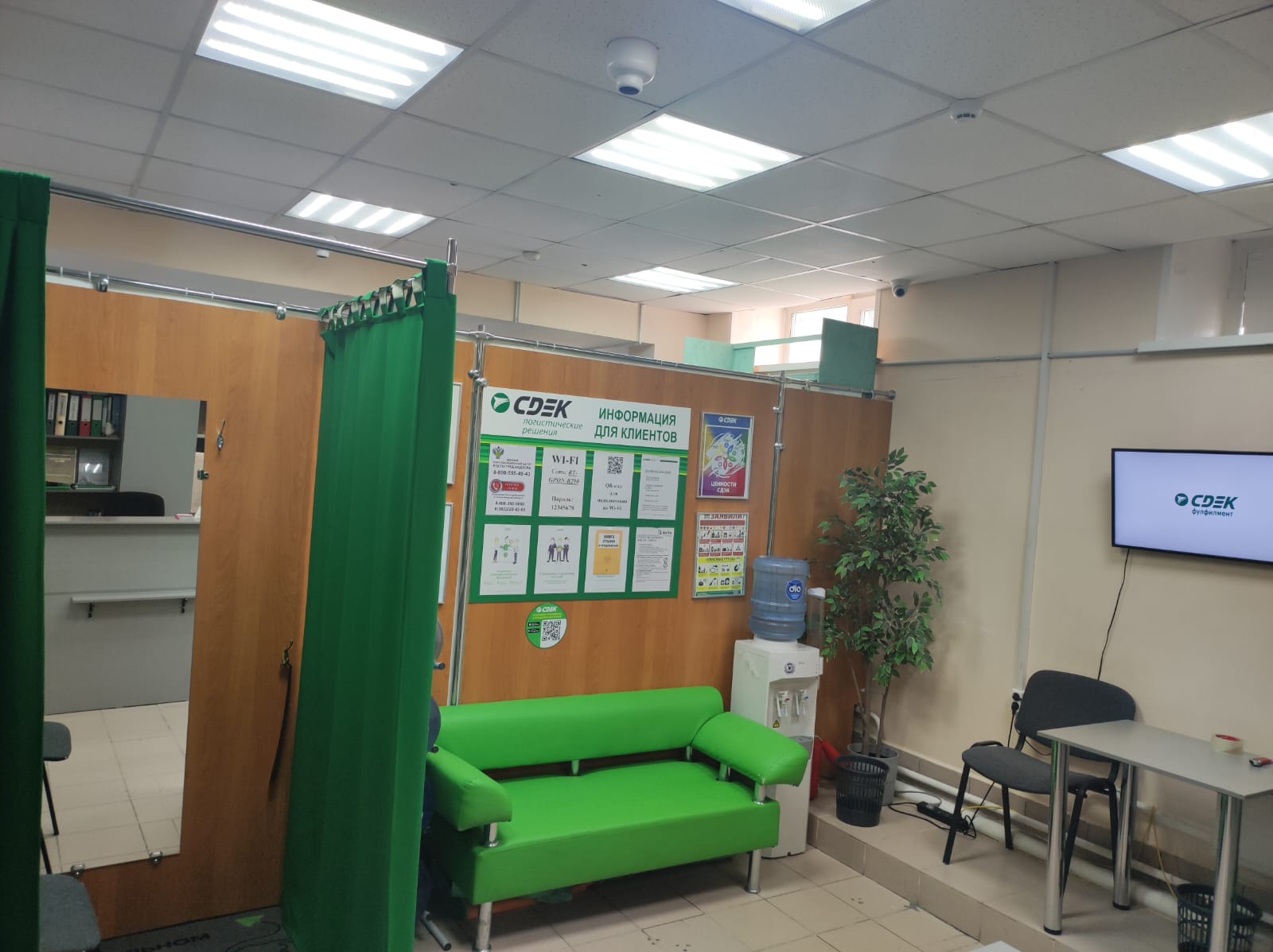 Войти в административное здание через центральный вход, на 2 этаже в супермаркете Магнит Косметик расположен постамат
