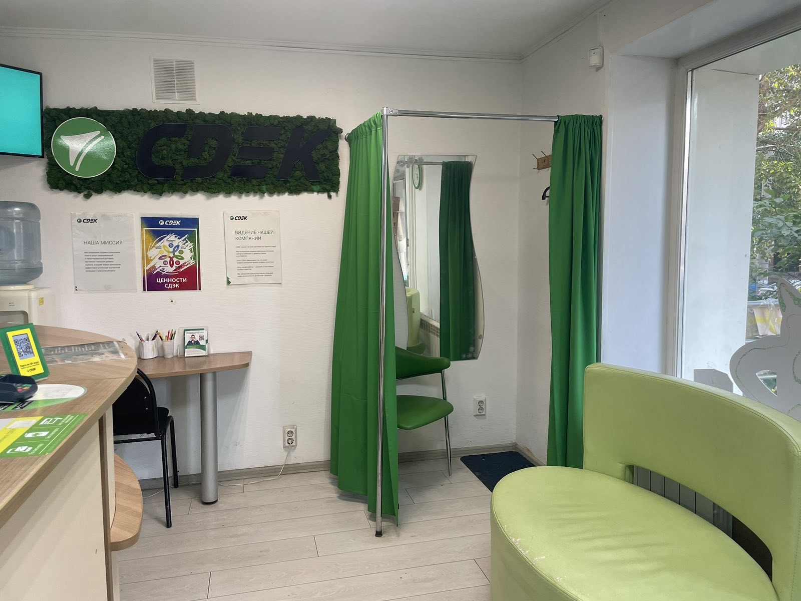Идём по проспекту Родионова вдоль дома Ул. Героя России Родионова 6, в низ по проспекту, поворачиваем в за угол 6го дома, находим вывеску СДЭК
