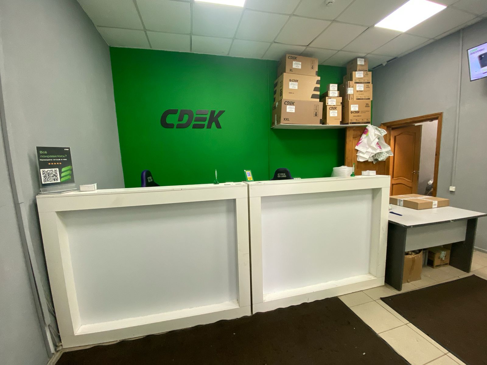 Выход на автобусной остановке "Конфитюр". Справа от Вас ТЦ Конфитюр, а за ним находится ТЦ Ракета. Вход со стороны жилых домов, вывеска СДЭК на фасаде здания.
