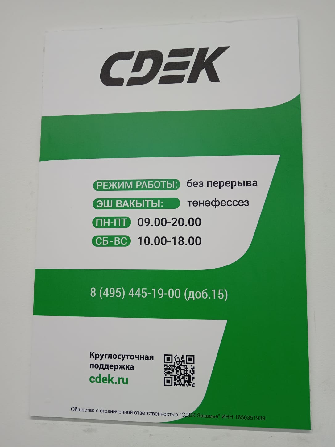 Время работы: Пн: 09:00/20:00, Вт: 09:00/20:00, Ср: 09:00/20:00, Чт: 09:00/20:00, Пт: 09:00/20:00, Сб: 10:00/18:00, Вс: 10:00/18:00