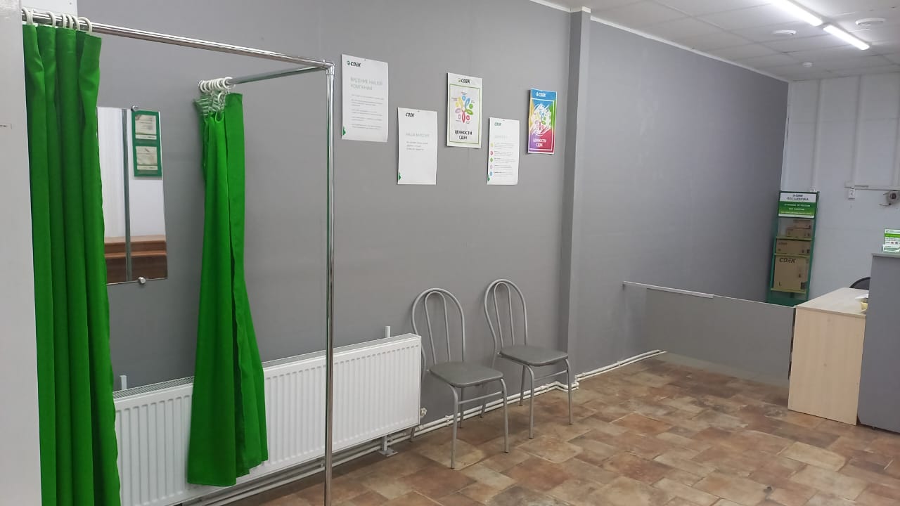 Пункт выдачи расположен в жилом доме. Вход в пункт выдачи находится с фасадной стороны дома, со стороны ул. Мира