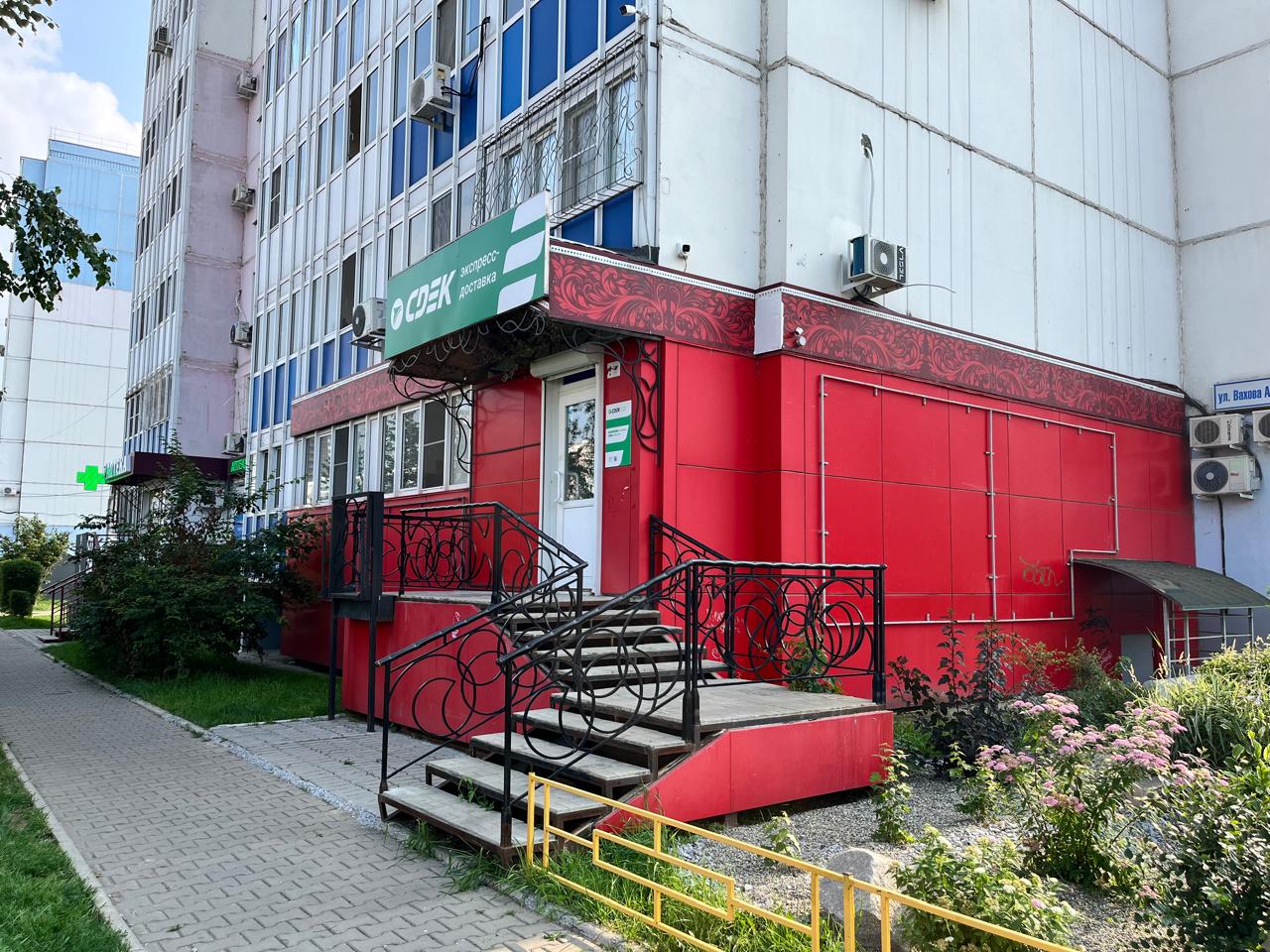 На пересечении ул. Вахова-ул.Сысоева. 1 этаж в 10 этажном доме, с торца здания. Вход смотрит на ул. Сысоева