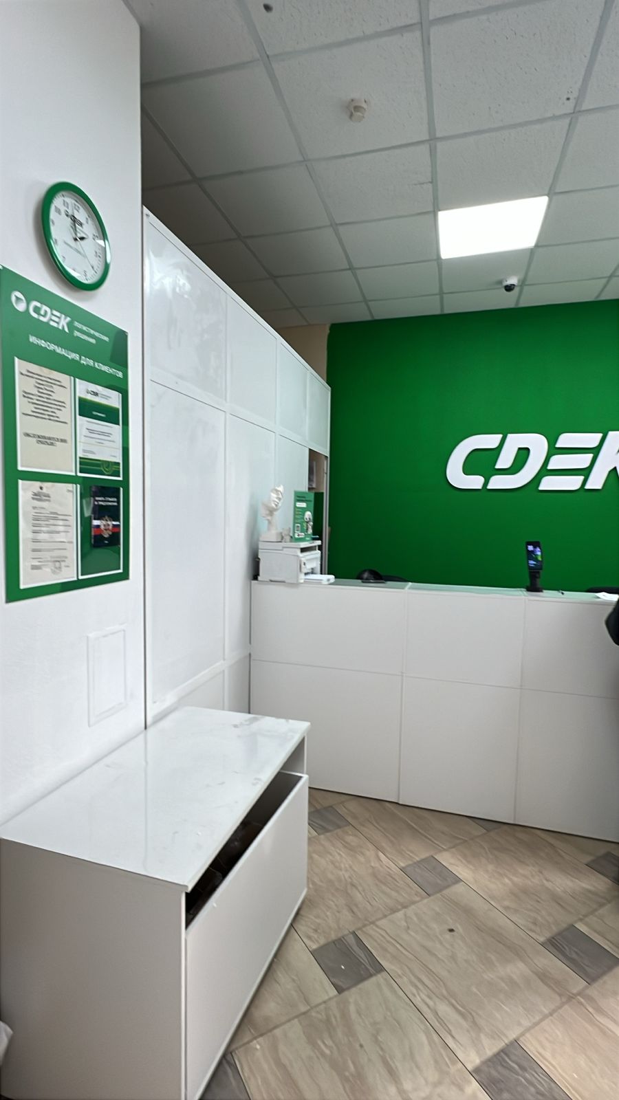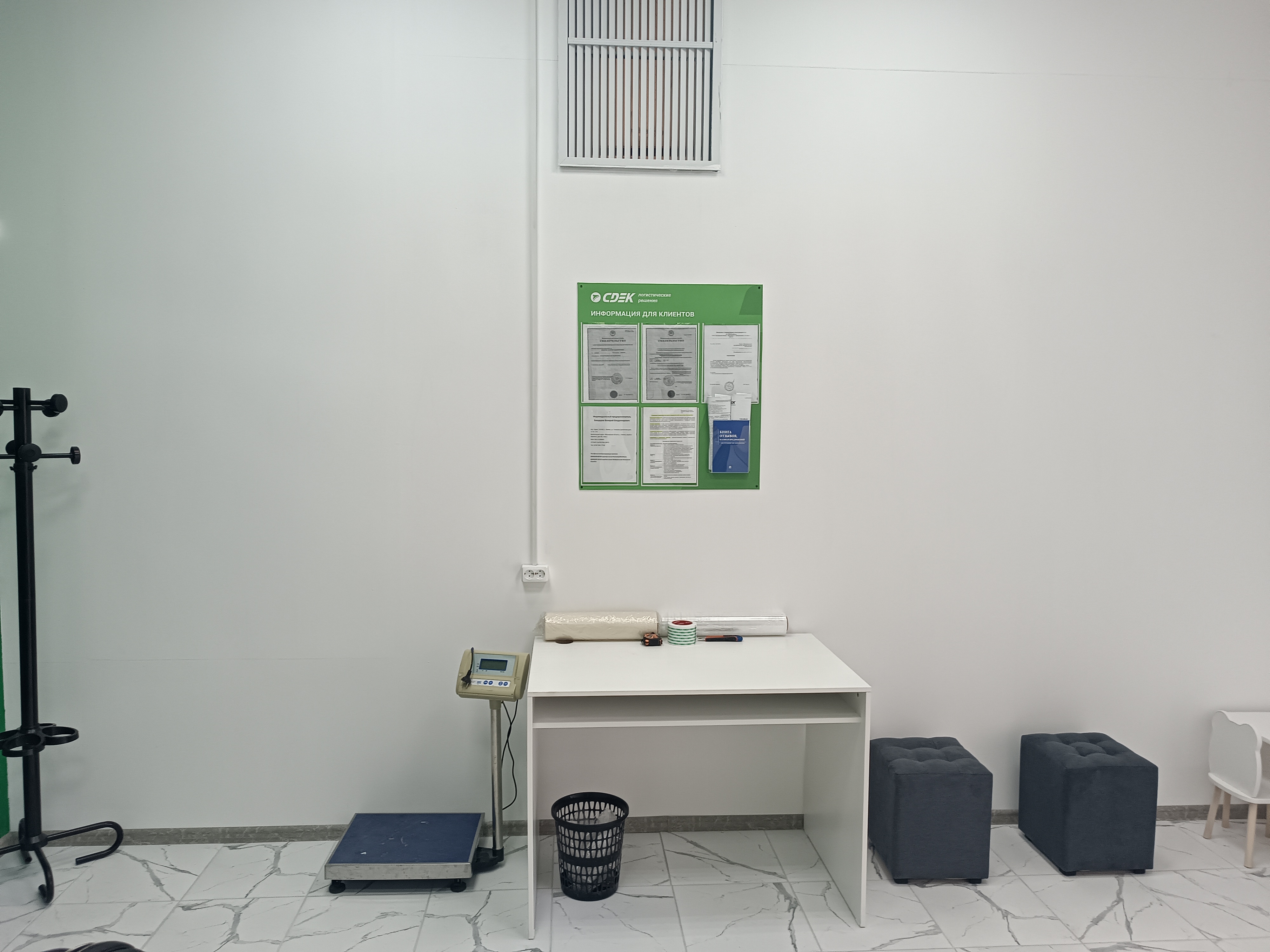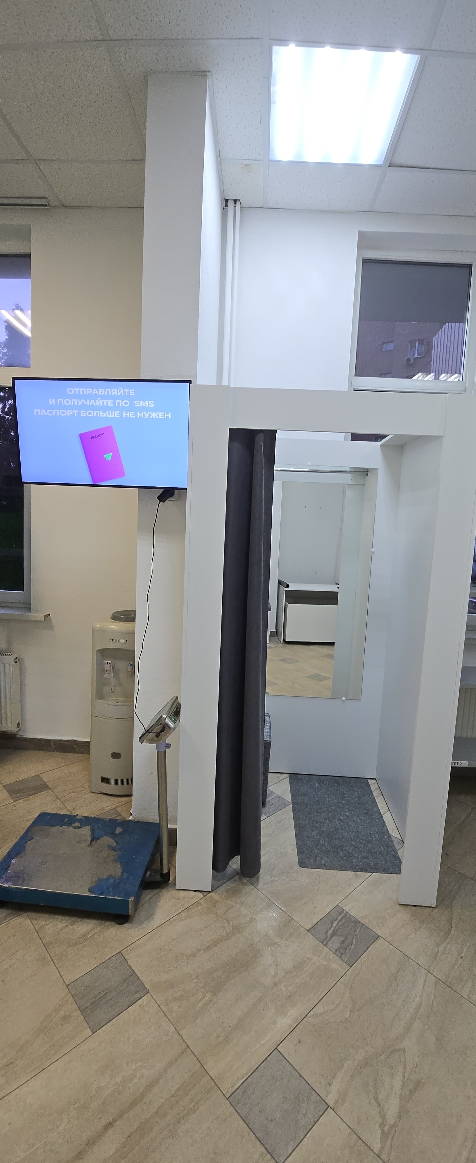 Войти в отделение банка Совкомбанк через центральный вход, на 1 этаже расположен постамат