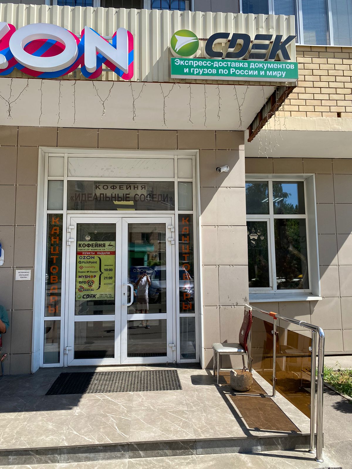 Войти в магазин Янтарь через центральный вход, на 1 этаже около входа расположен постамат