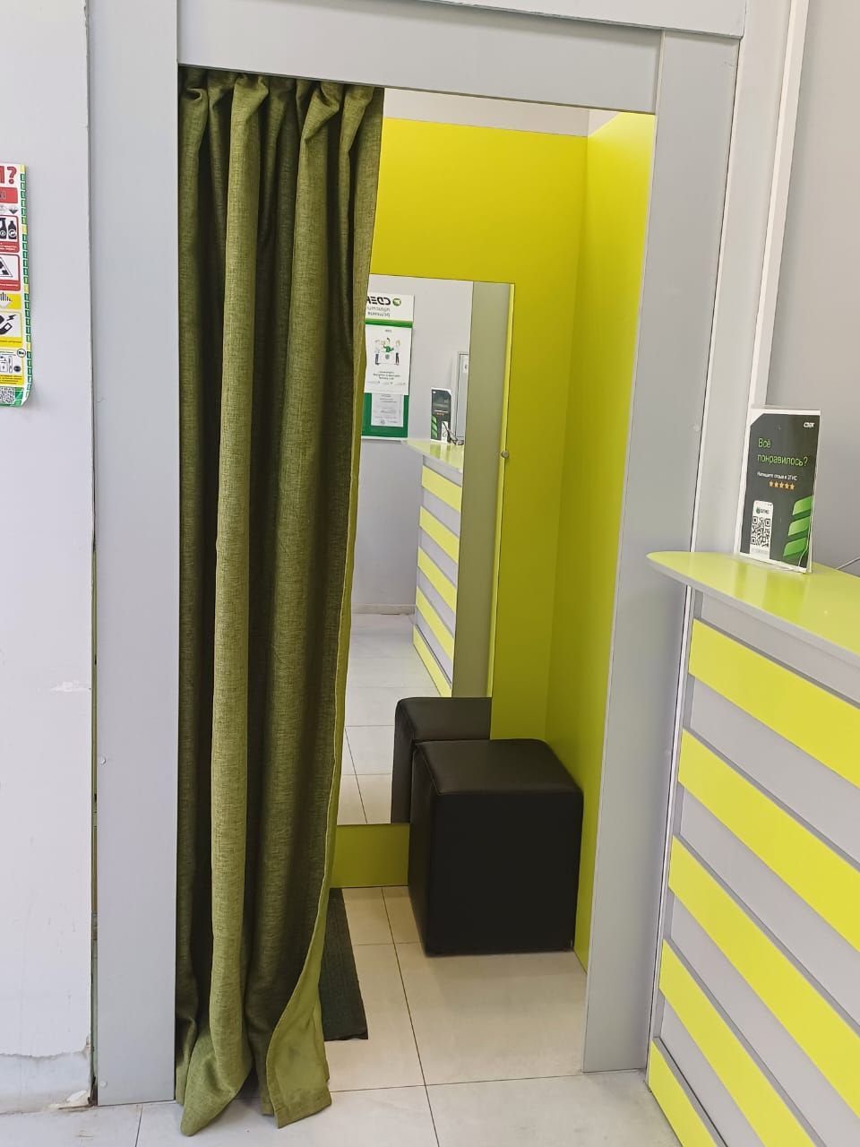 Войти в отделение банка Совкомбанк через центральный вход, на 1 этаже