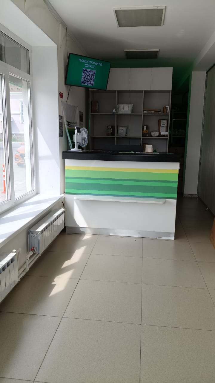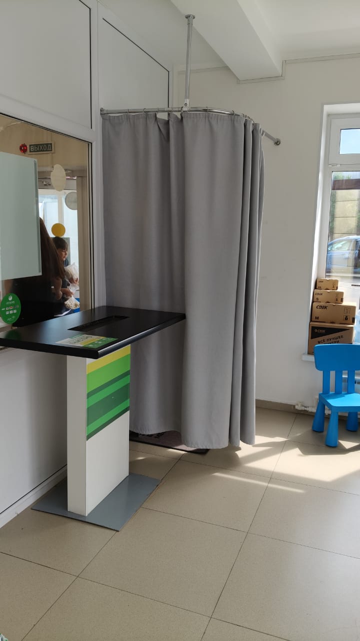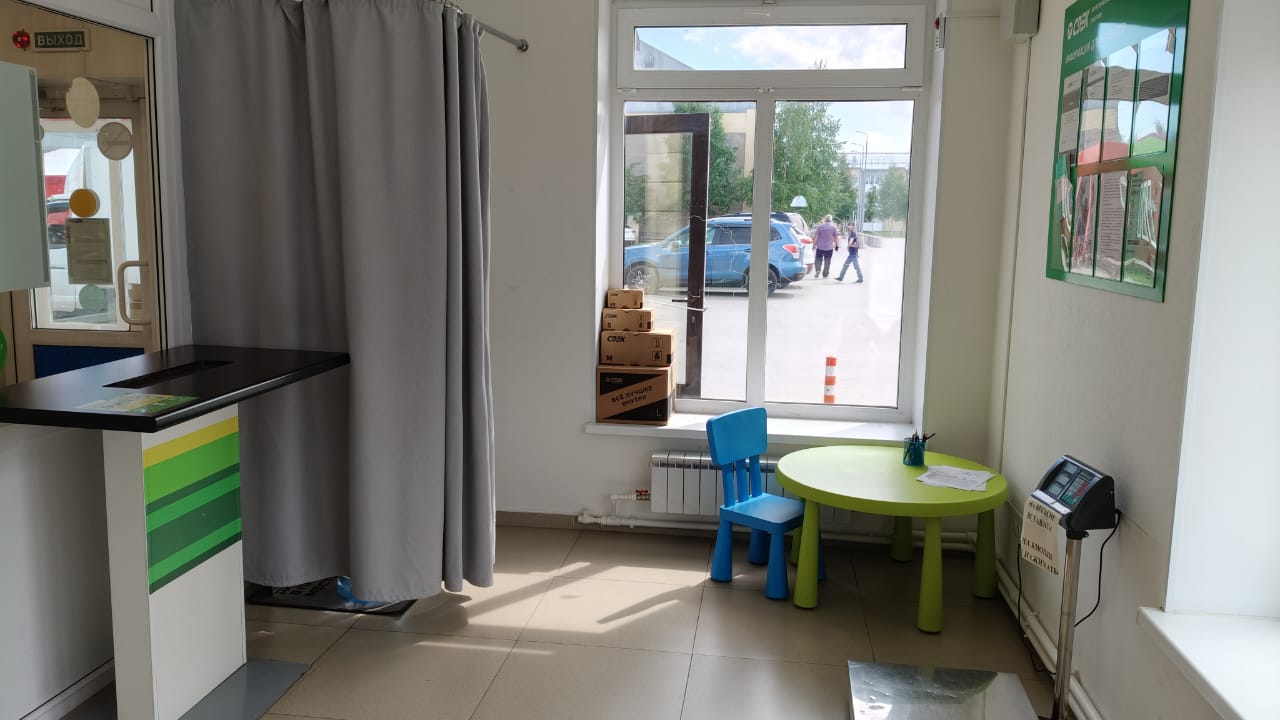 Войти в отделение банка Совкомбанк через центральный вход, на 1 этаже расположен постамат.