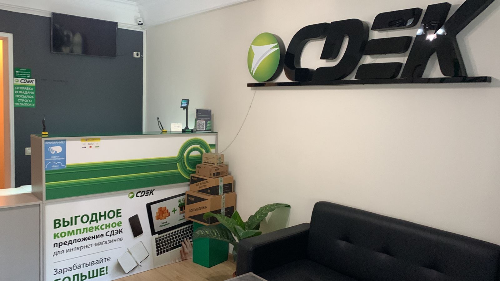 От остановки (Финансовый колледж) пройти в сторону троллейбусного кольца 110 метров офис СДЭКа справа от вас