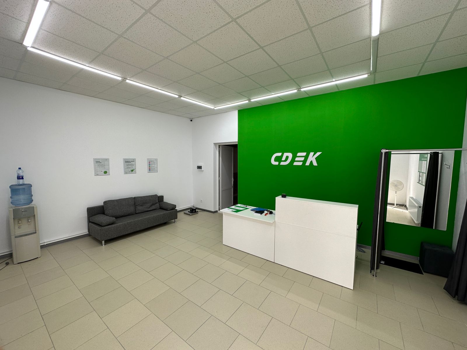 Войти в магазин через центральный вход, на 1 этаже расположен постамат