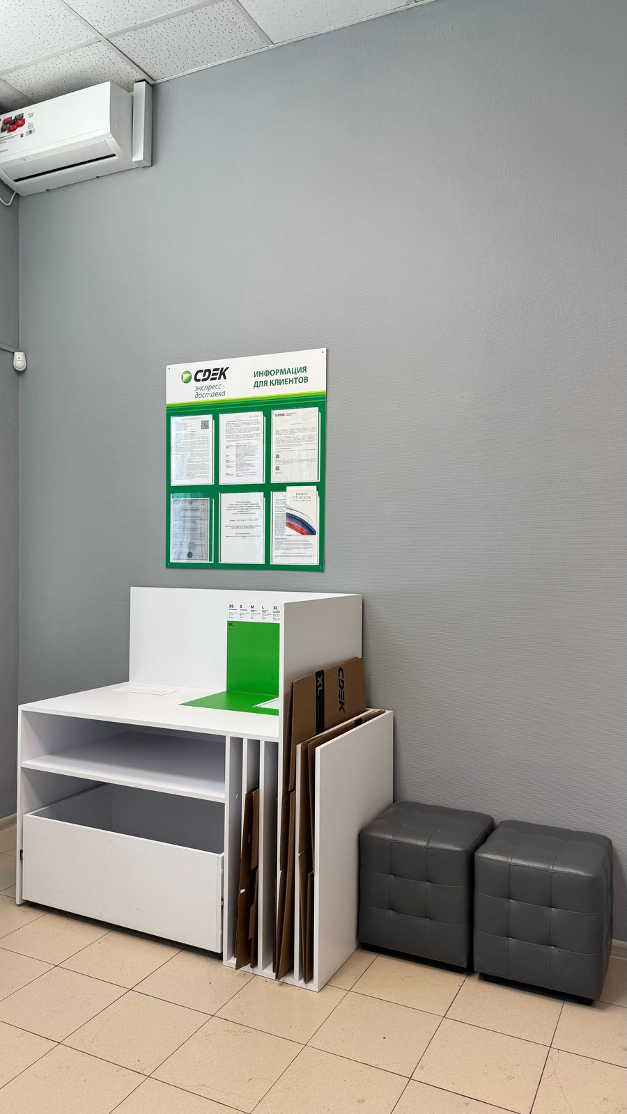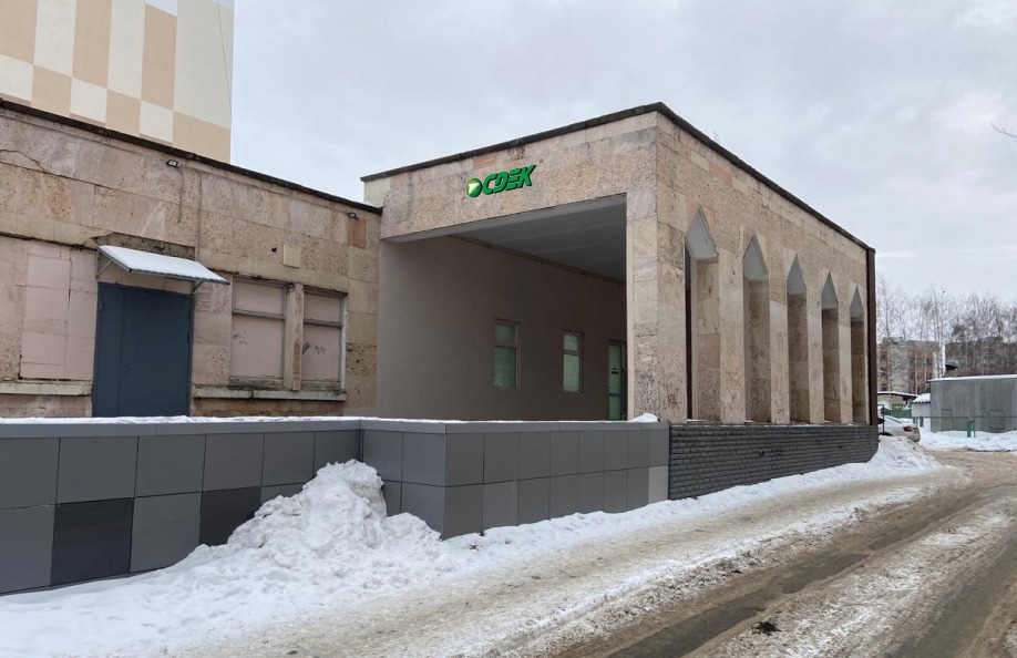 Войти в пункт выдачи Ozon через отдельный вход, на 1 этаже около входа расположен постамат.