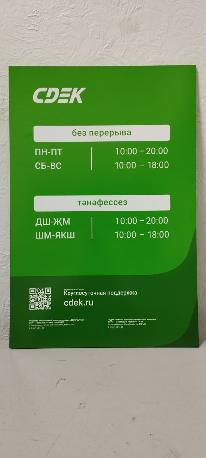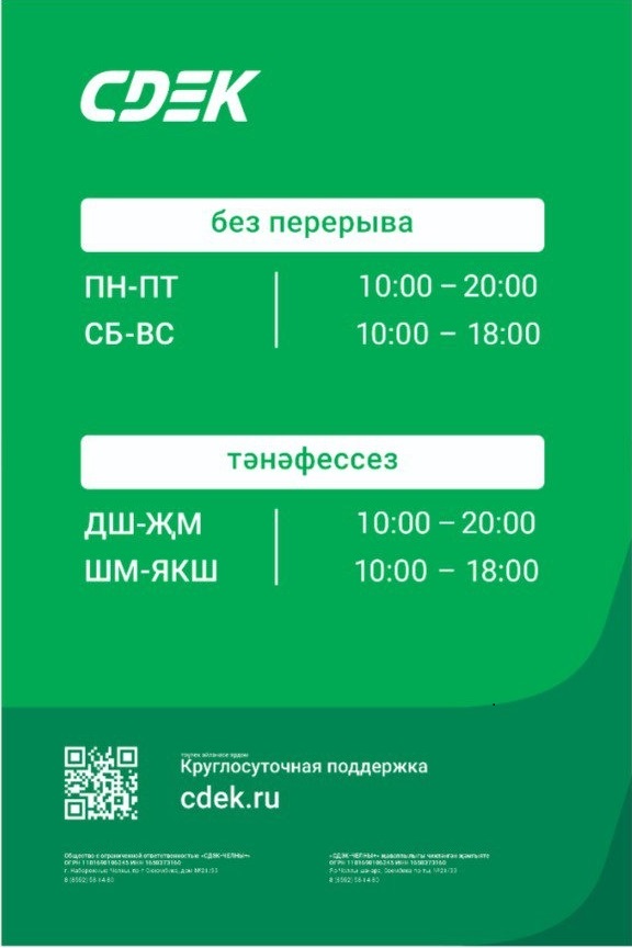 Время работы: Пн: 09:00/20:00, Вт: 09:00/20:00, Ср: 09:00/20:00, Чт: 09:00/20:00, Пт: 09:00/20:00, Сб: 10:00/18:00, Вс: 10:00/18:00