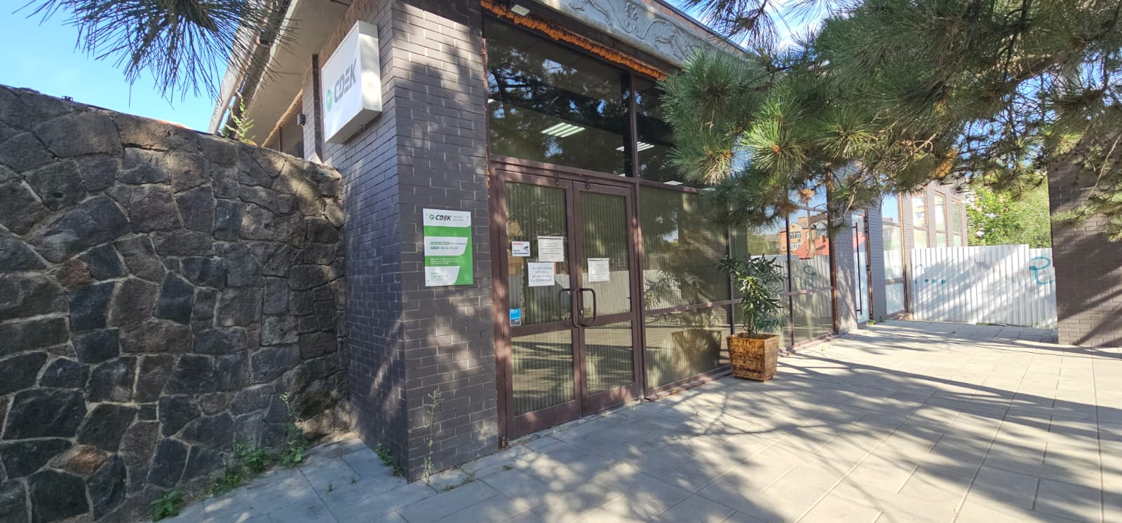 Автобусная остановка Сармат. Помещение бывший ресторан Сармат, вход с торца здания