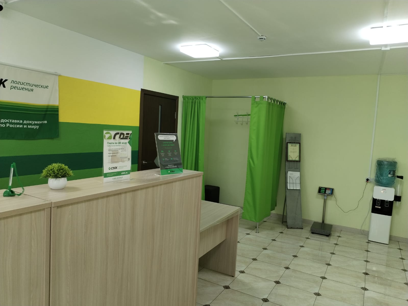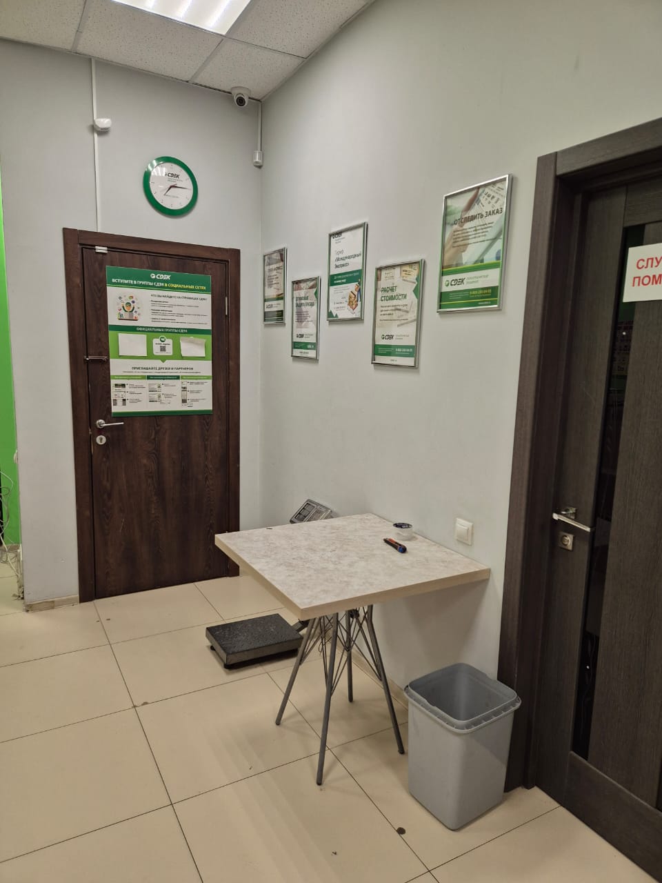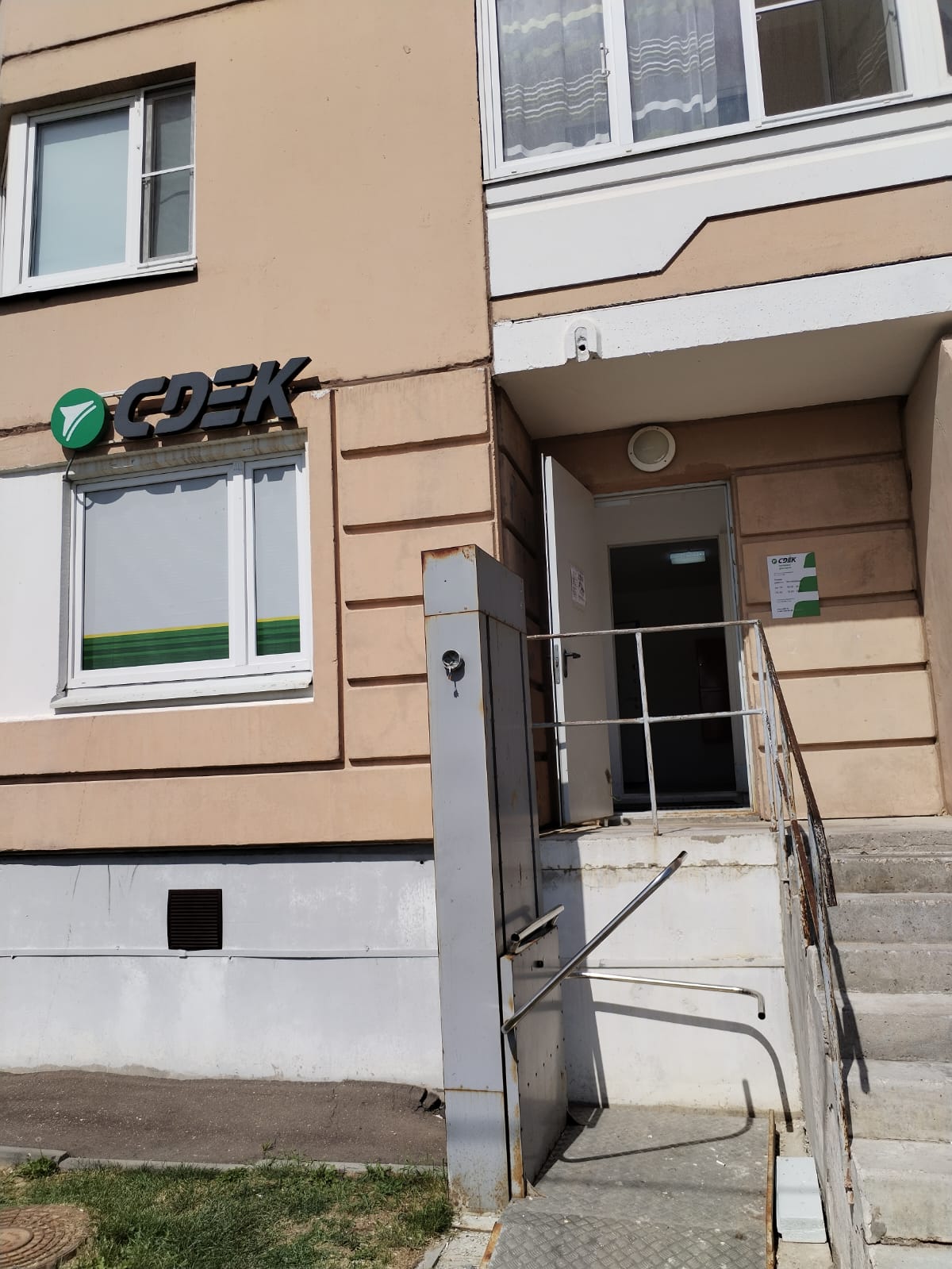 Войти в отделение банка Совкомбанк через центральный вход, на 1 этаже расположен постамат.