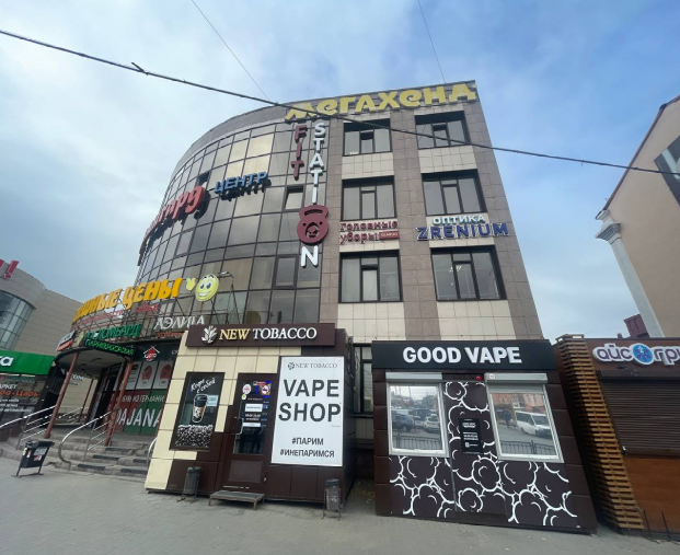 (200 метров от ост. «Столовая (пр. Космический)», 500 метров по ходу движения от кинотеатра Космос, в здании с Красное&Белое и Smokelab)