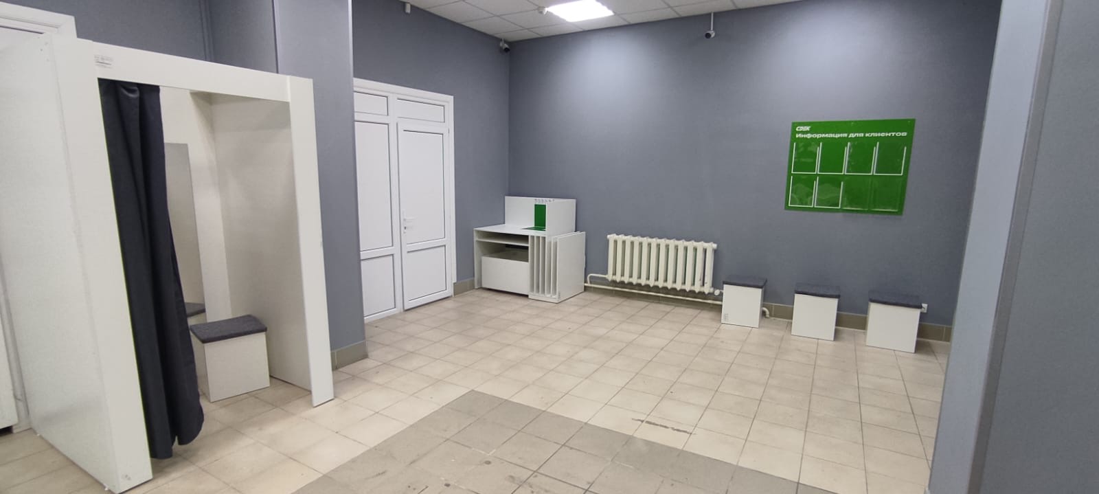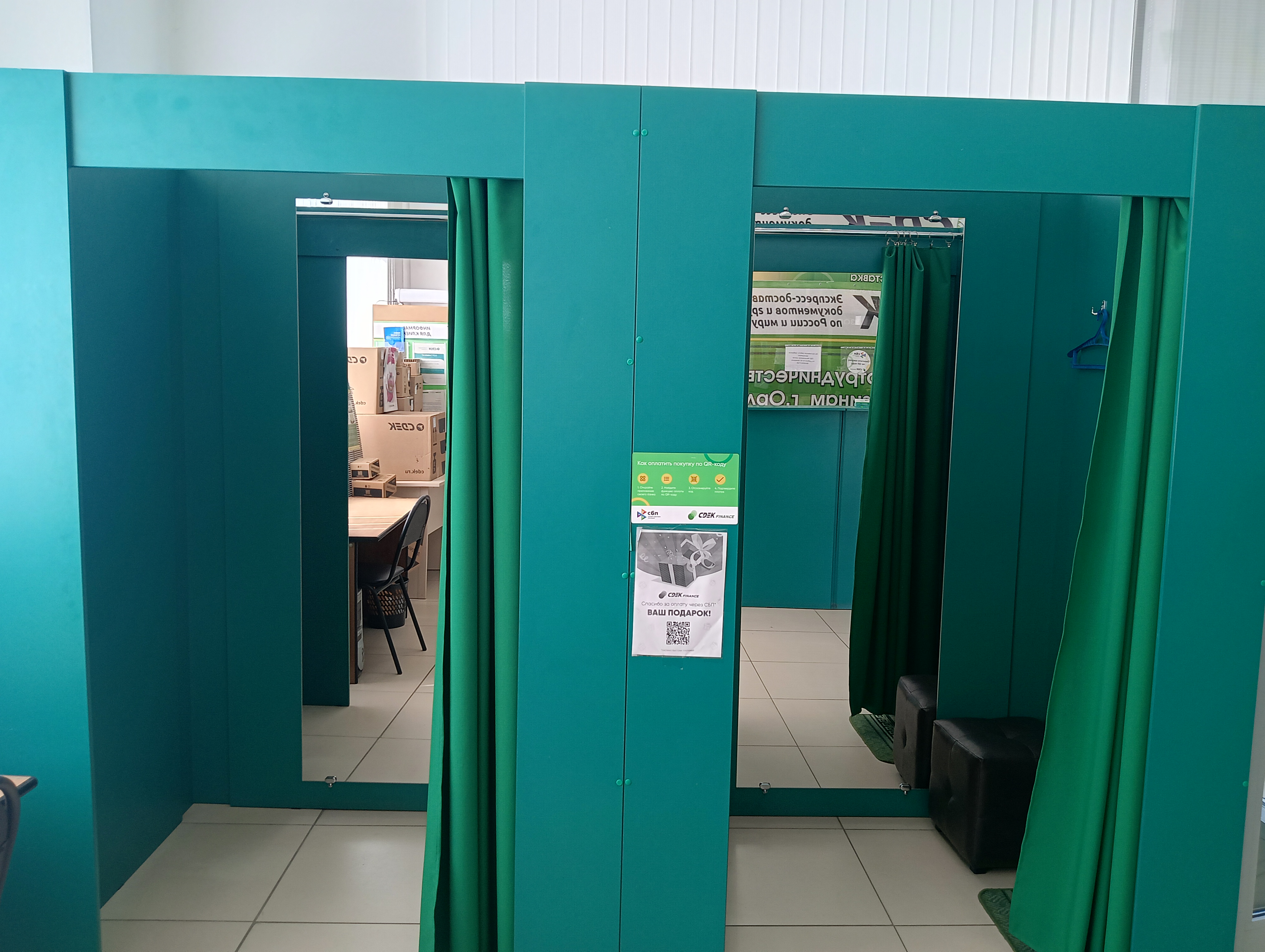 Войти в отделение банка Совкомбанк через центральный вход, на 1 этаже расположен постамат.