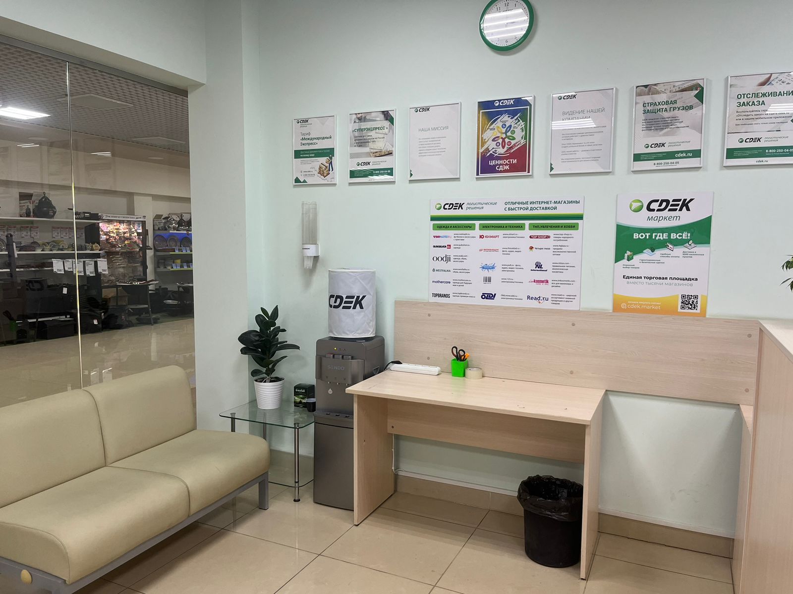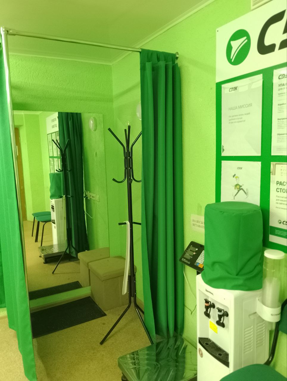 Войти в Совкомбанк через центральный вход, на 1 этаже расположен постамат