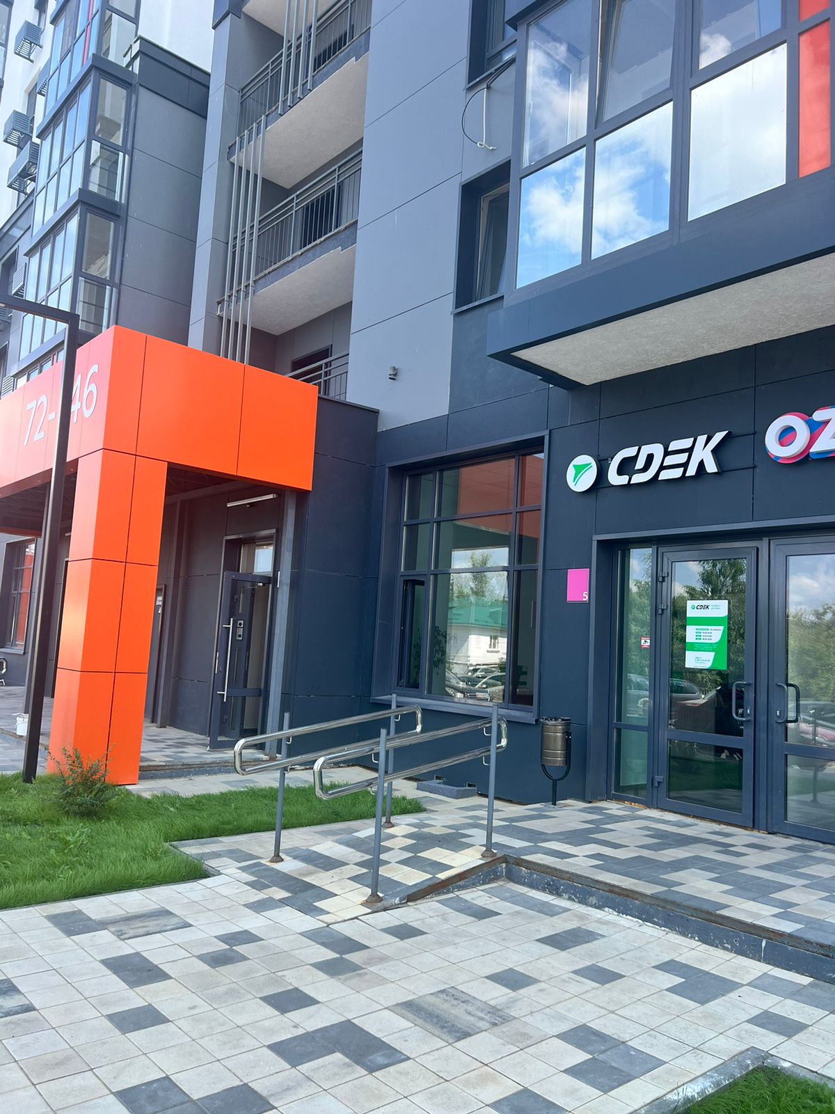 Офис СДЭК находится в жилом доме на 1 этаже 1 линии, за остановкой общественного транспорта «Петровская улица». Вход в ПВЗ с вывеской «CDEK»