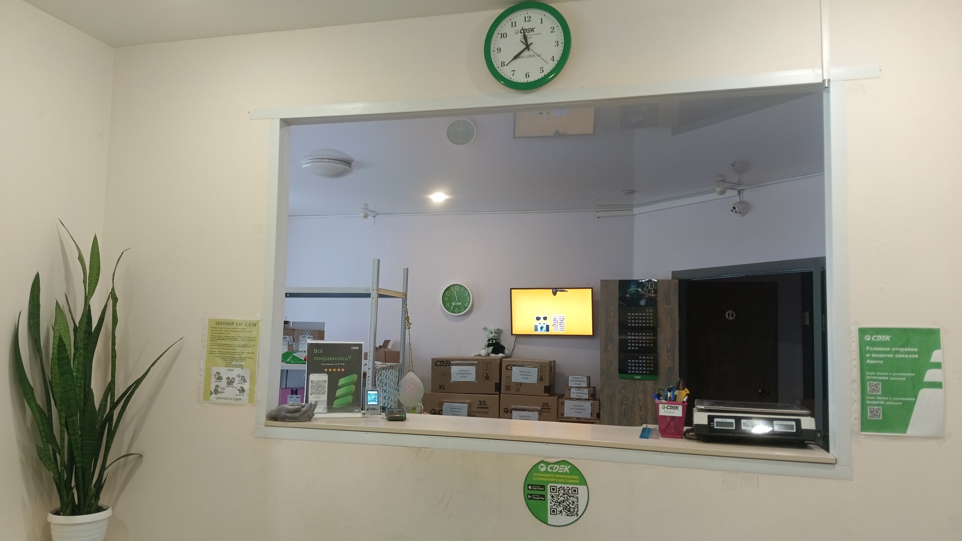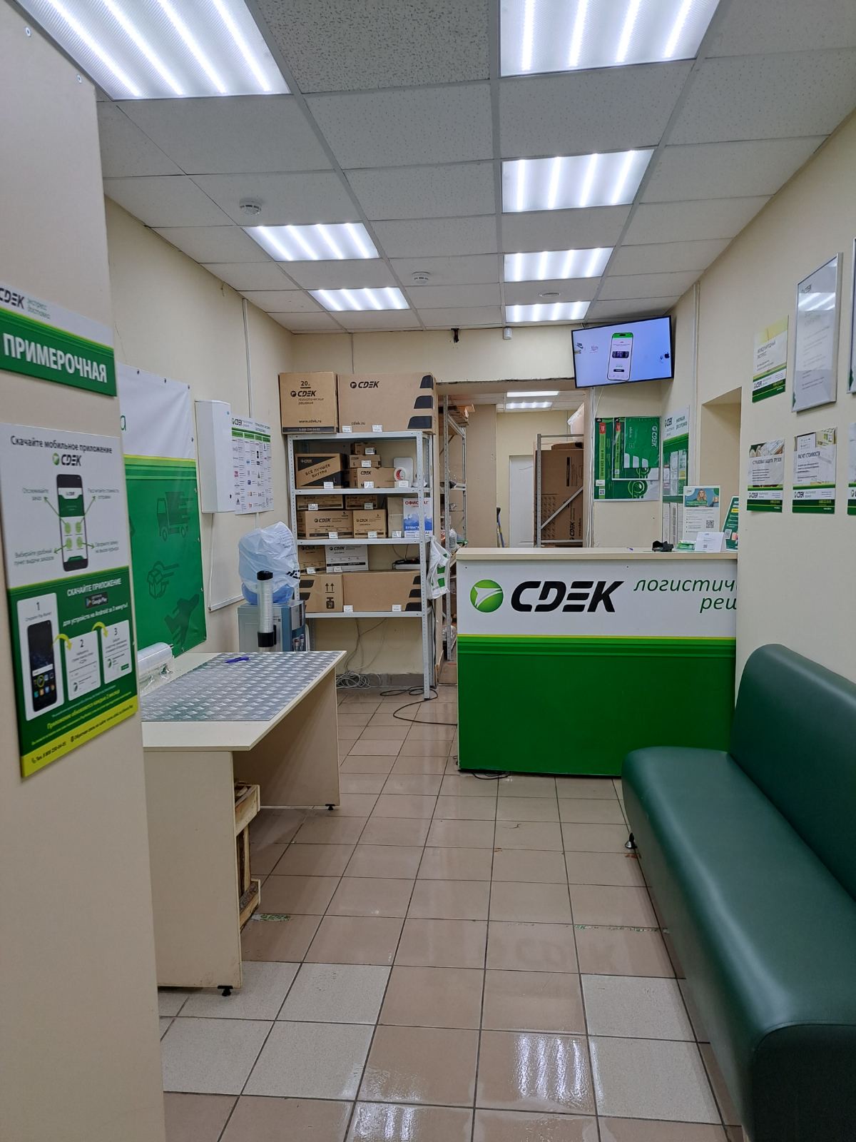 Отдельный вход на 1-м этаже, со стороны ул. Хирурга Суханова, в левой части здания. Вывеска CDEK Автобус 1, 5,11, 13, 14, 25, 43, 75, 115.