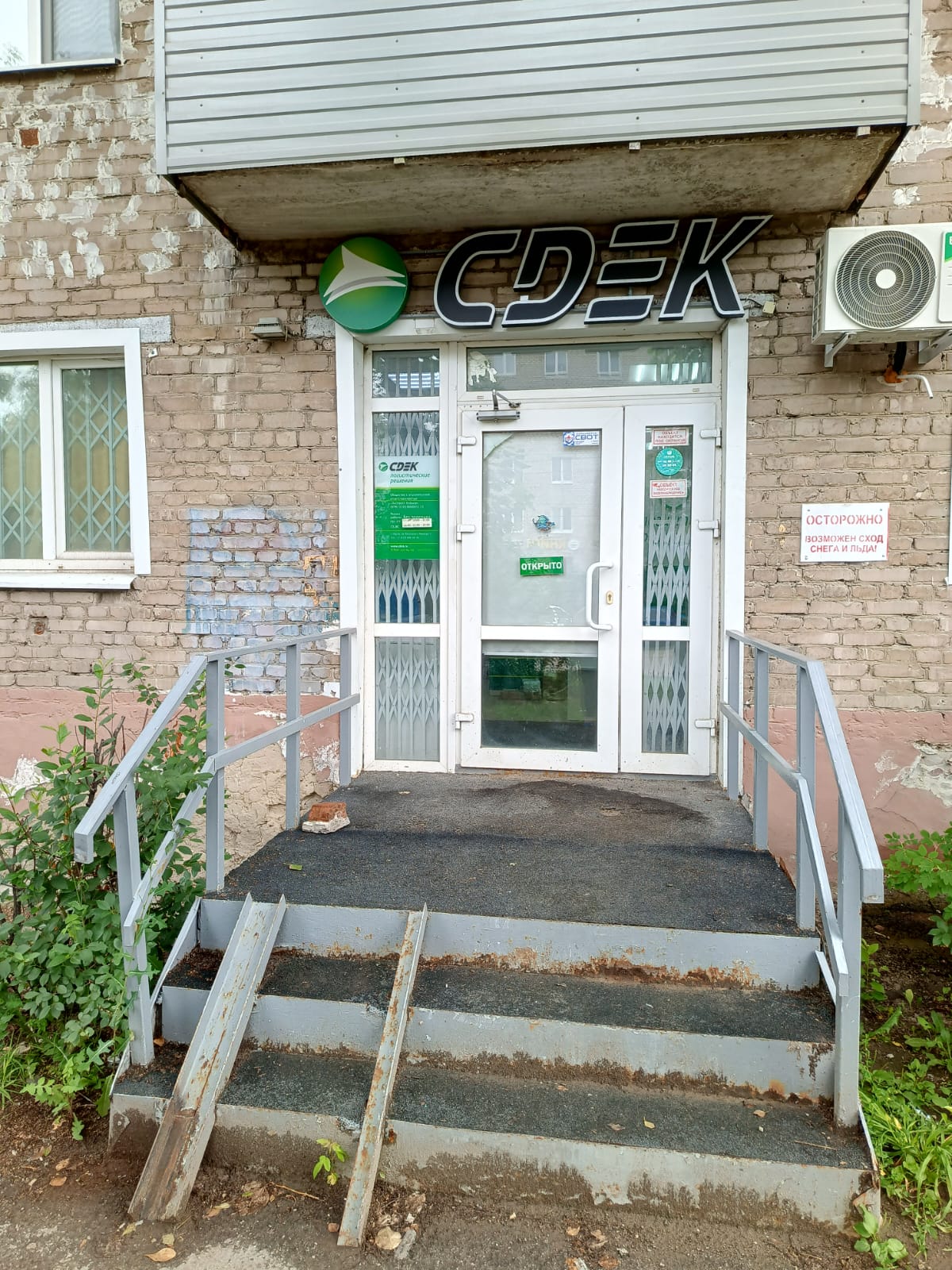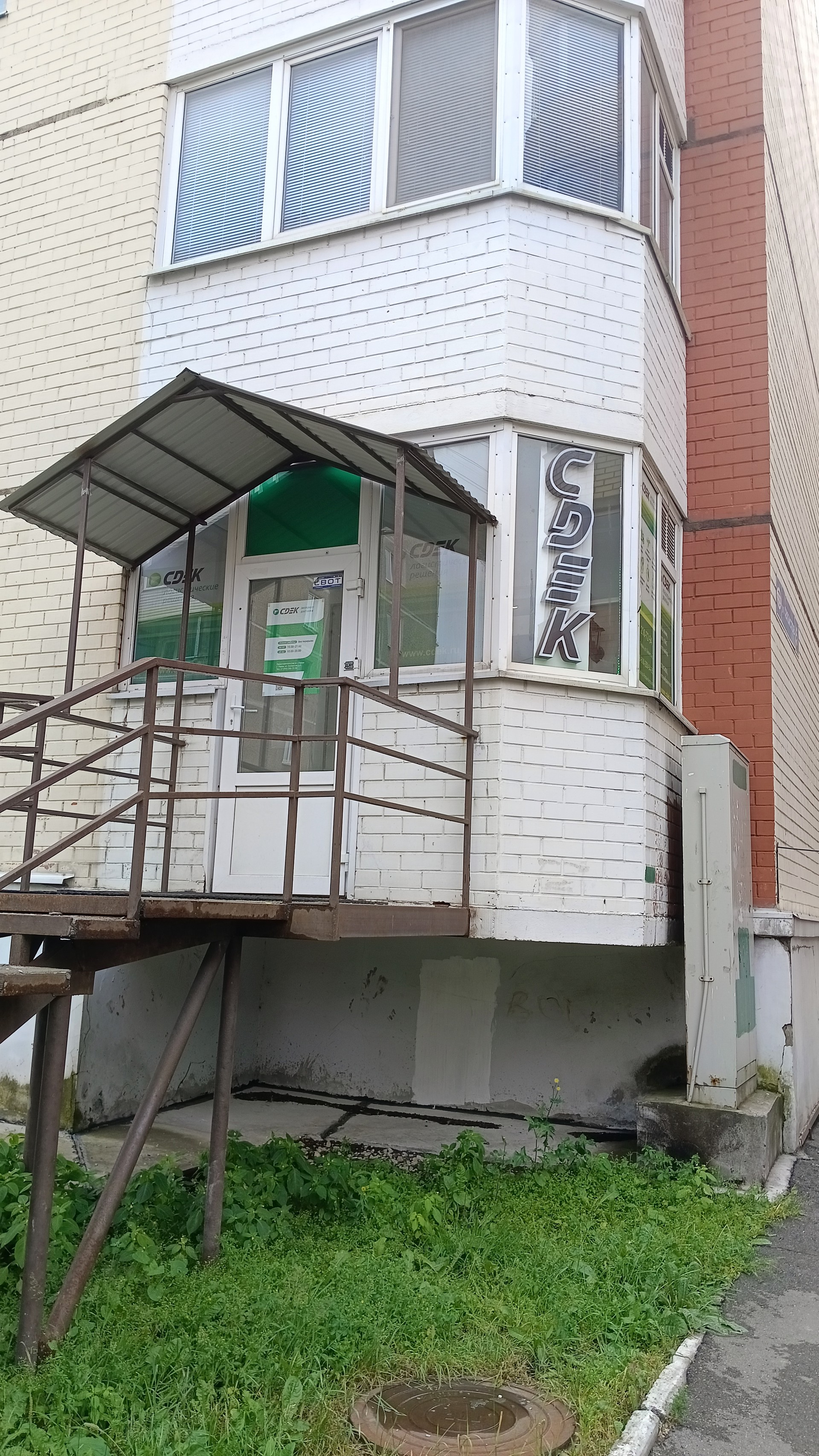 Ход в офис находится с правого края здания, со стороны ул Ушинского. Вывеска СДЭК