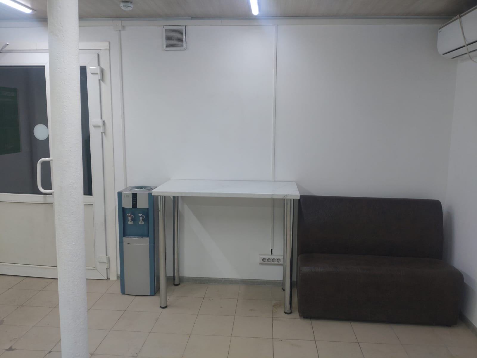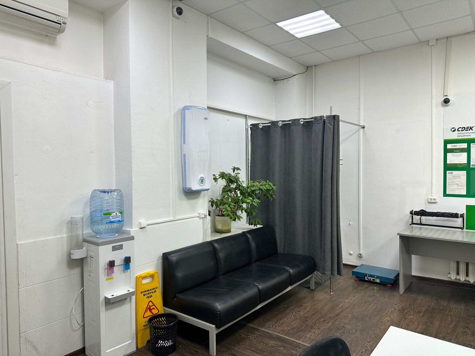 Войти в отделение банка Совкомбанк через центральный вход, на 1 этаже расположен постамат