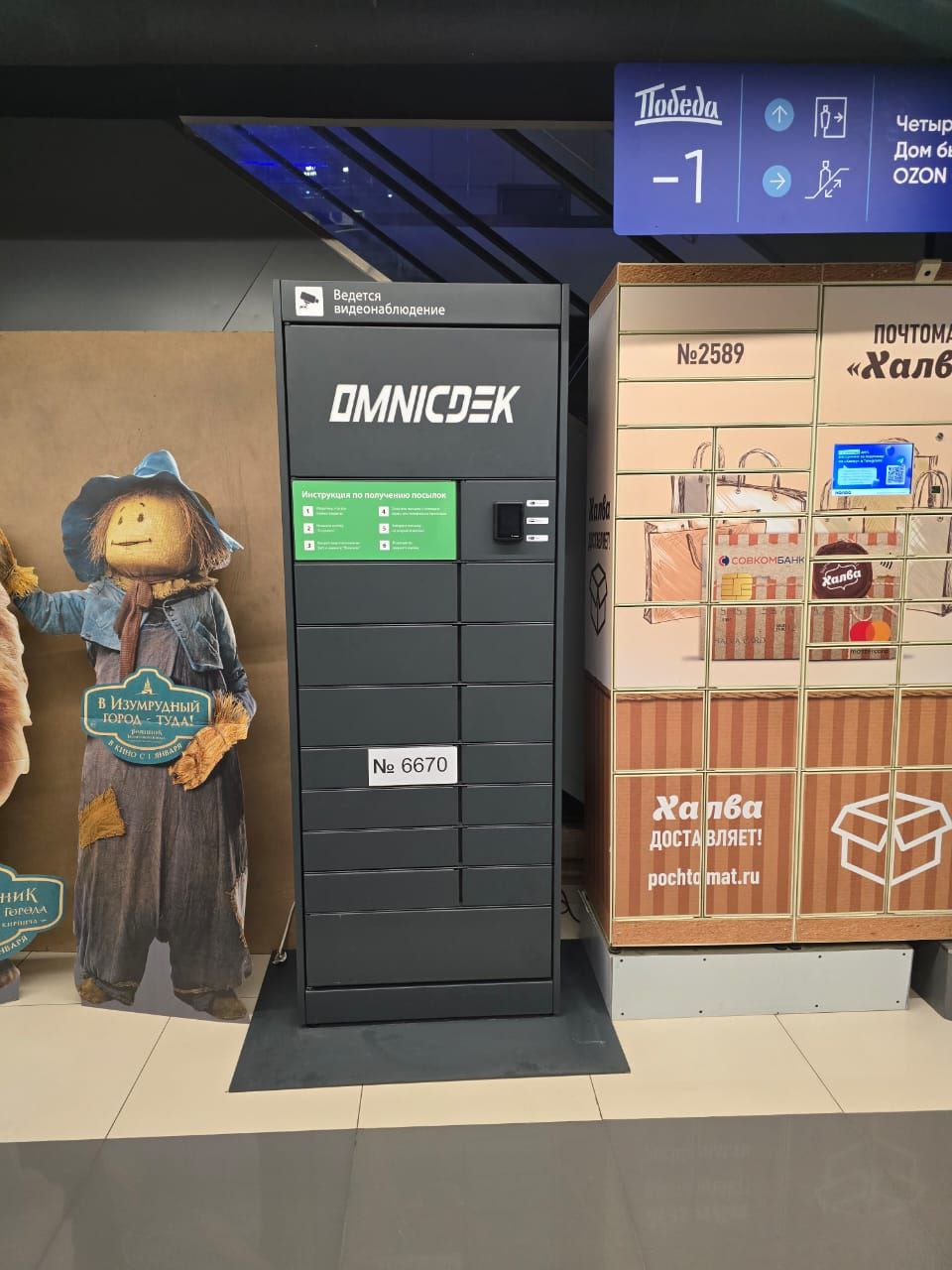 Войти в магазин Карандаш через центральный вход, на 1 этаже около входа расположен постамат