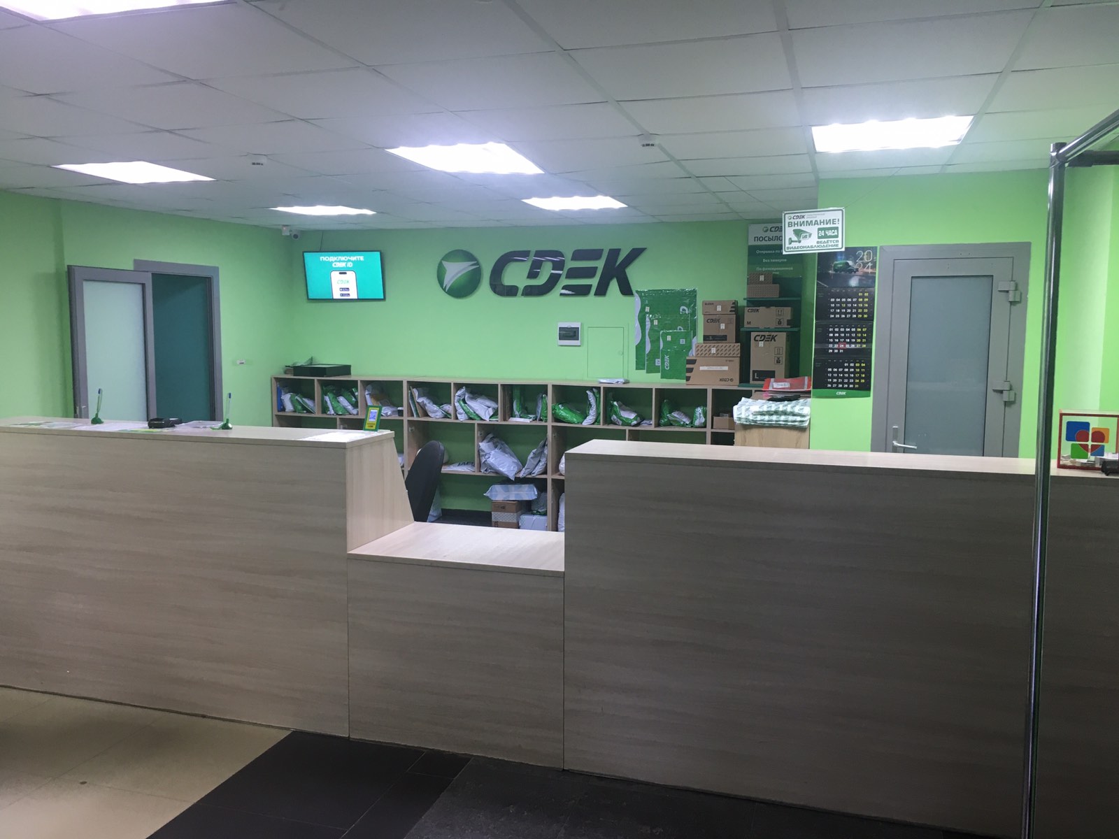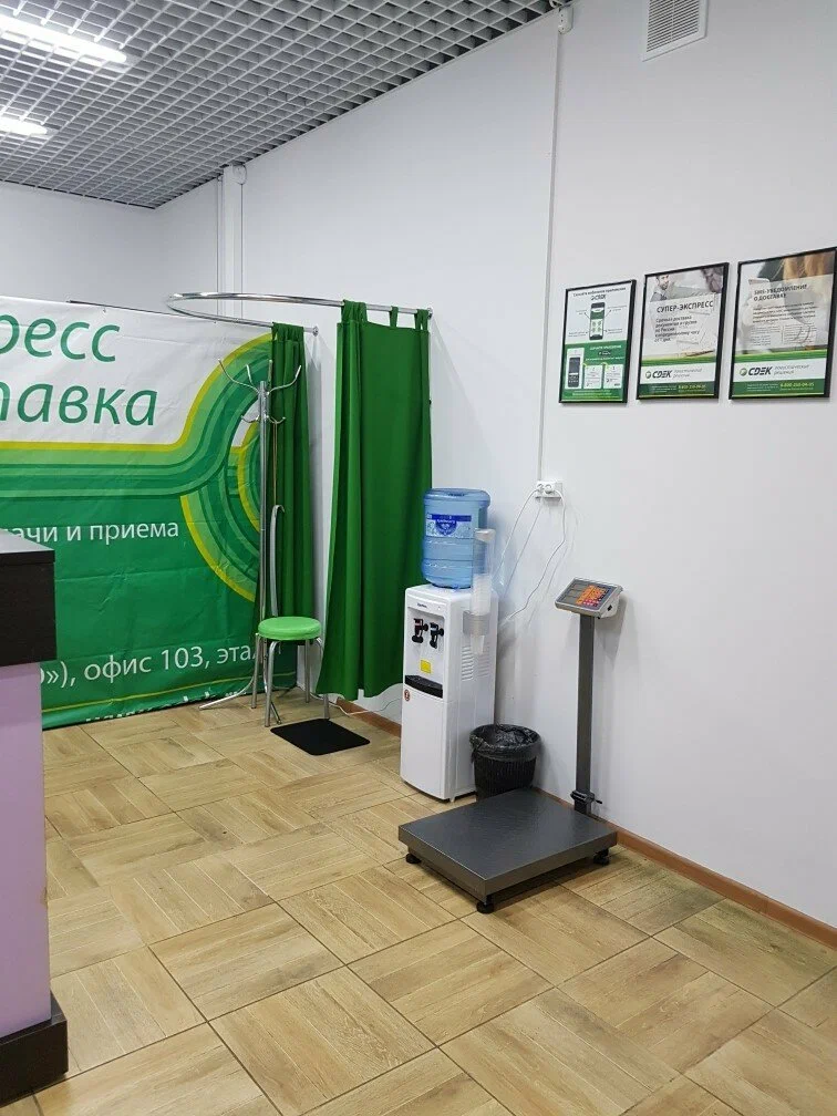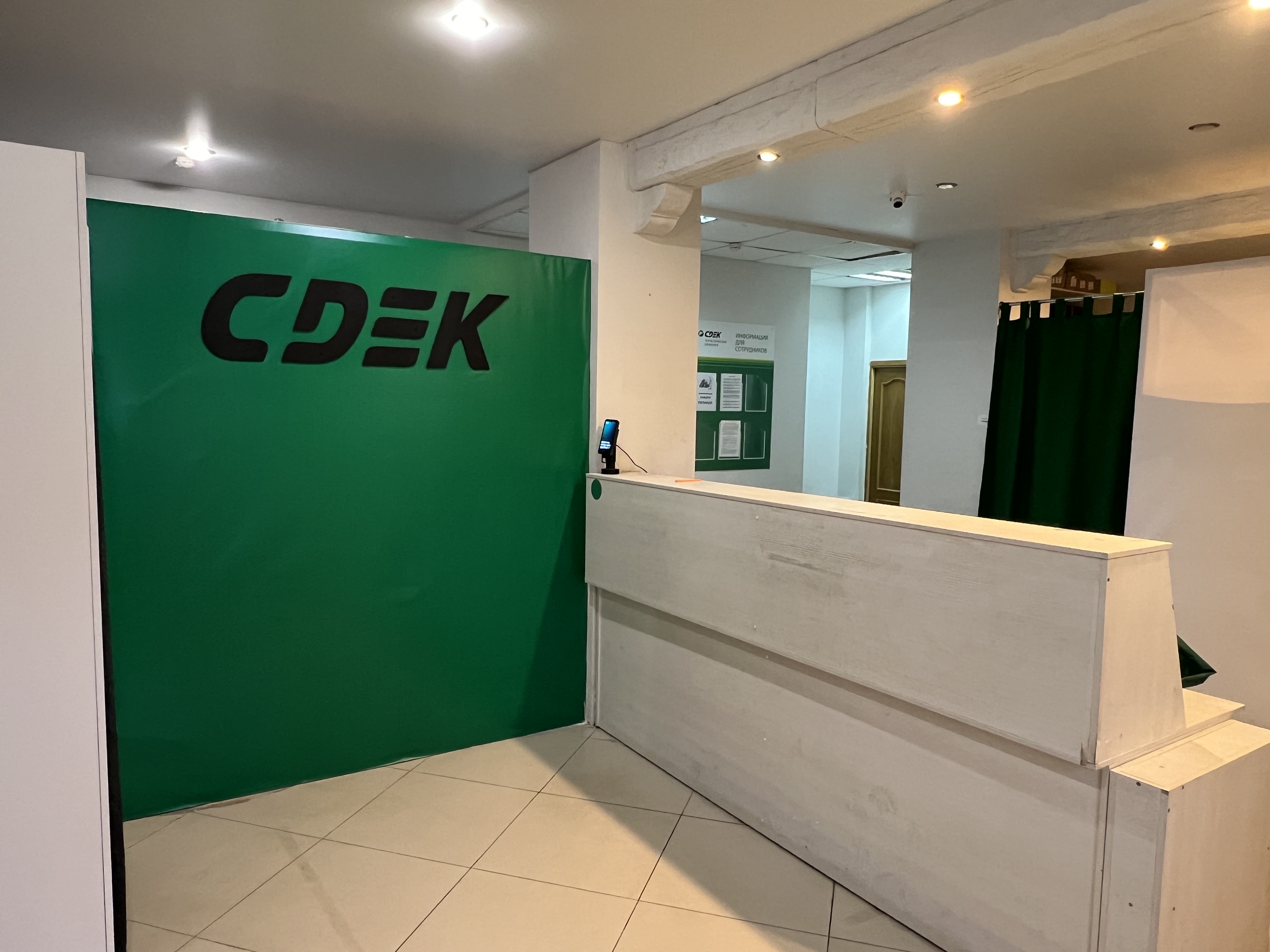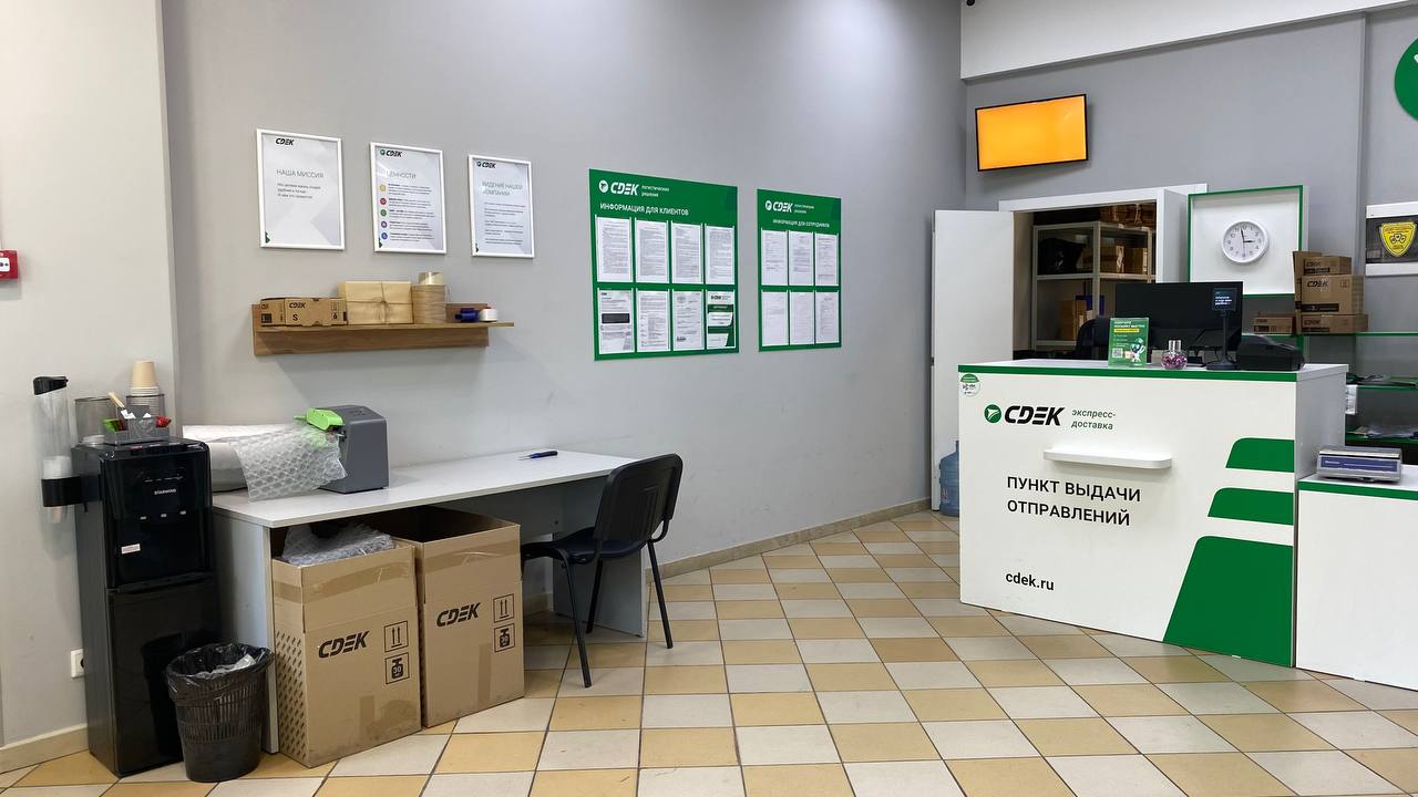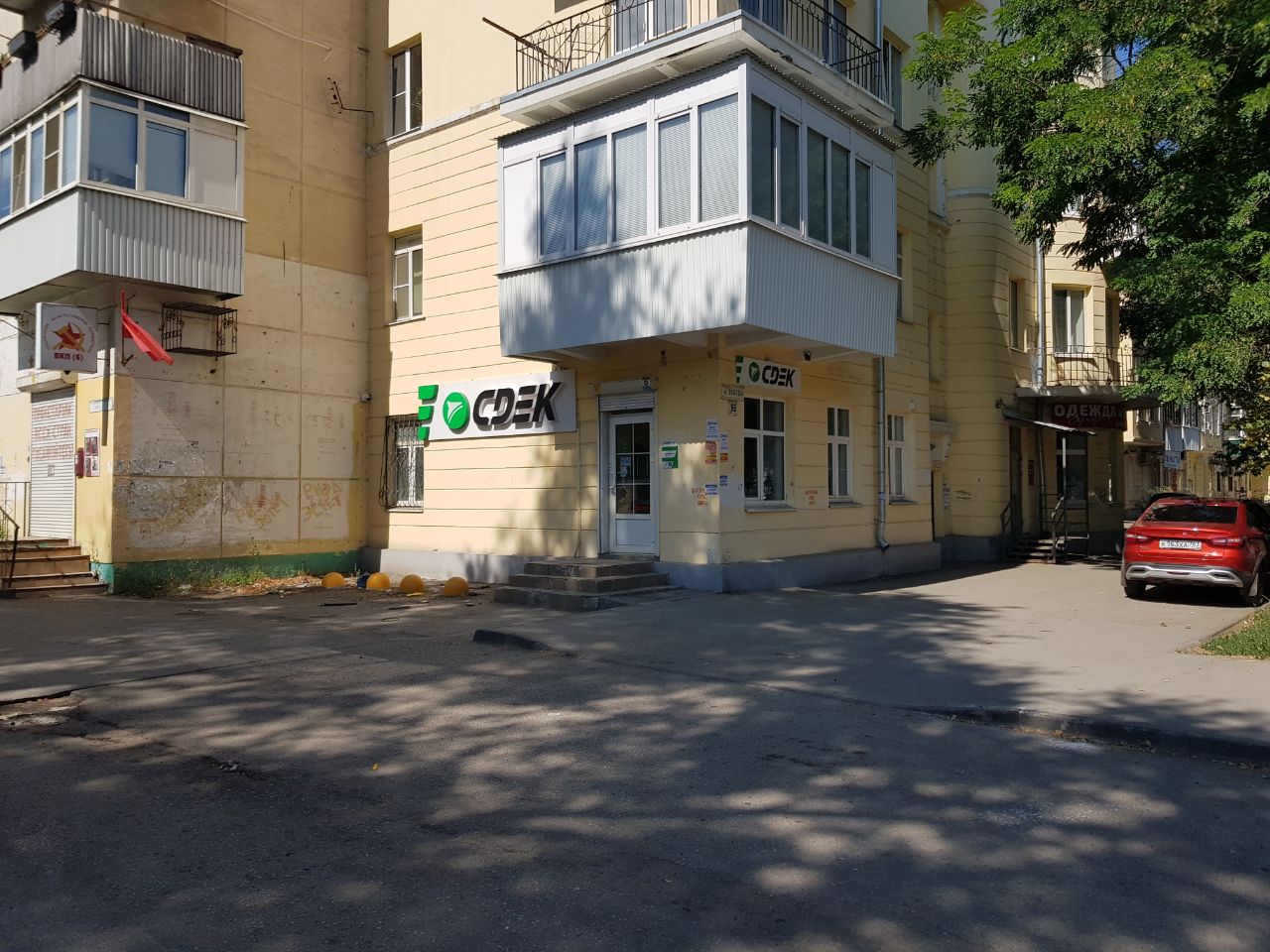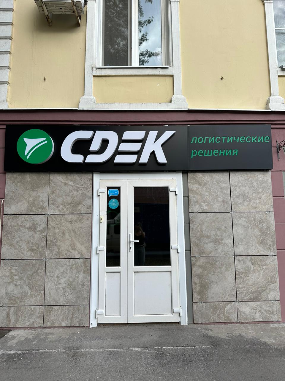 Вход со стороны улицы Молодогвардейской. За рестораном ЧипоЛучо шлагбаум, далее второе крыльцо, над которым висит вывеска СДЭК.