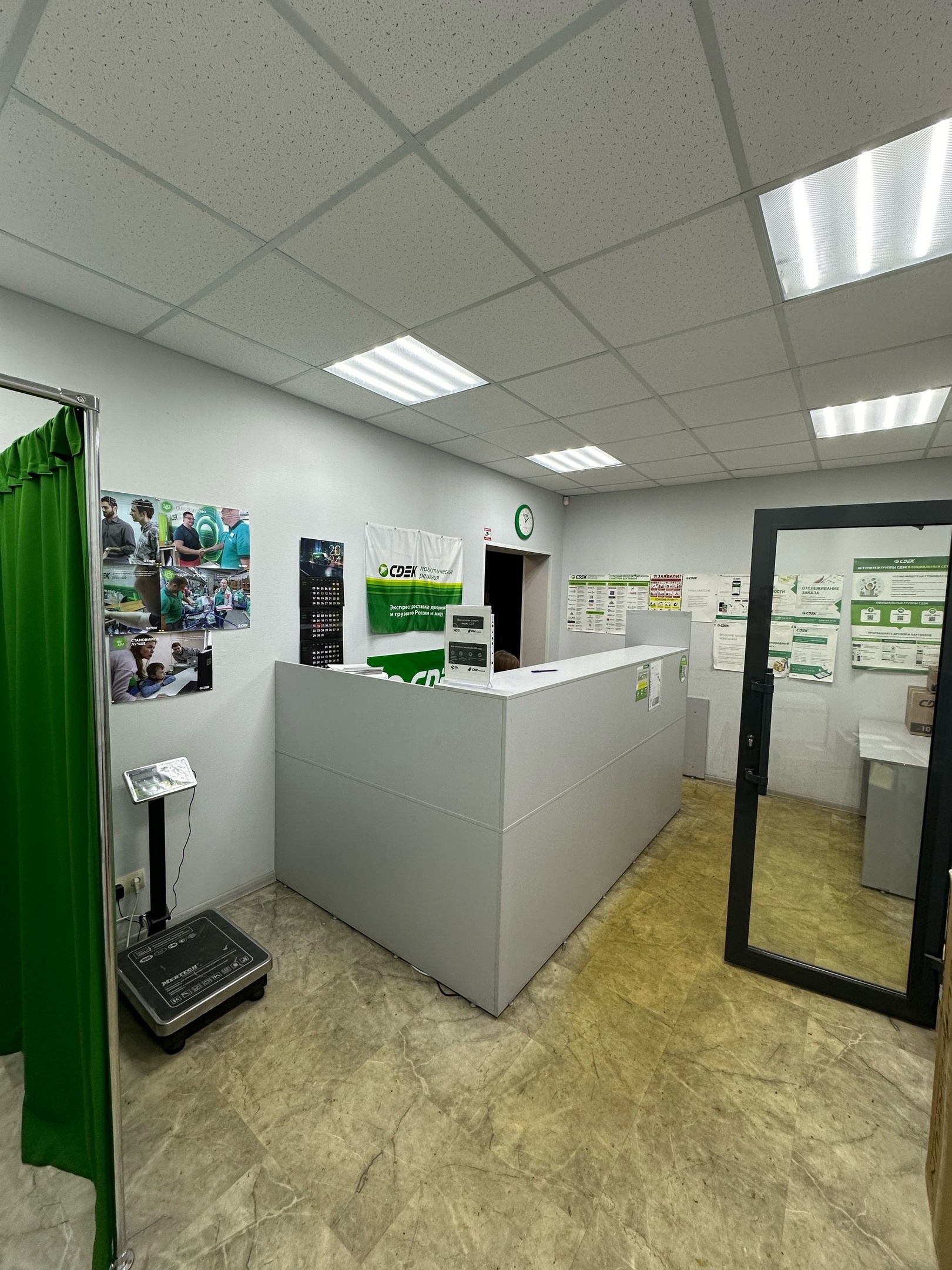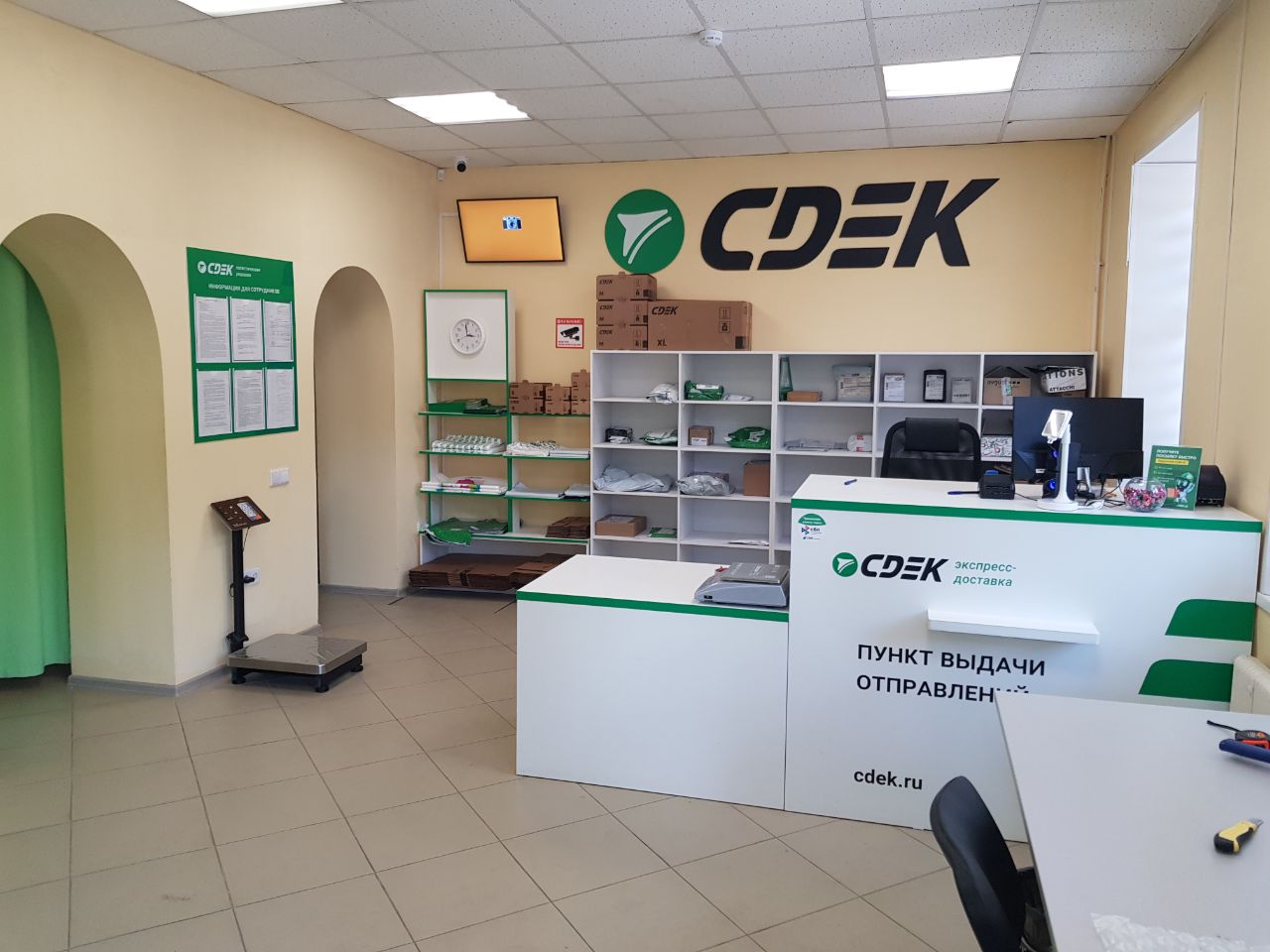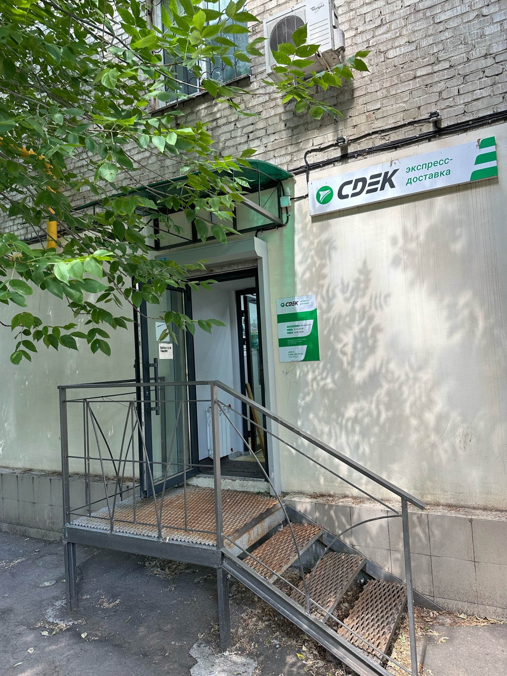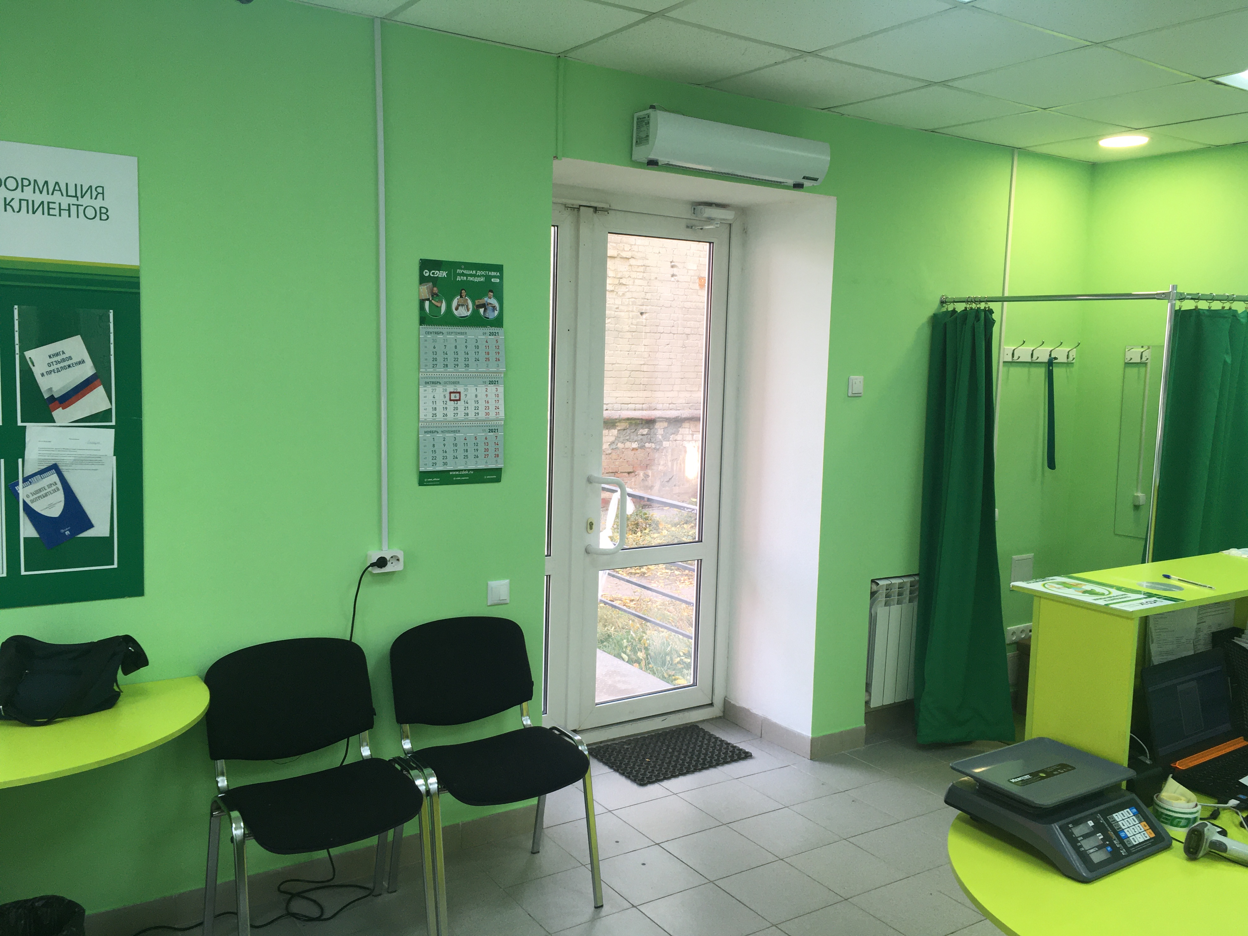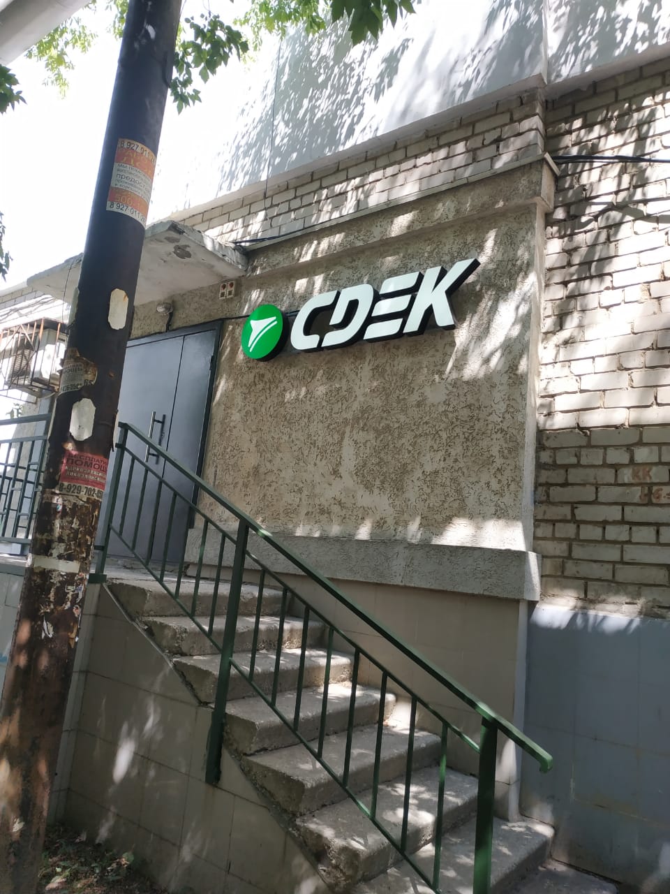 Вход со стороны улицы Молодогвардейской. За рестораном ЧипоЛучо шлагбаум, далее второе крыльцо, над которым висит вывеска СДЭК.