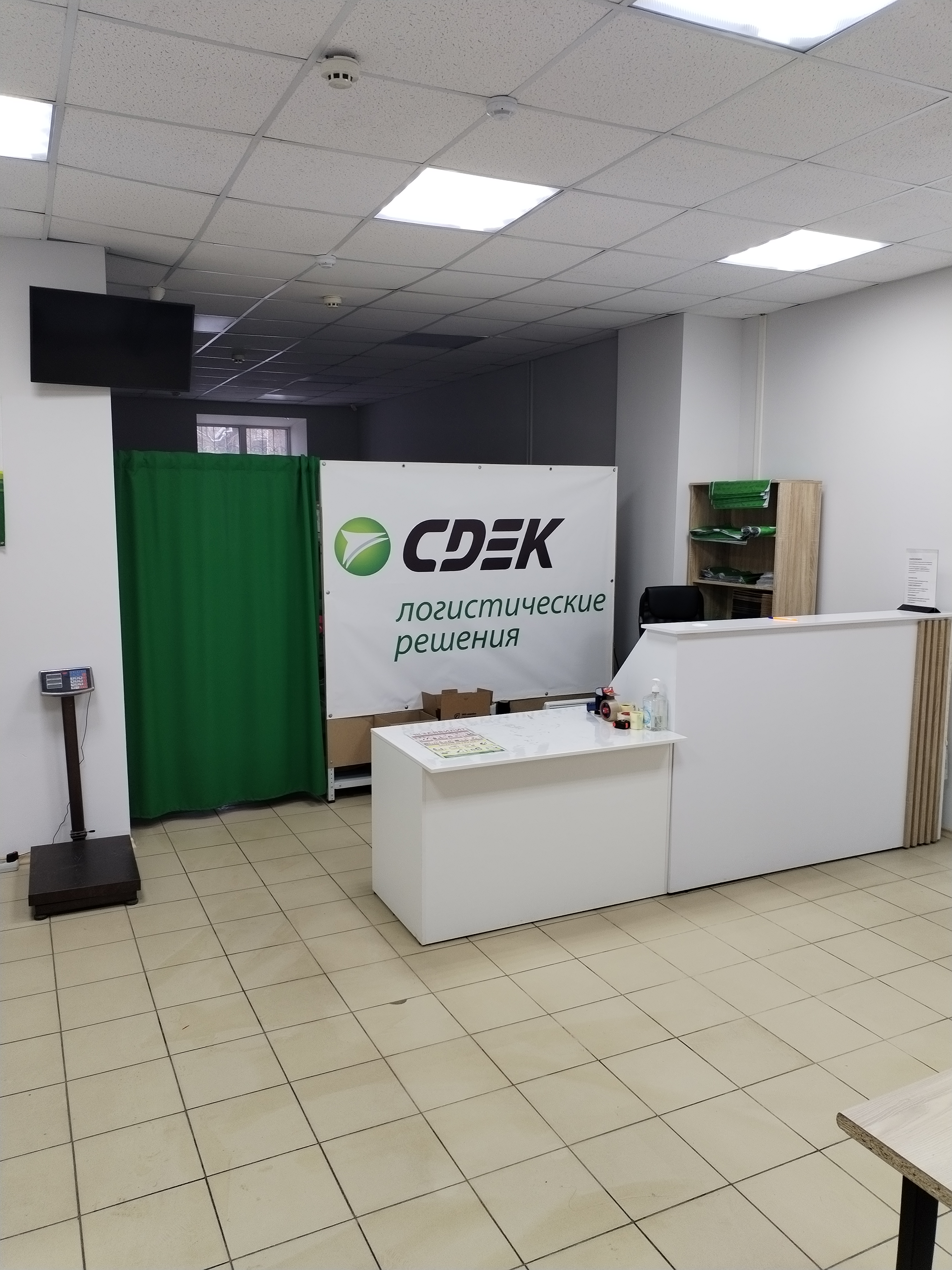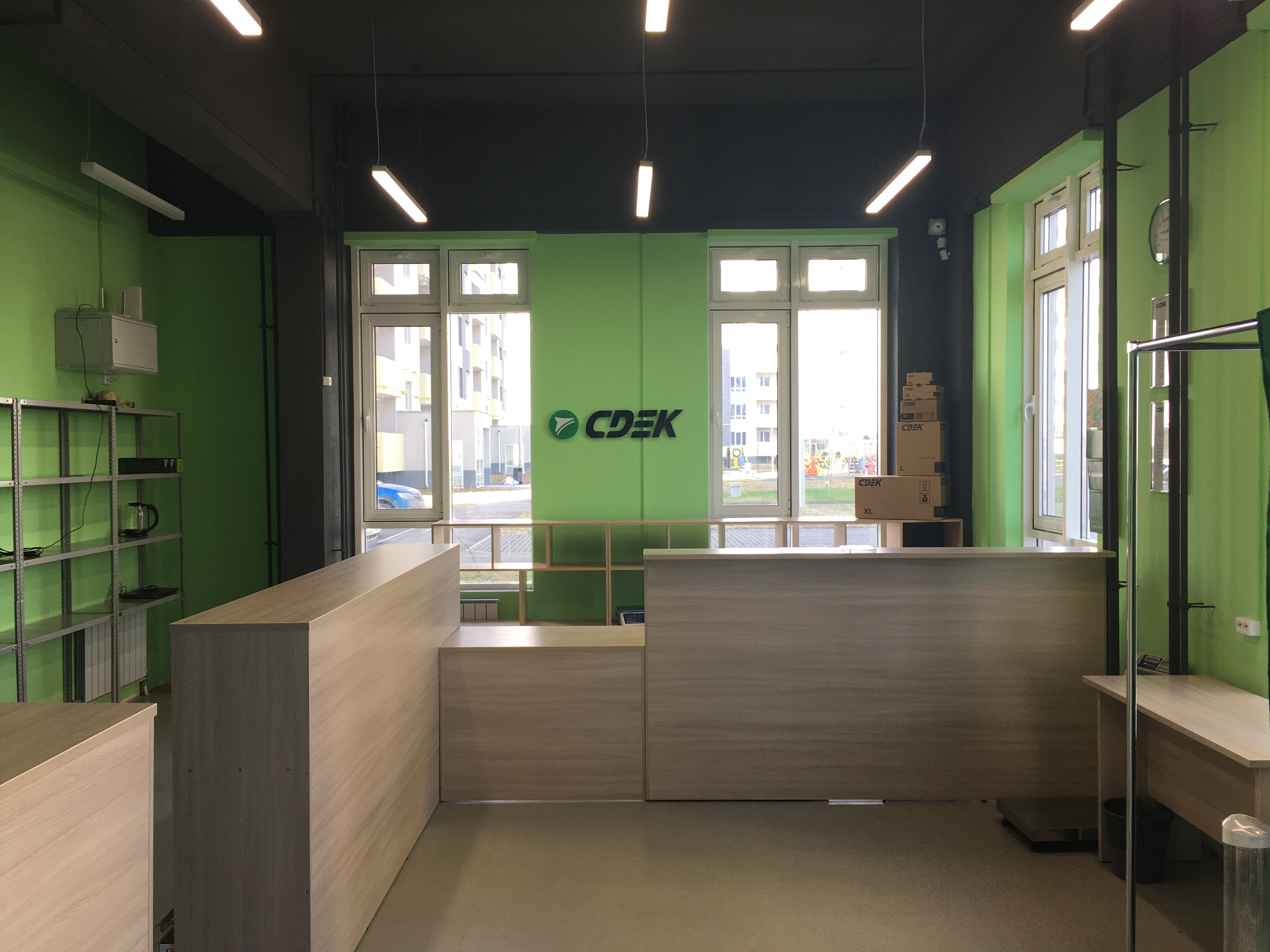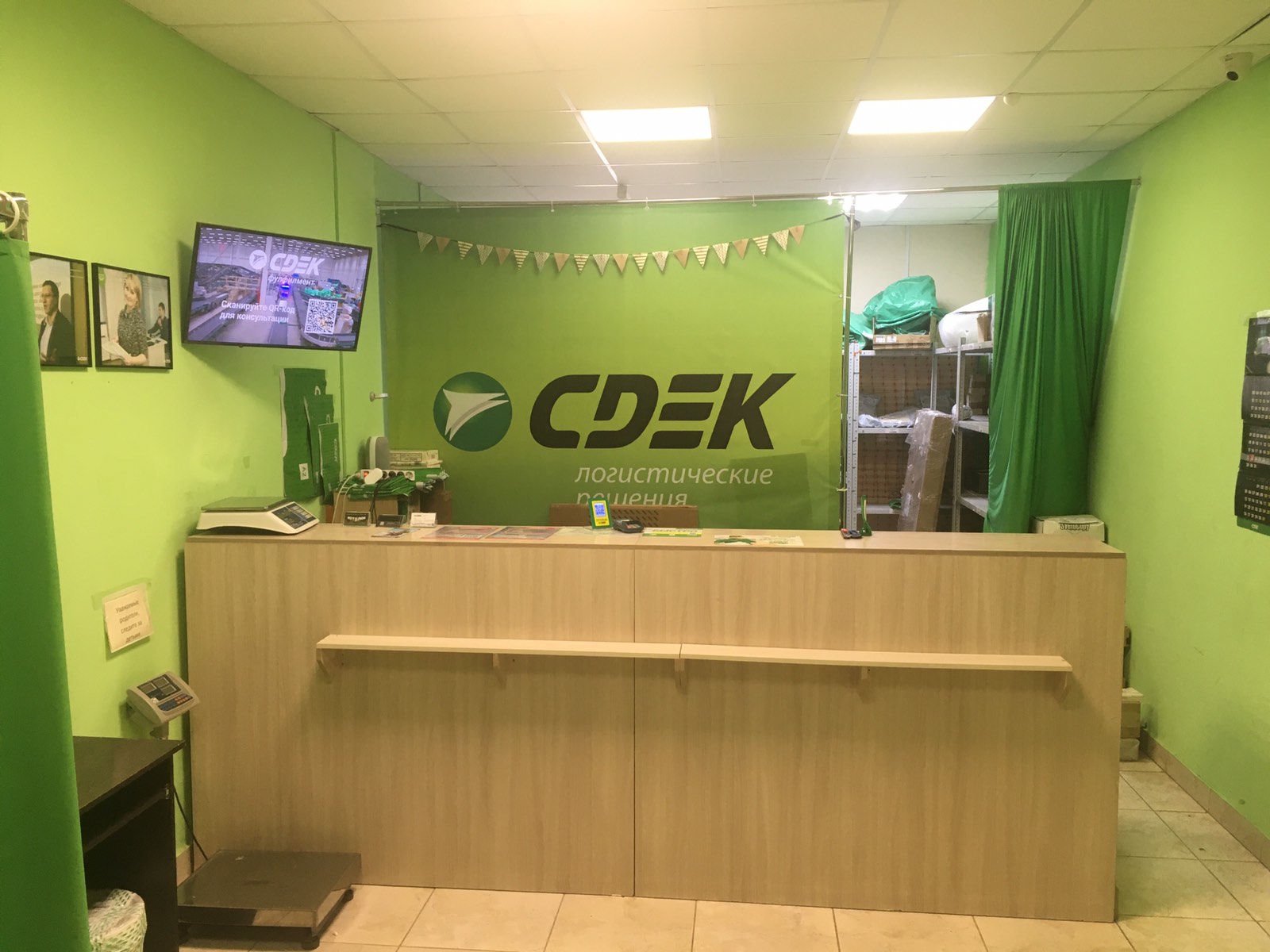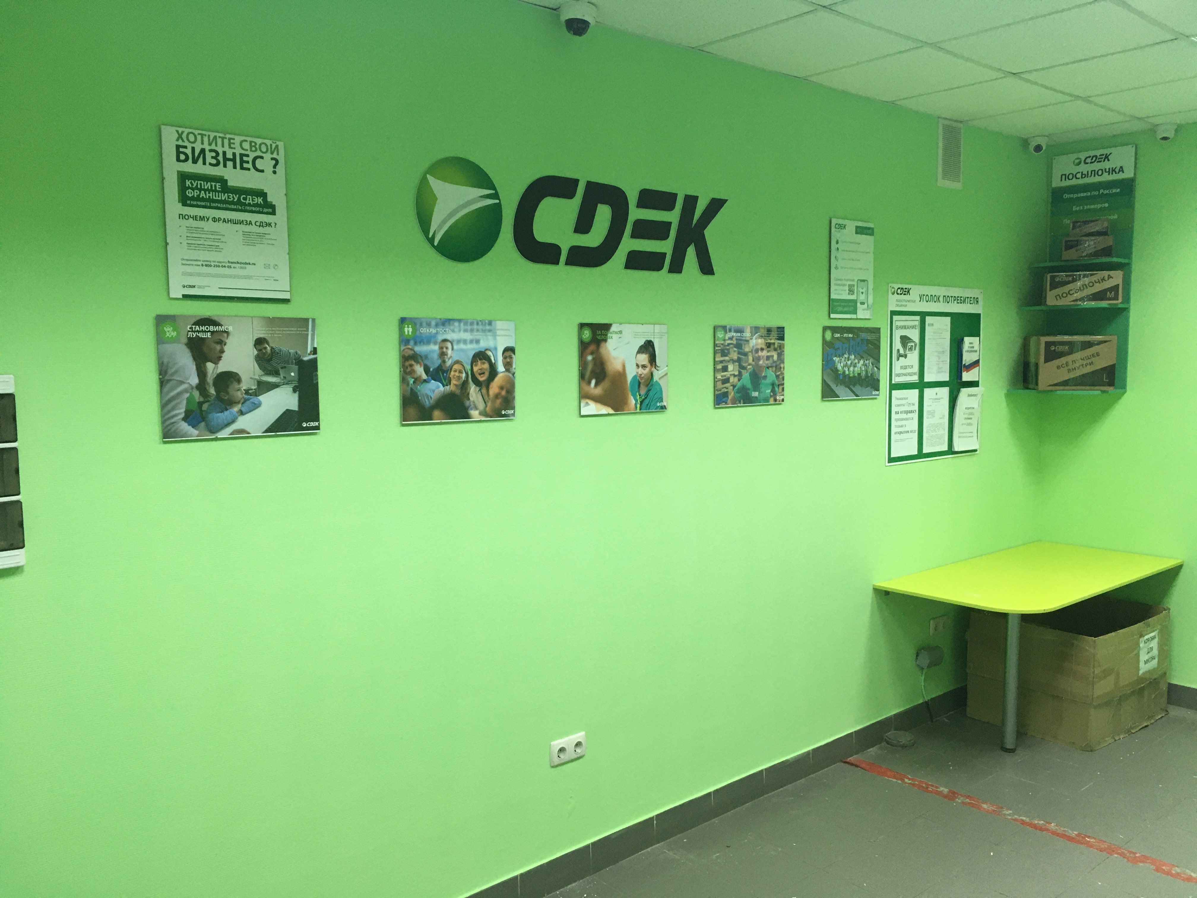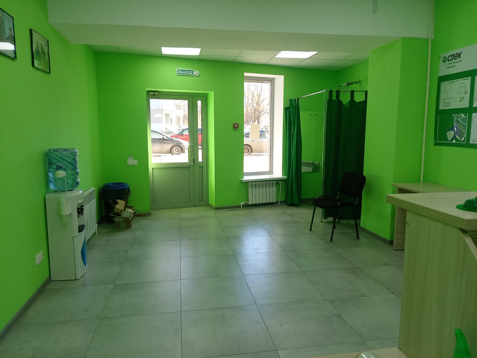 Вход со стороны улицы Молодогвардейской. За рестораном ЧипоЛучо шлагбаум, далее второе крыльцо, над которым висит вывеска СДЭК.