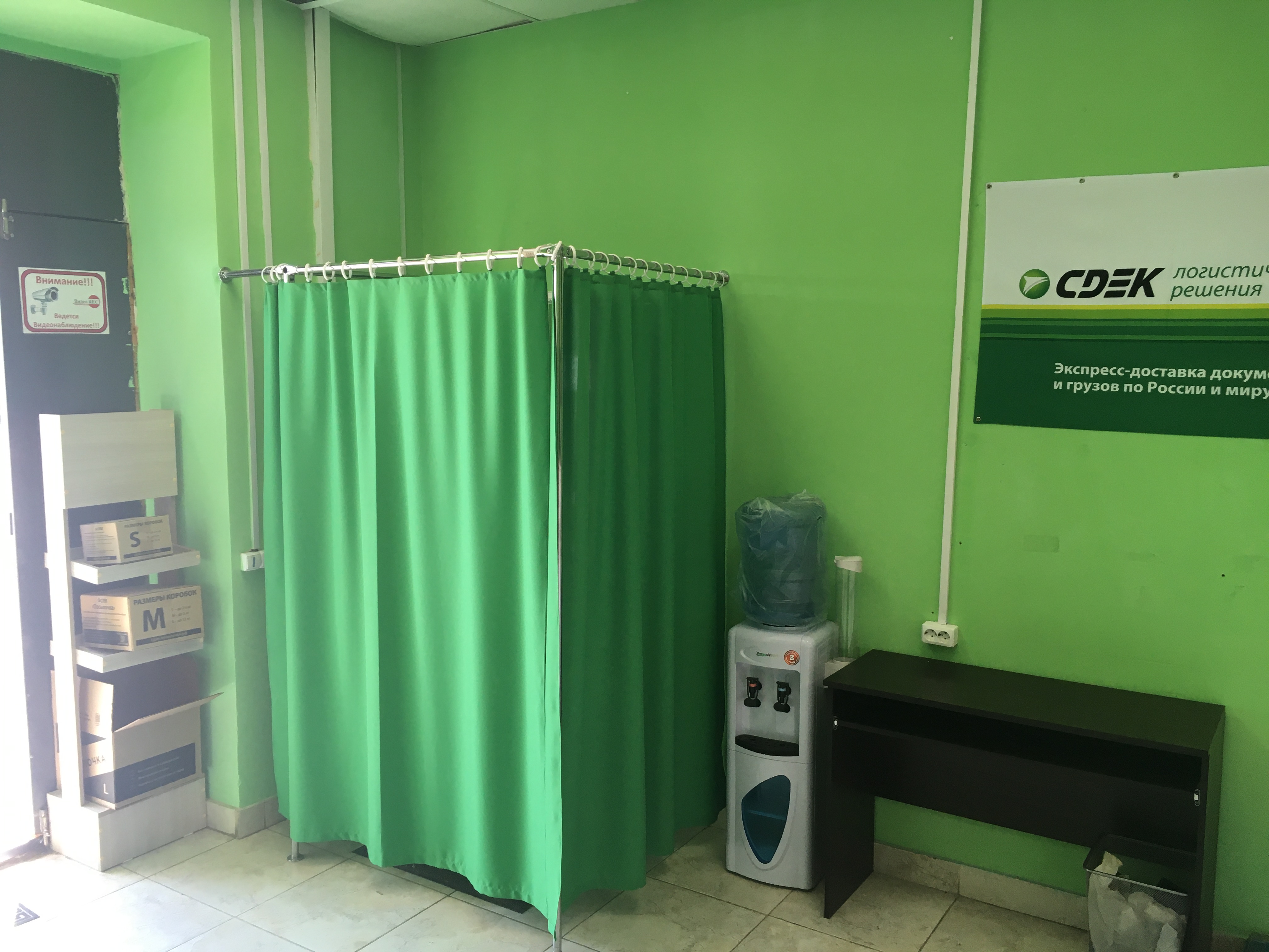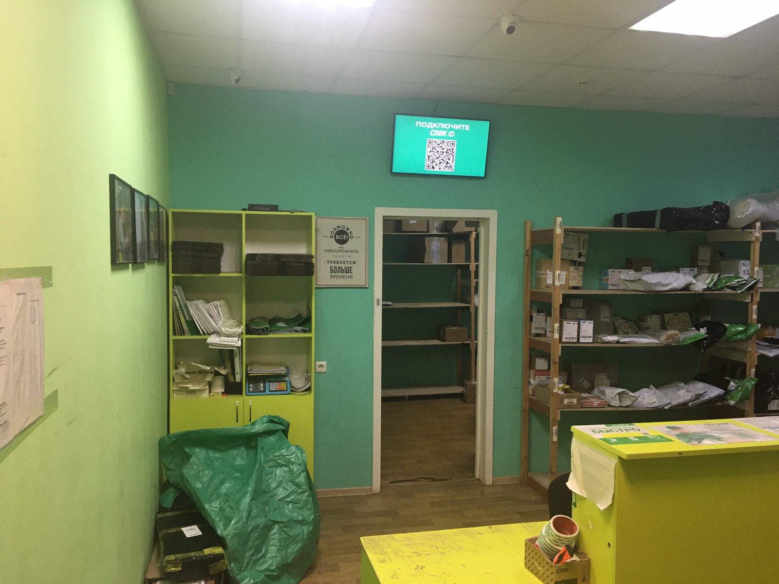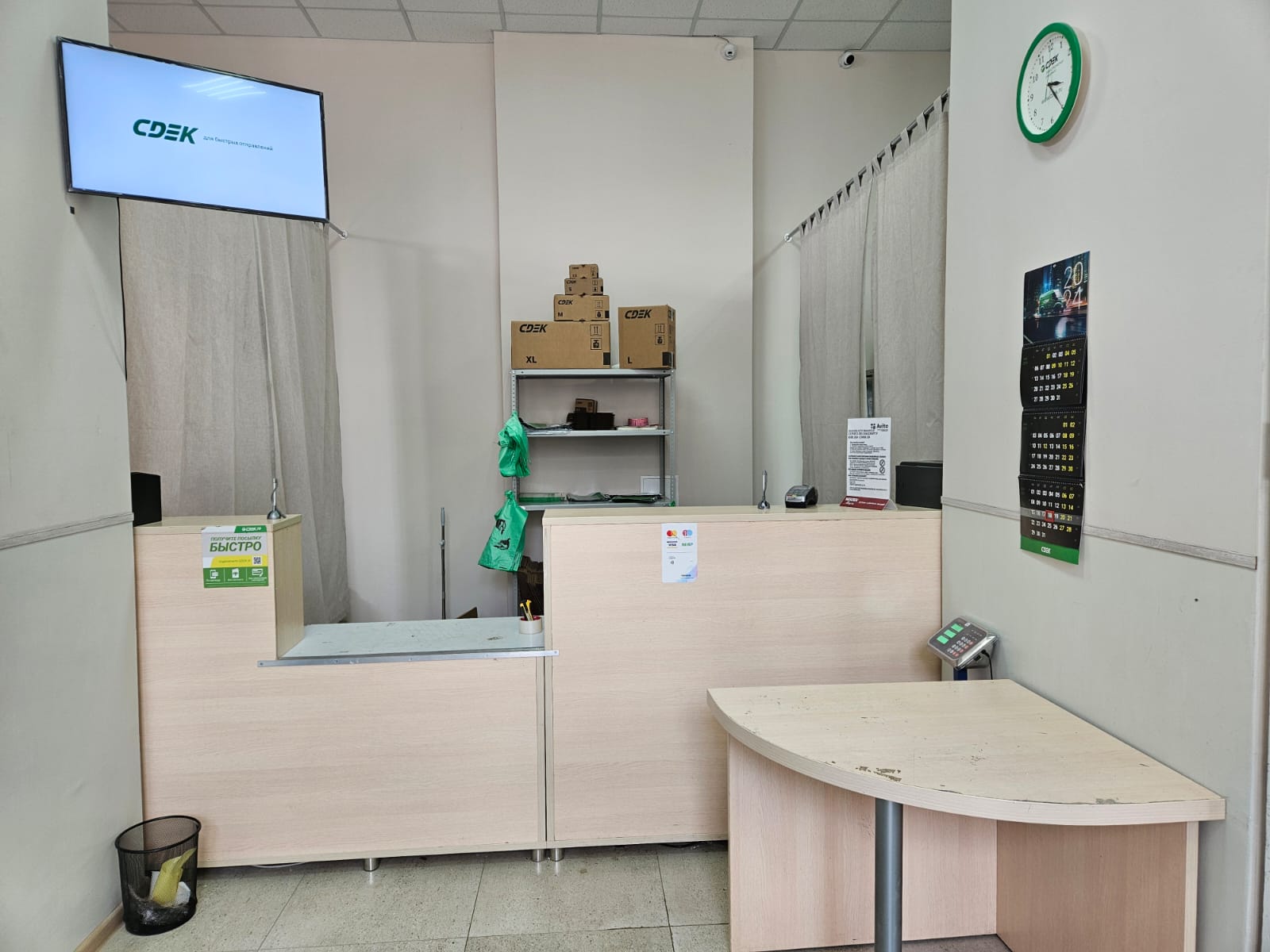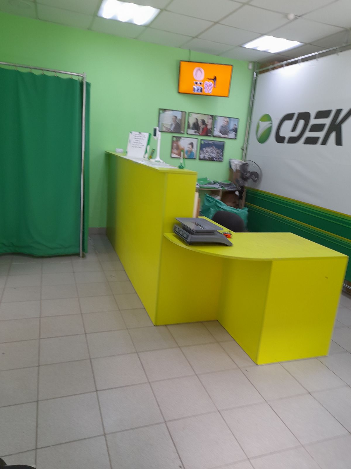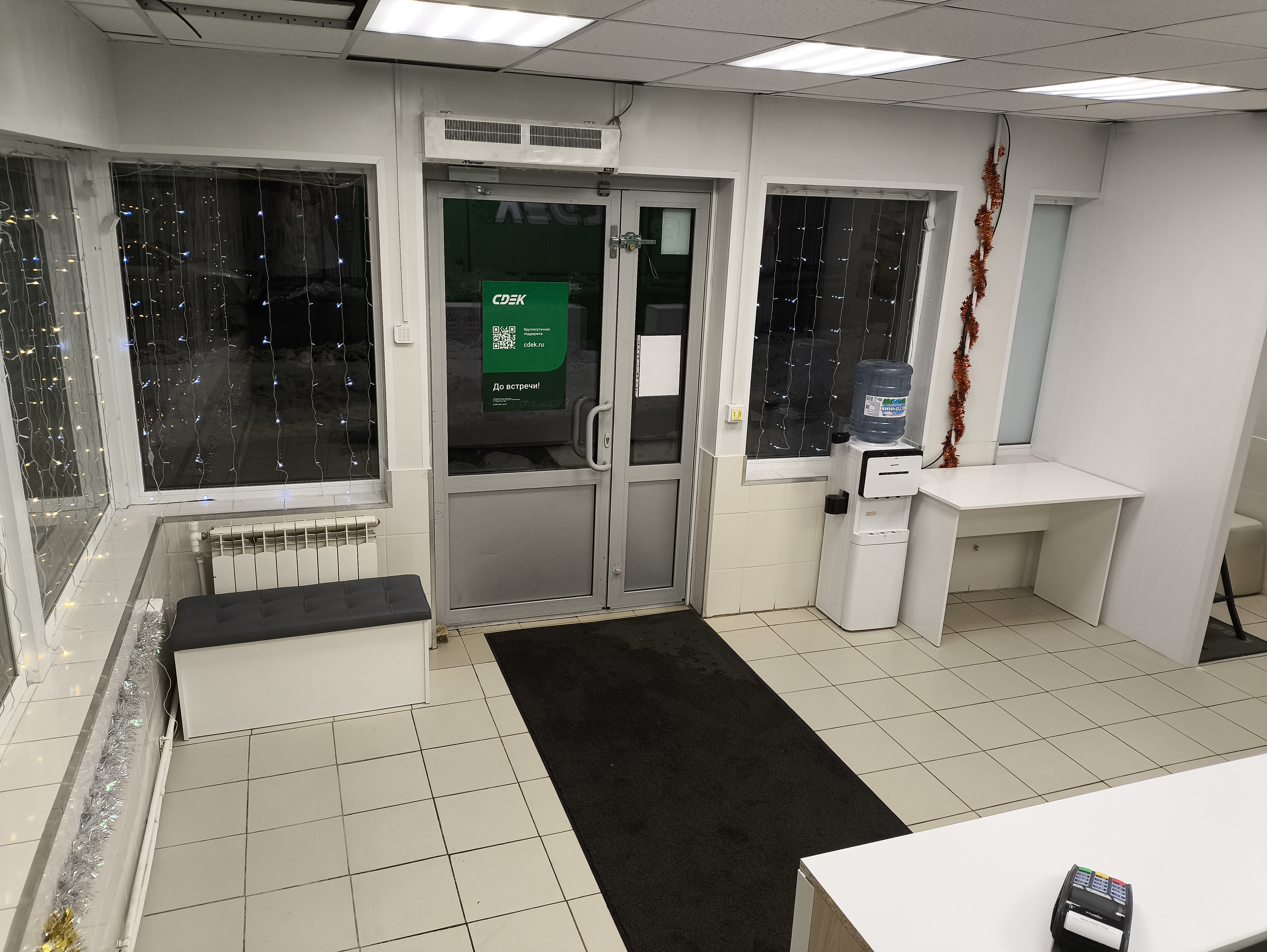 Вход со стороны улицы Молодогвардейской. За рестораном ЧипоЛучо шлагбаум, далее второе крыльцо, над которым висит вывеска СДЭК.