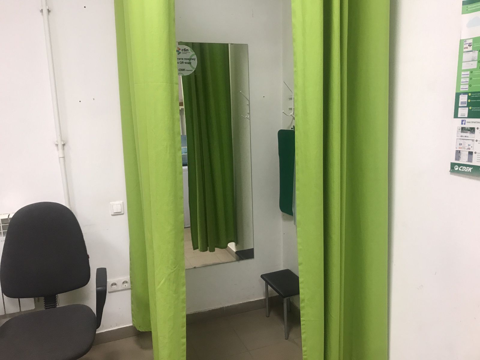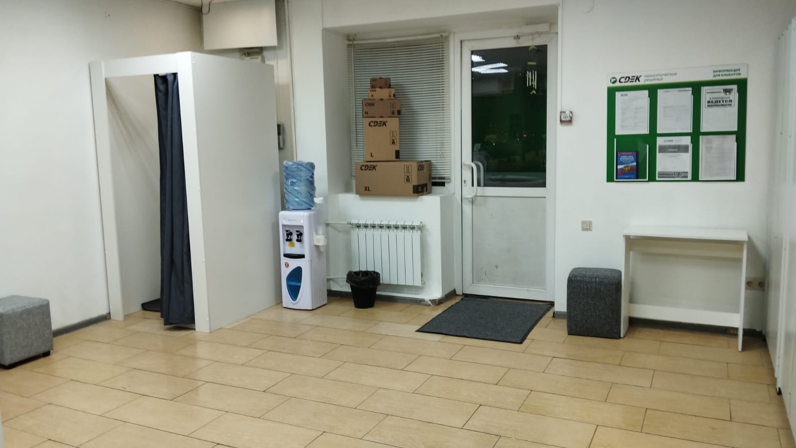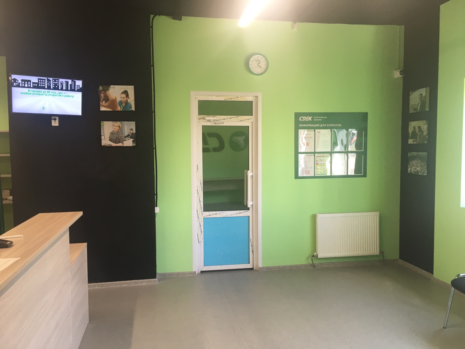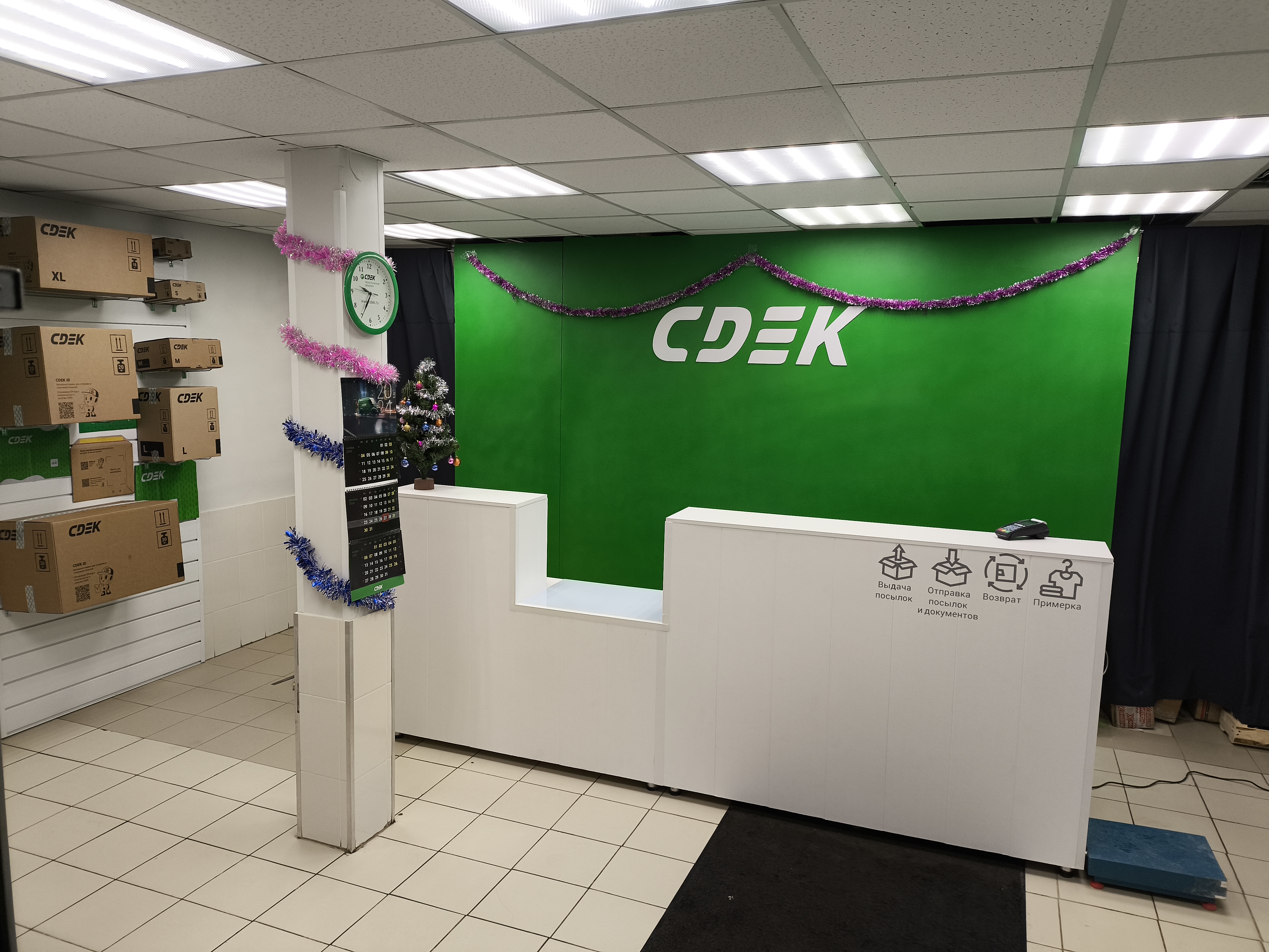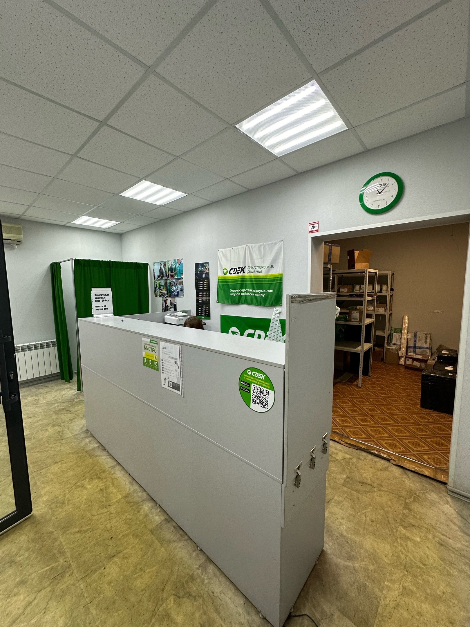 Вход со стороны улицы Молодогвардейской. За рестораном ЧипоЛучо шлагбаум, далее второе крыльцо, над которым висит вывеска СДЭК.