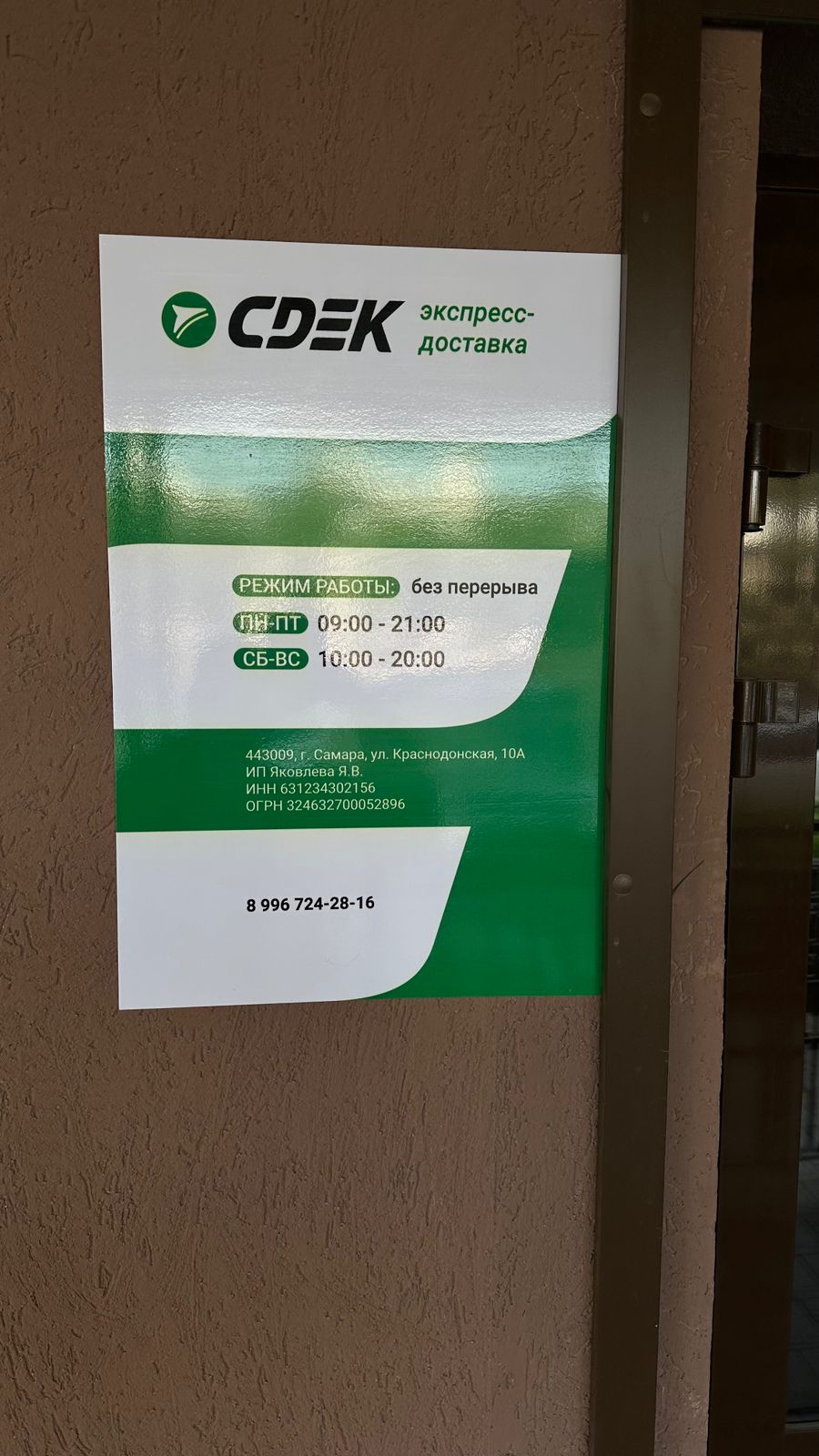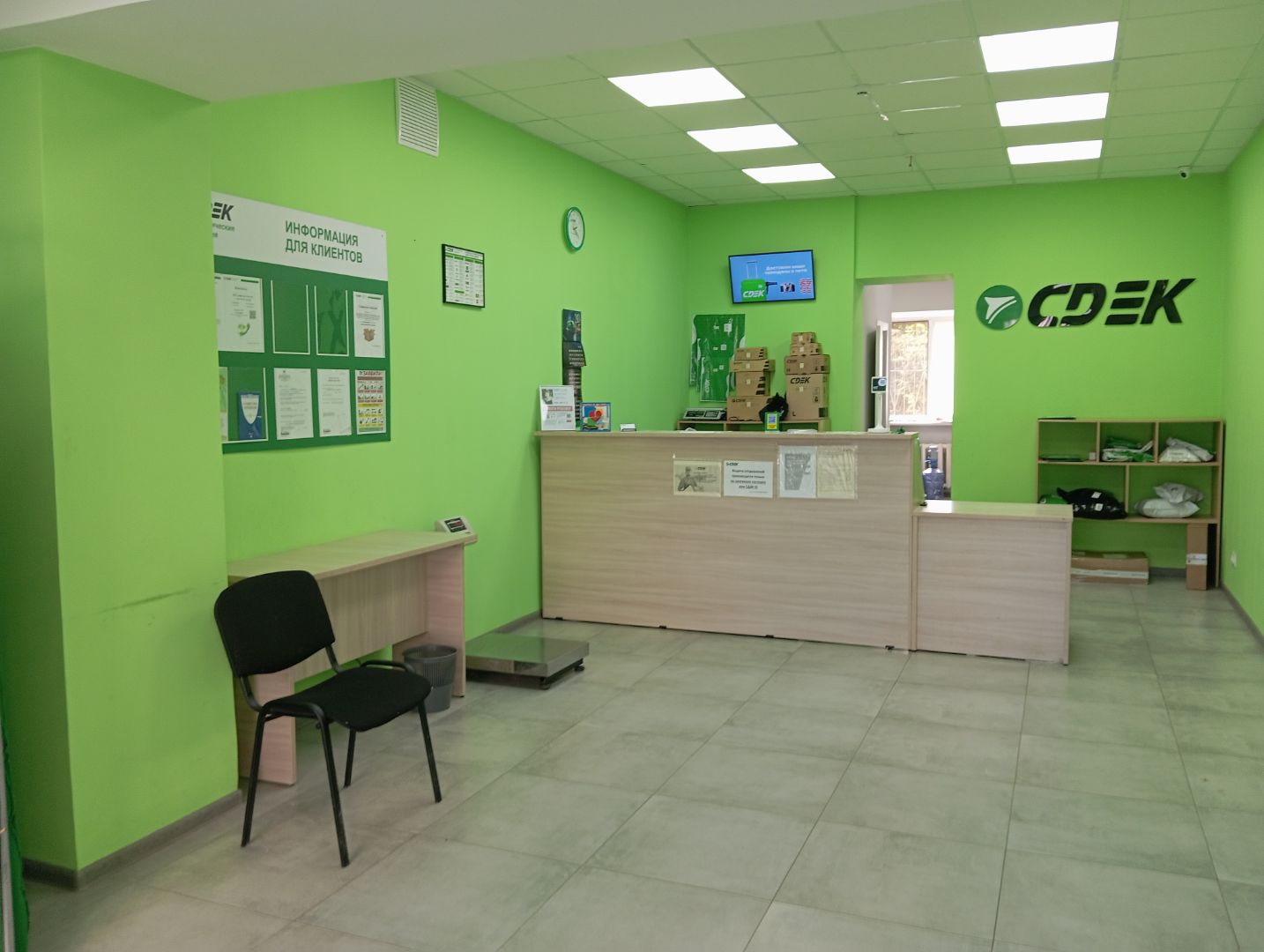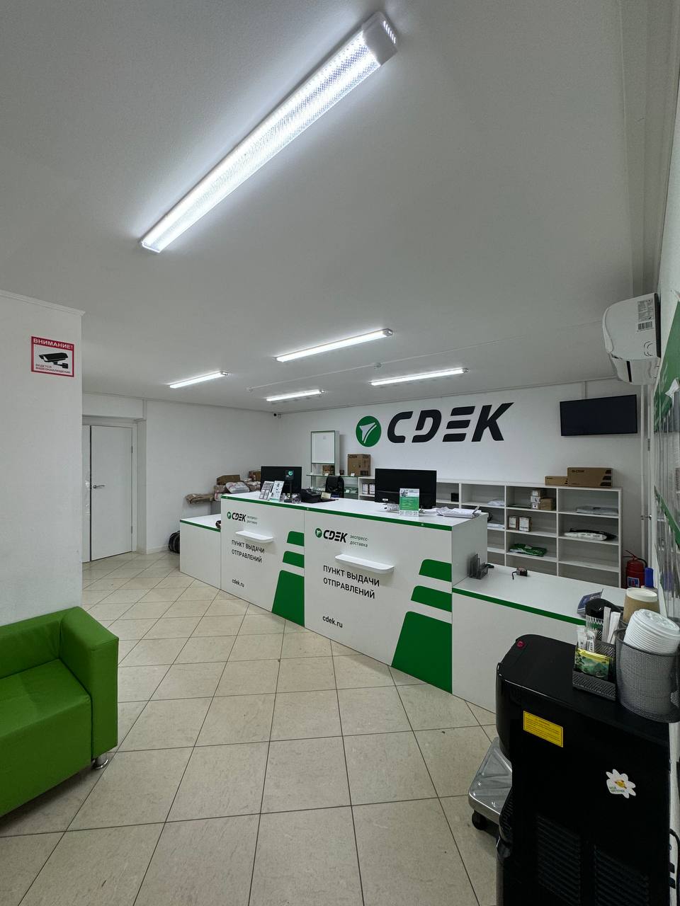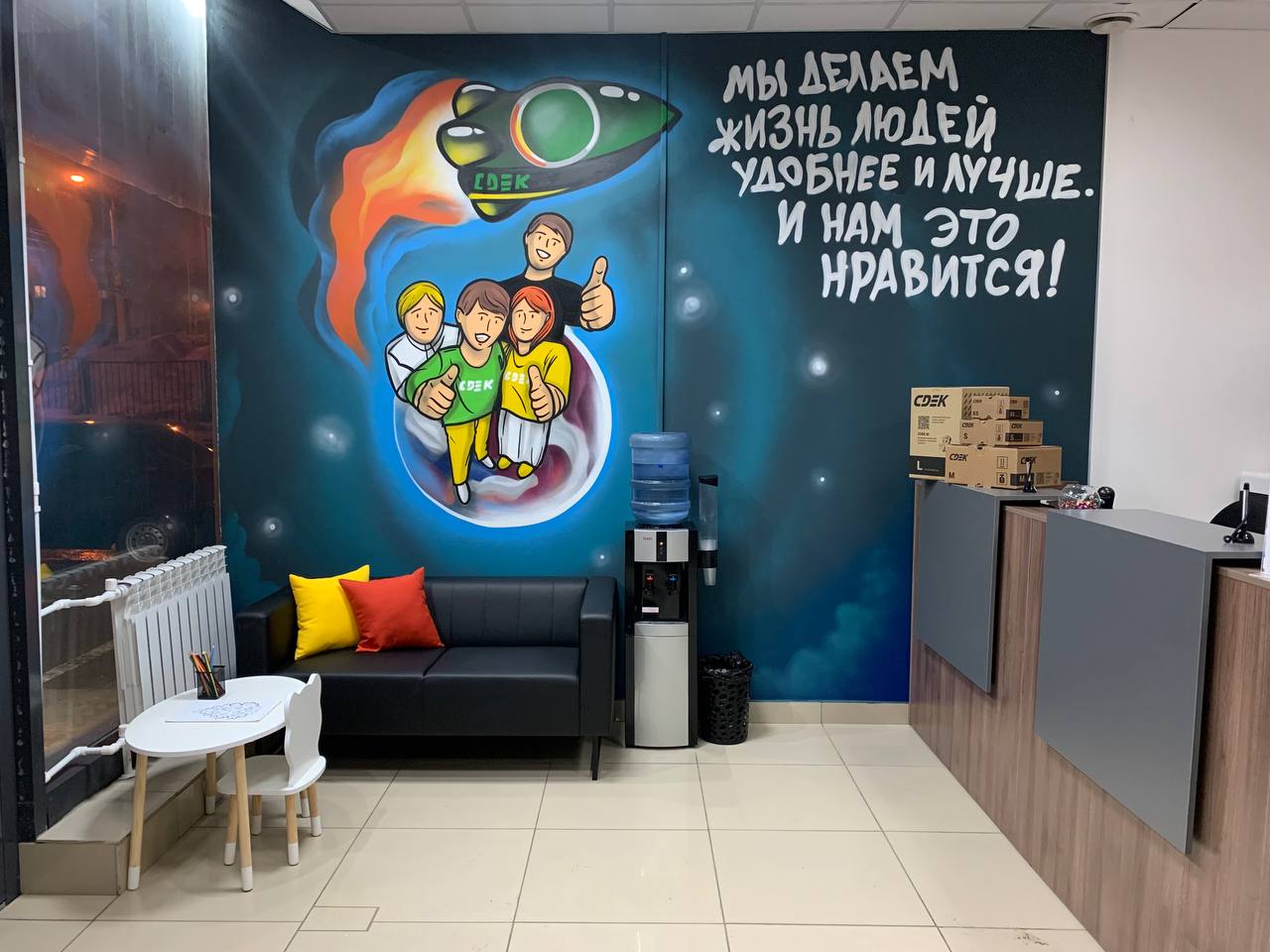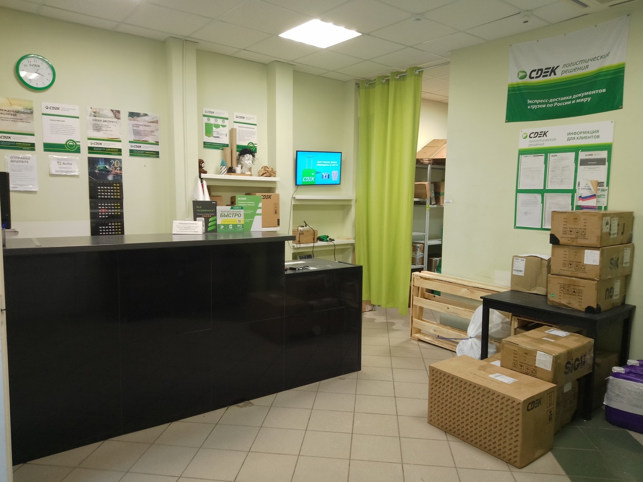 Вход со стороны улицы Молодогвардейской. За рестораном ЧипоЛучо шлагбаум, далее второе крыльцо, над которым висит вывеска СДЭК.