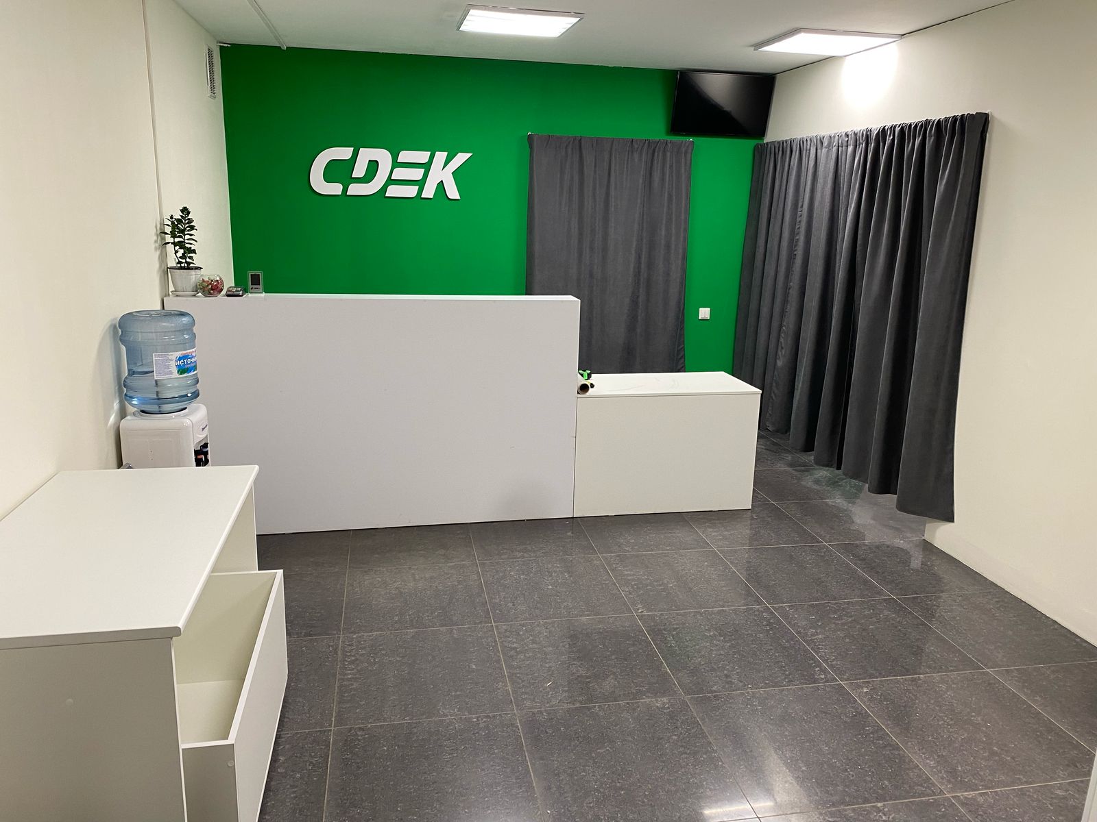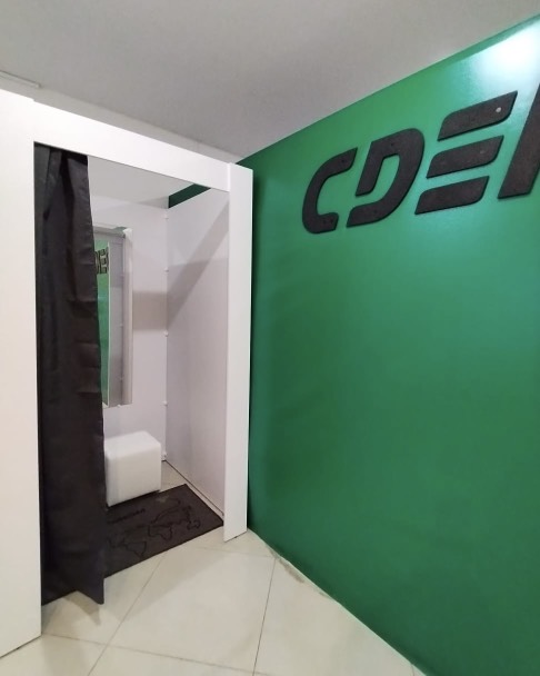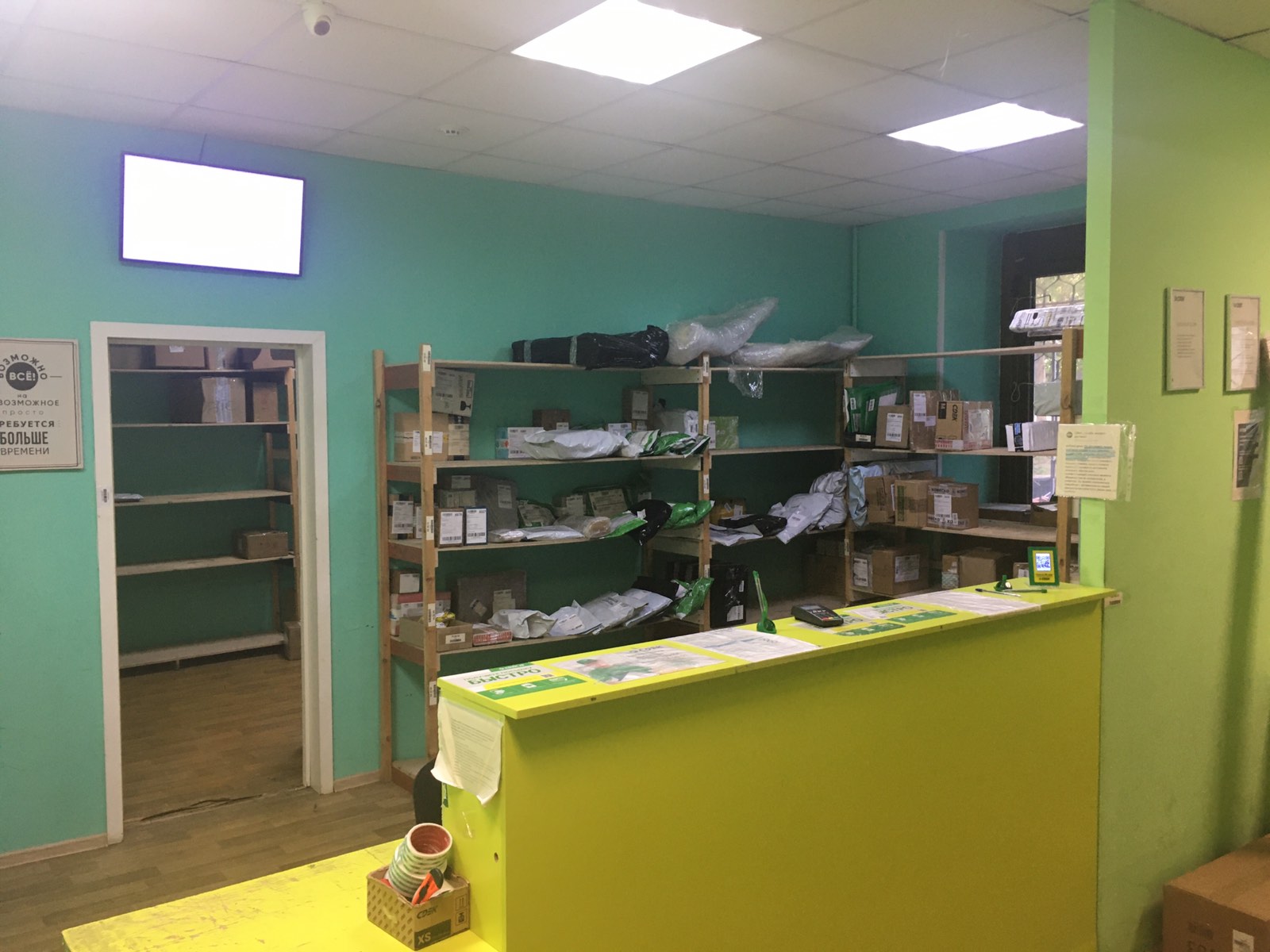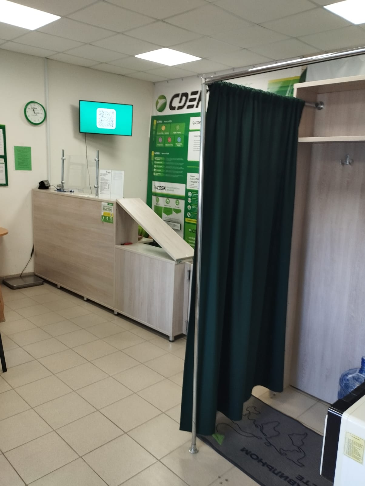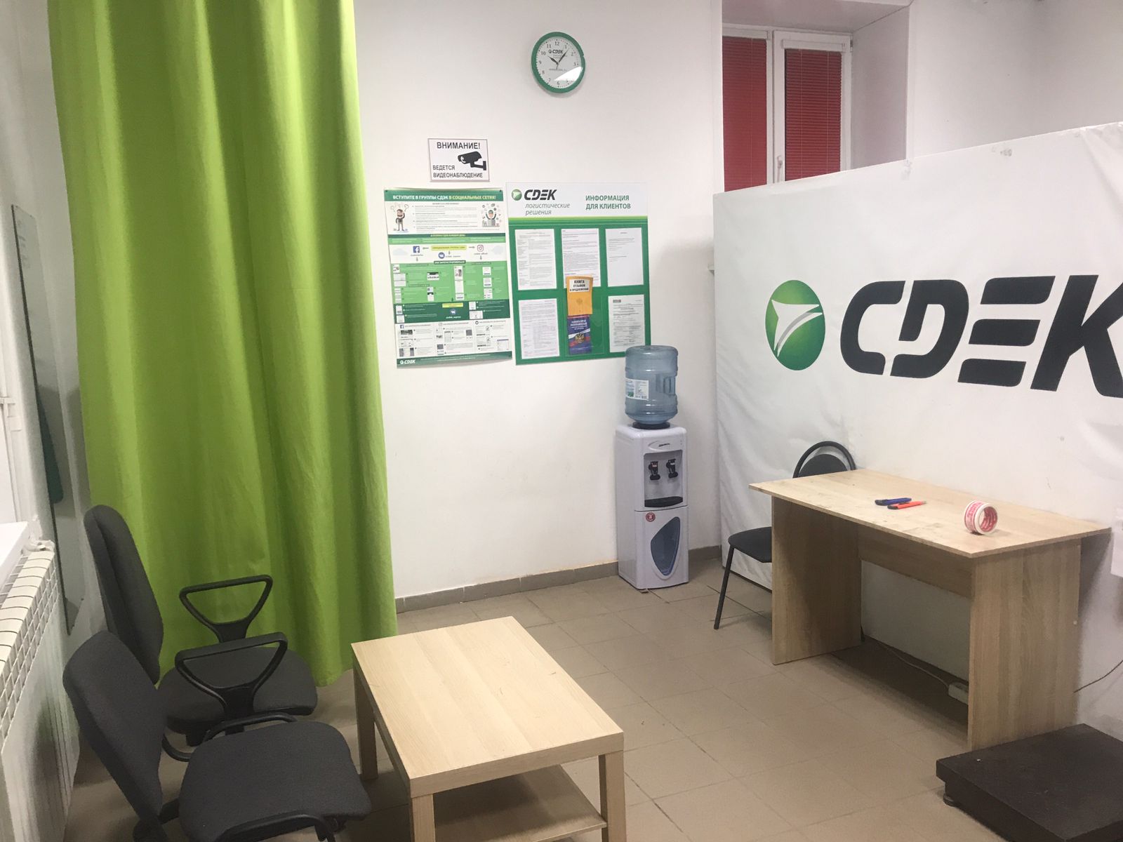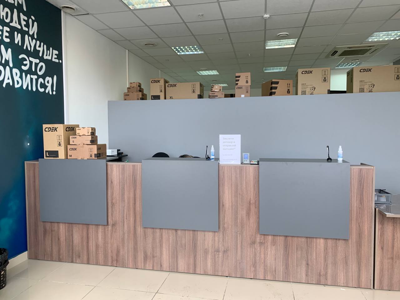 Вход со стороны улицы Молодогвардейской. За рестораном ЧипоЛучо шлагбаум, далее второе крыльцо, над которым висит вывеска СДЭК.