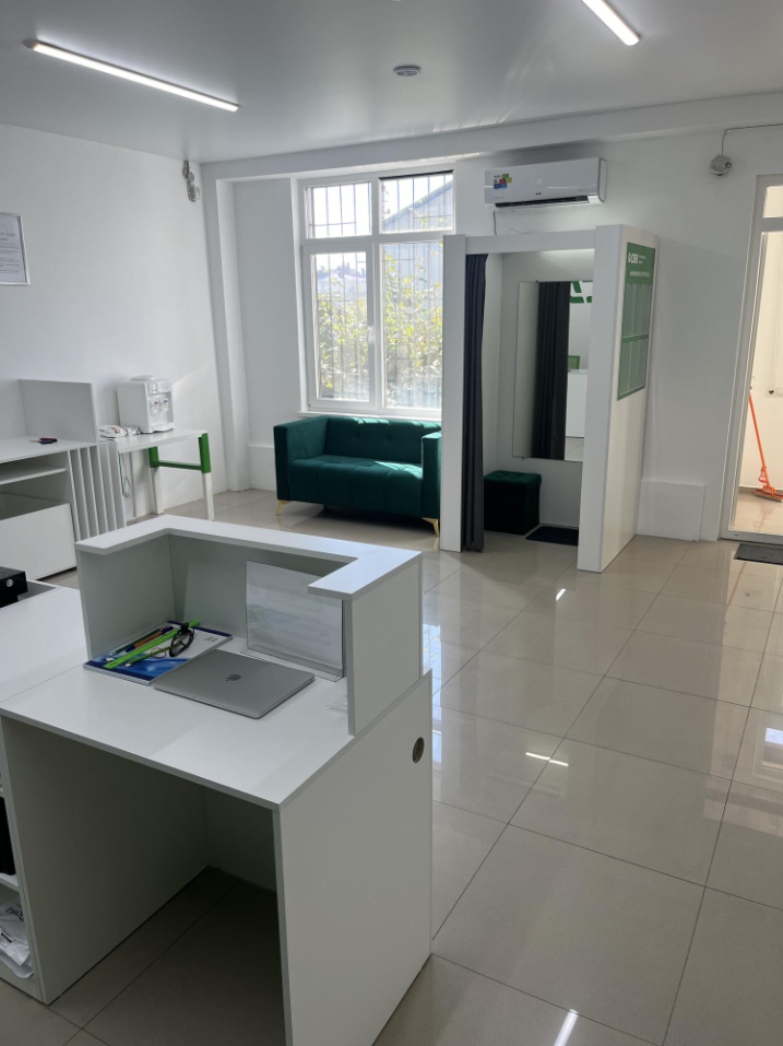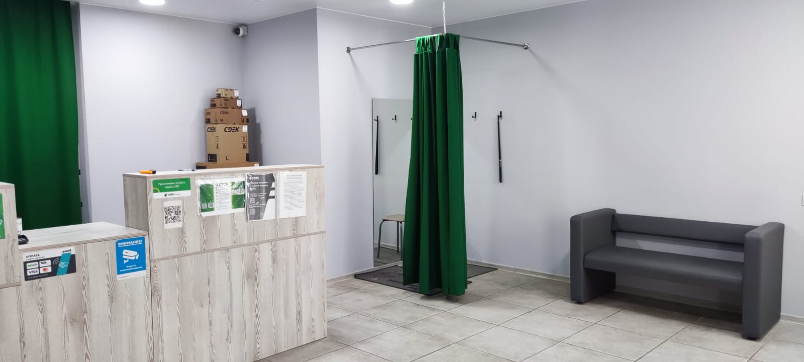 За остановкой общественного транспорта (по направлению в Центр города) "проспект Октябрьской Революции", за двухэтажным зданием находятся новые помещения, в одном из которых расположен офис С