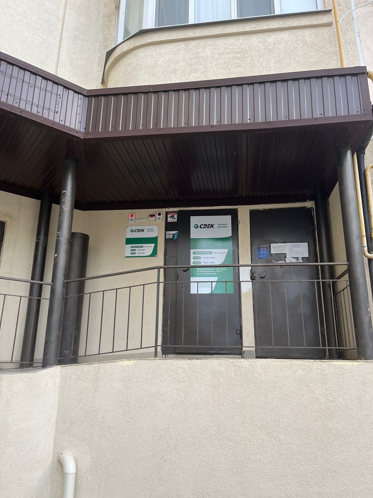 Десятиэтажный дом на ост. Комплекс, по направлению в сторону 5-го км. Вход в торце дома. Въезд во двор к ПВЗ со стороны Ген. Острякова - открыт