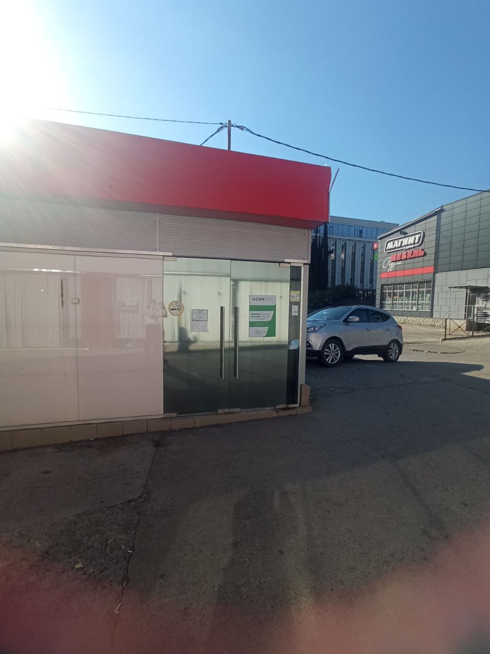 Вход в офис с торца здания Сбербанка. Рядом супермаркет Золотая Нива