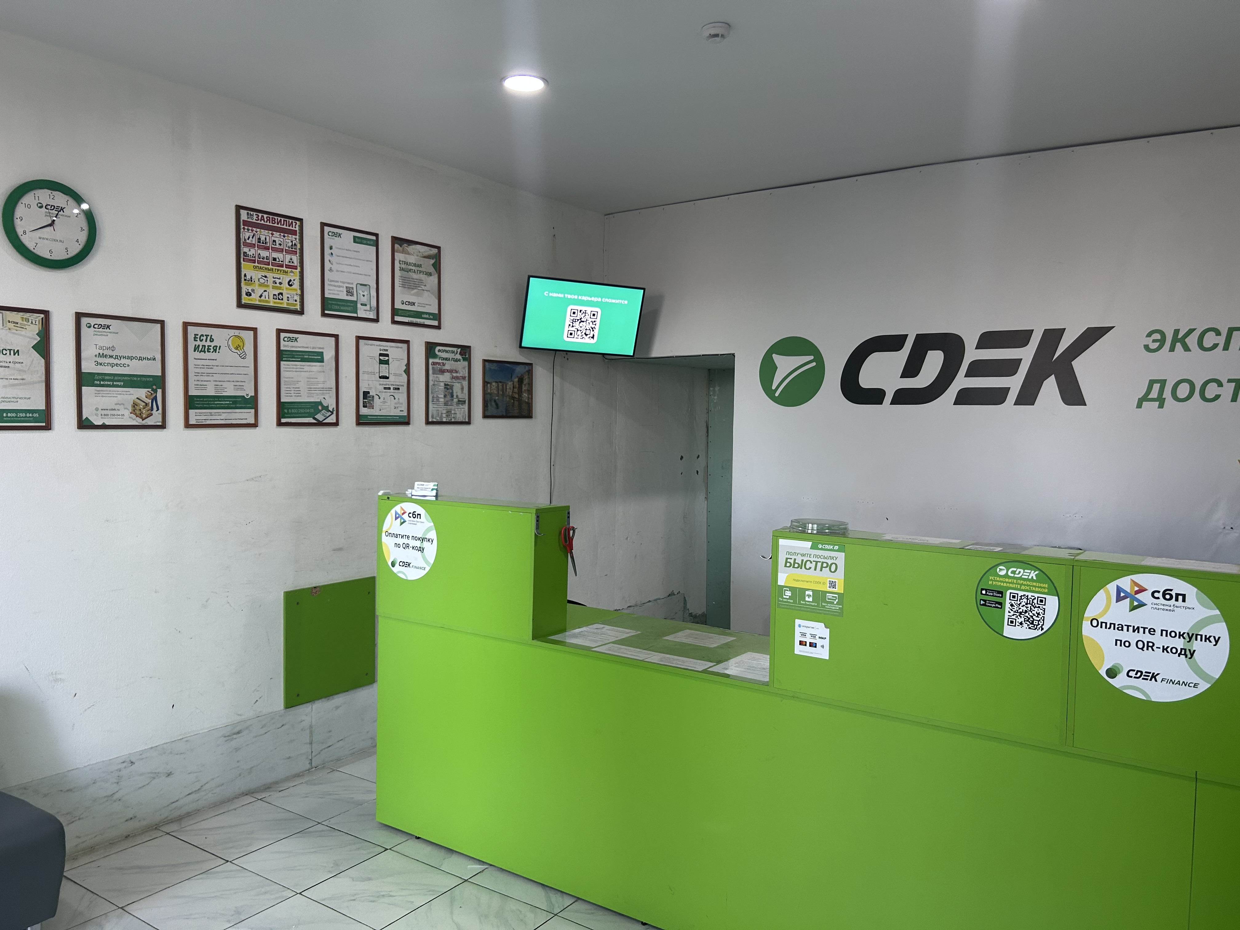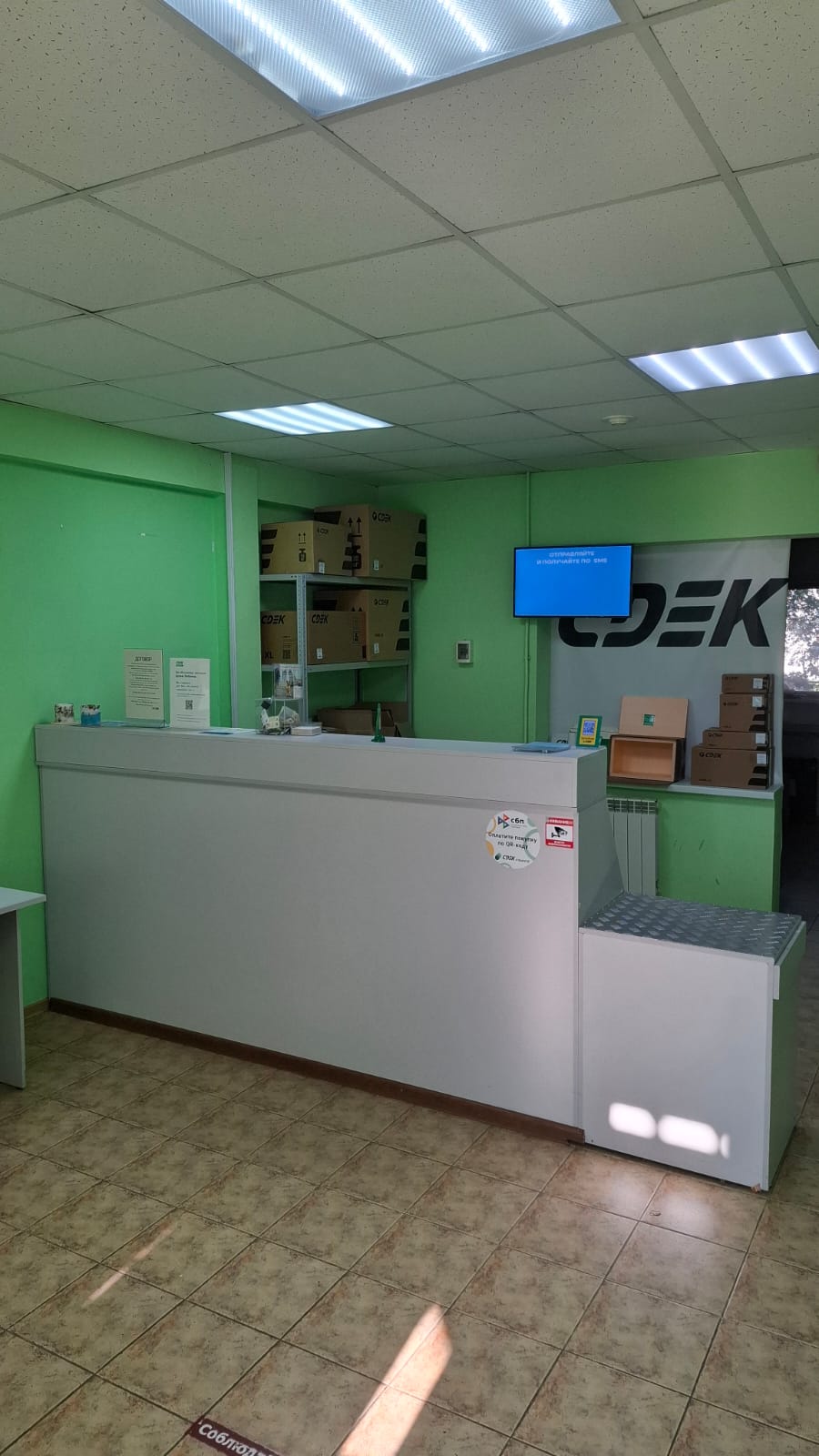 Постамат расположен в ПВЗ СДЭК, справа у входа.
