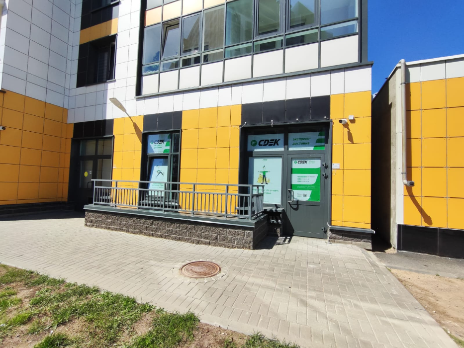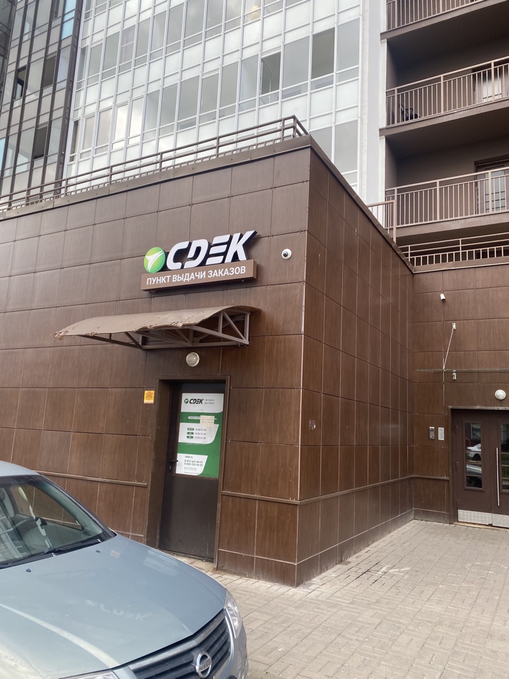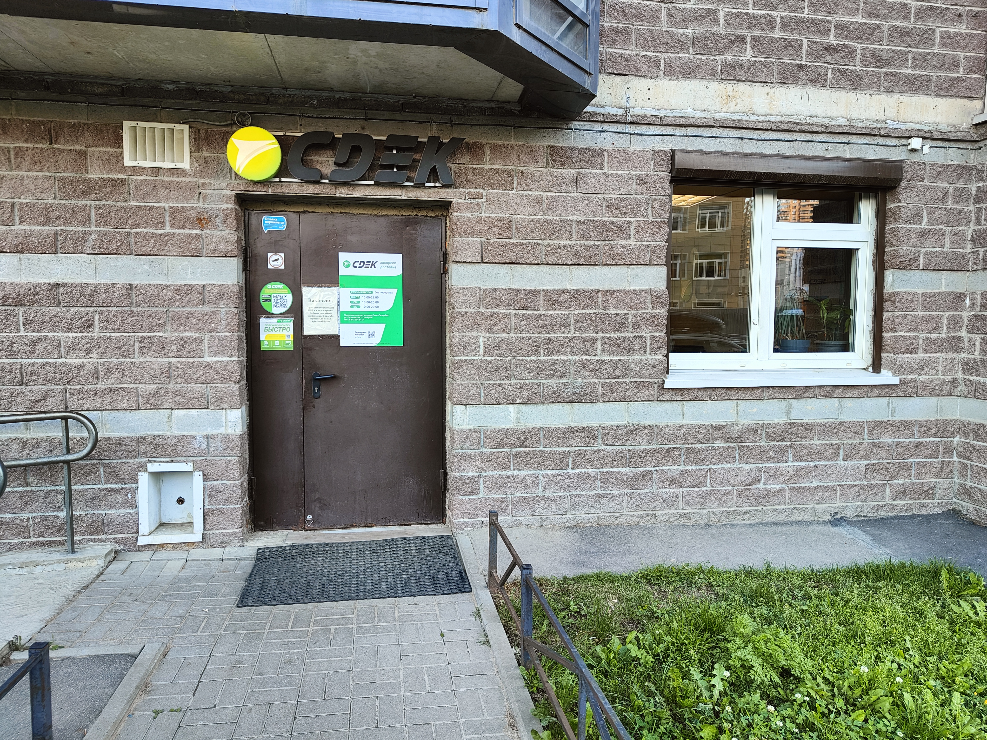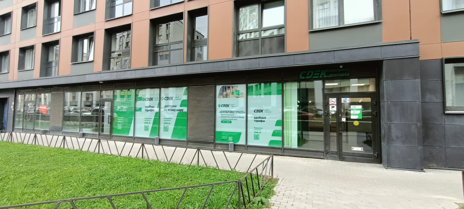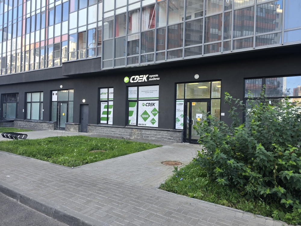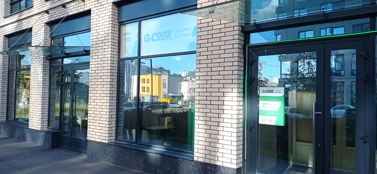 От перекрестка Гладышевского и Юнтоловского проспекта обойти дом с пекарней пока не будет видно вывеску СДЭК через дворовый проезд.