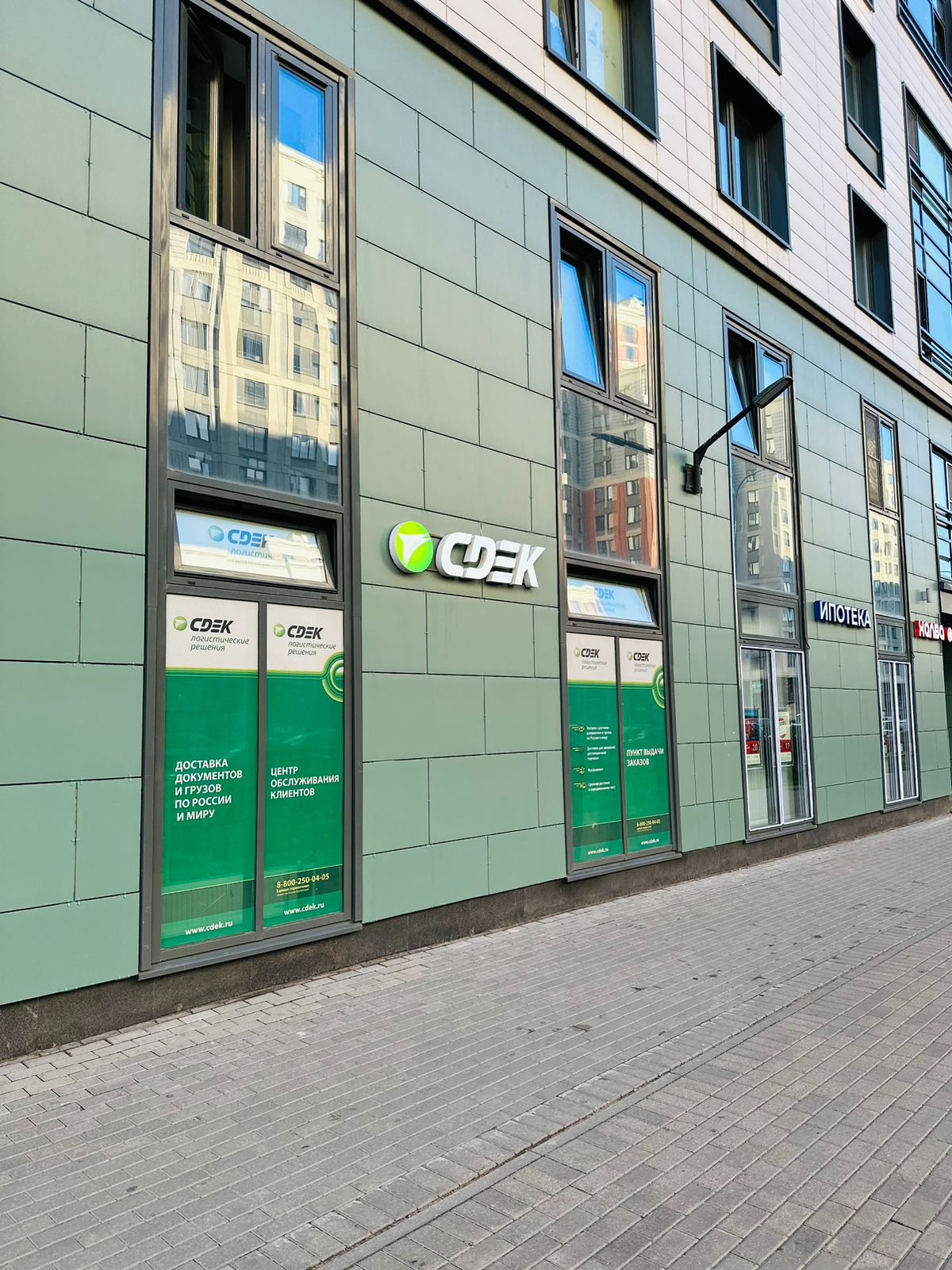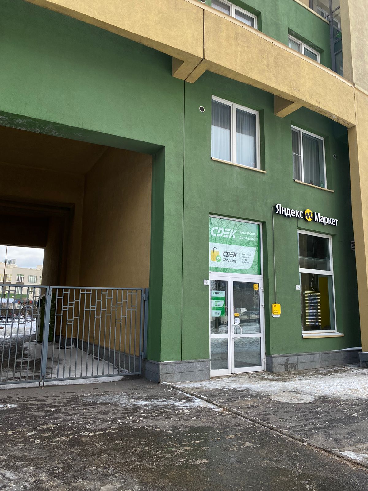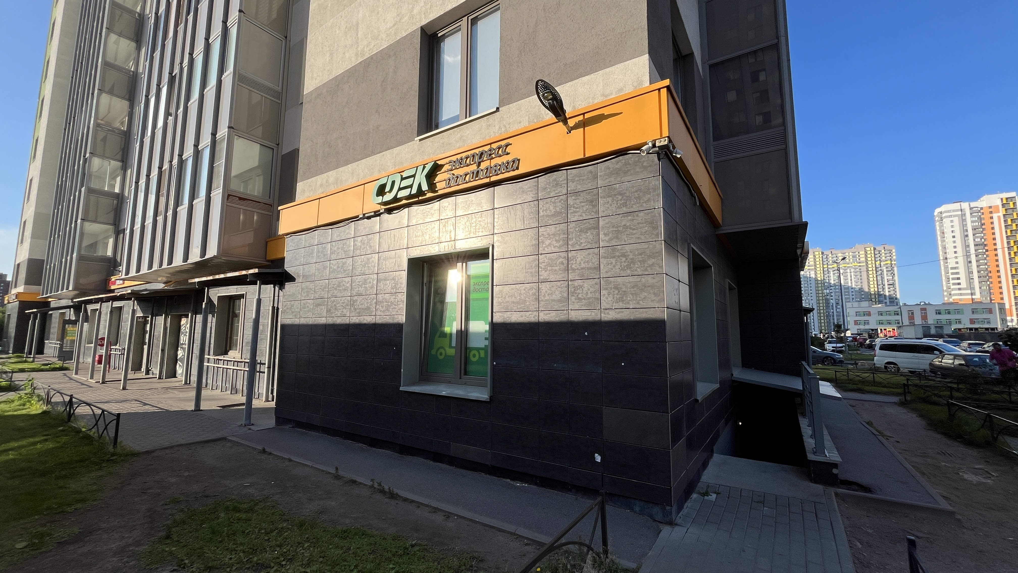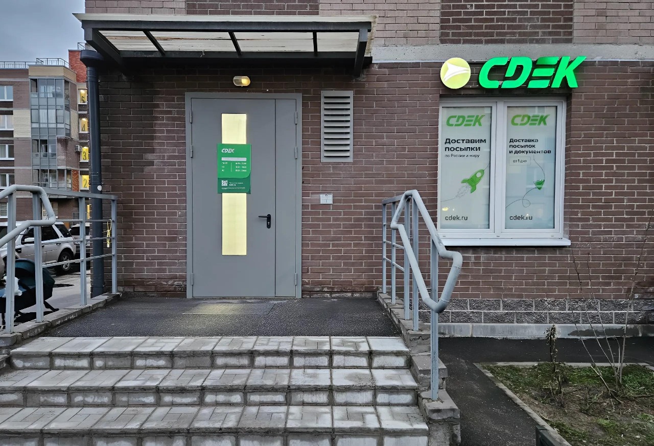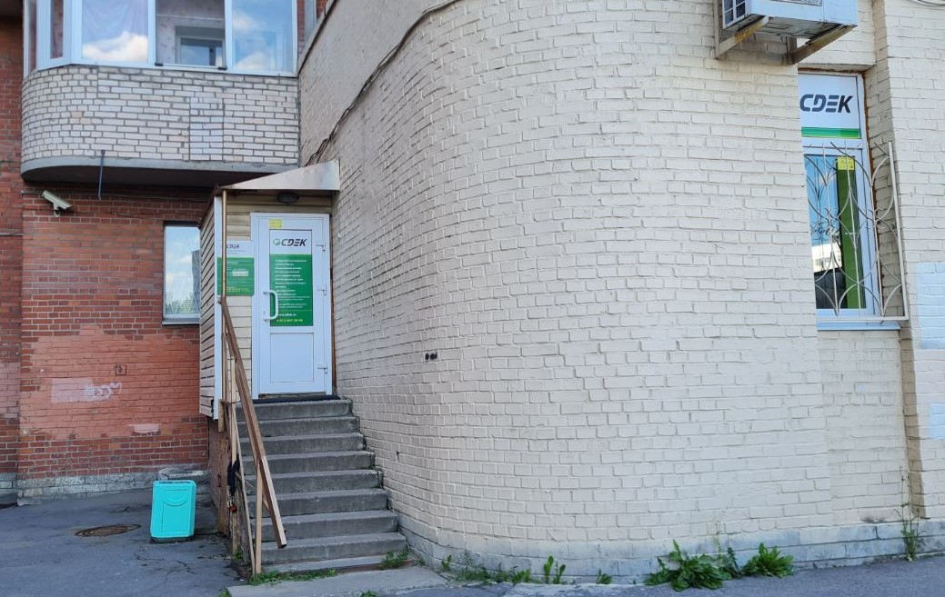От перекрестка Гладышевского и Юнтоловского проспекта обойти дом с пекарней пока не будет видно вывеску СДЭК через дворовый проезд.