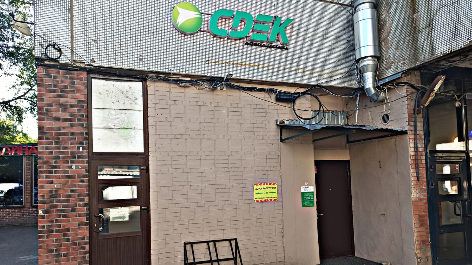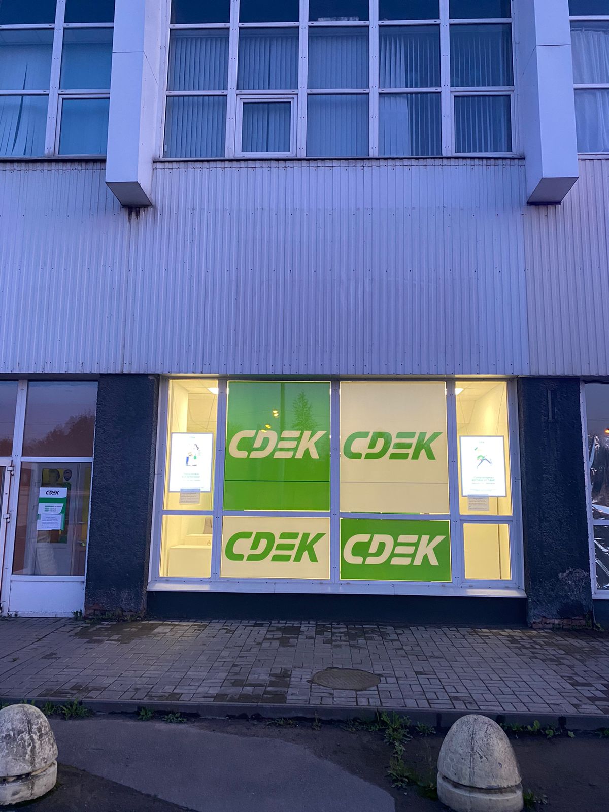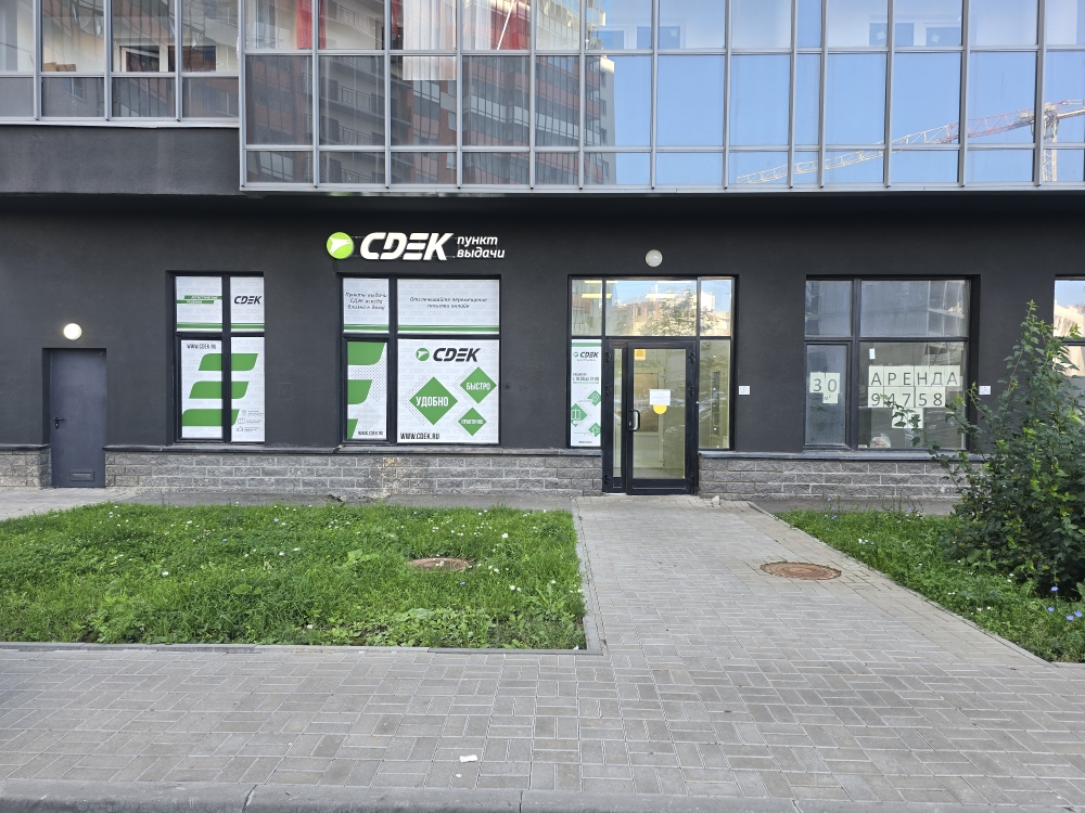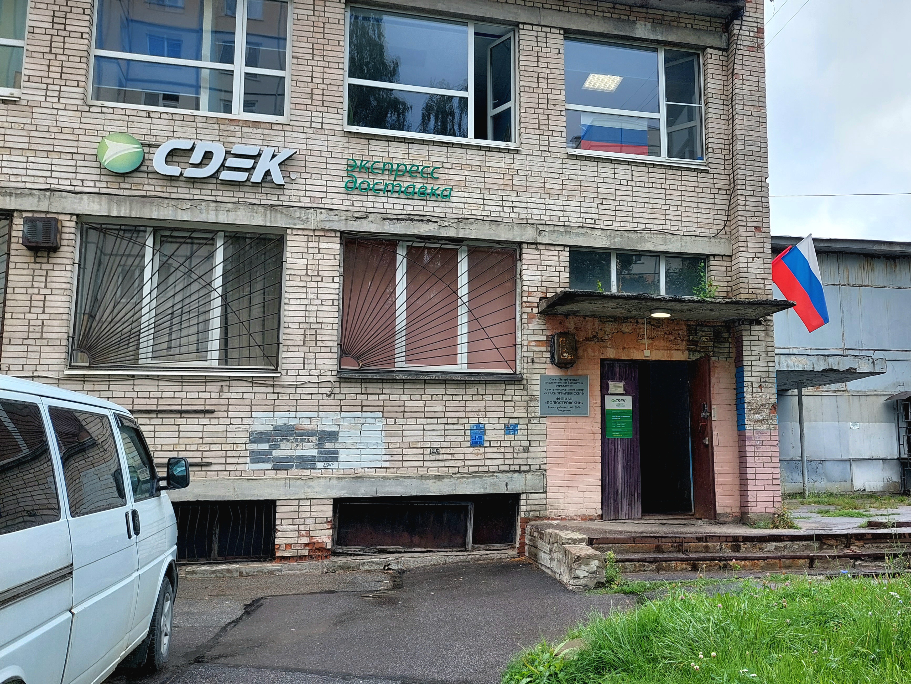 От перекрестка Гладышевского и Юнтоловского проспекта обойти дом с пекарней пока не будет видно вывеску СДЭК через дворовый проезд.