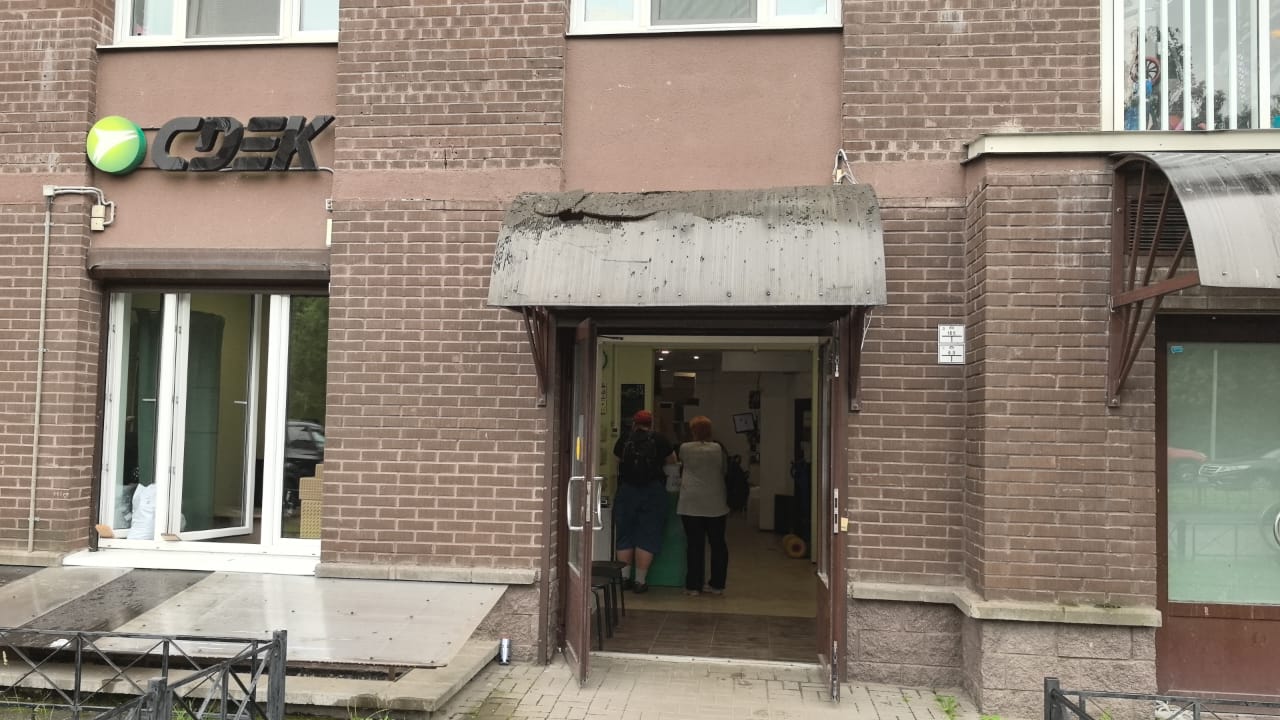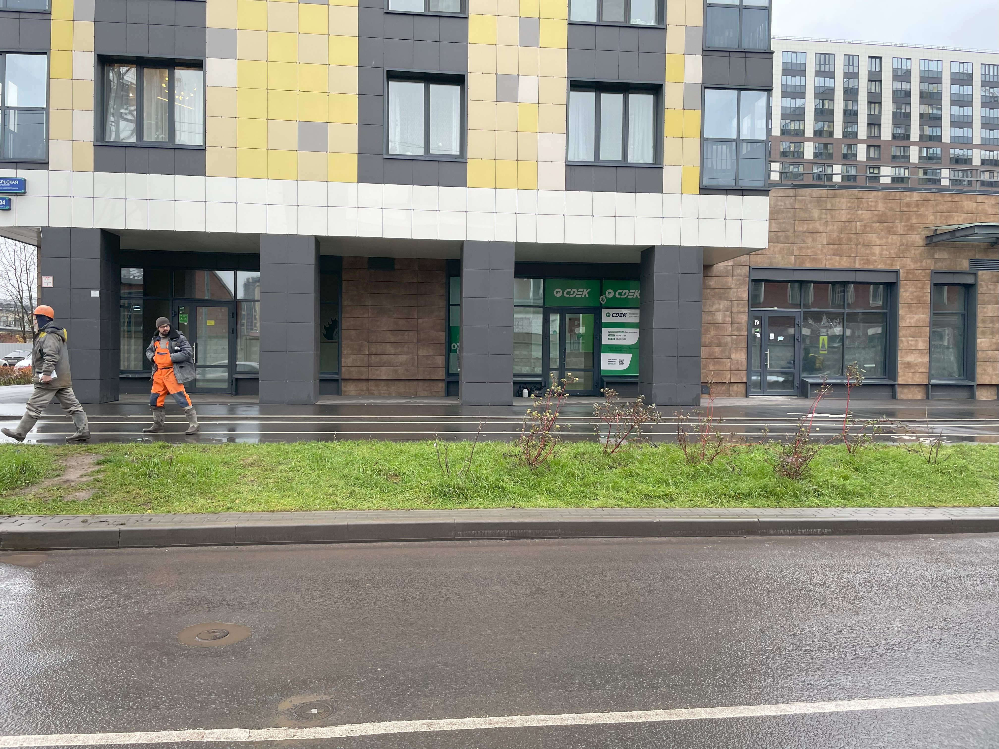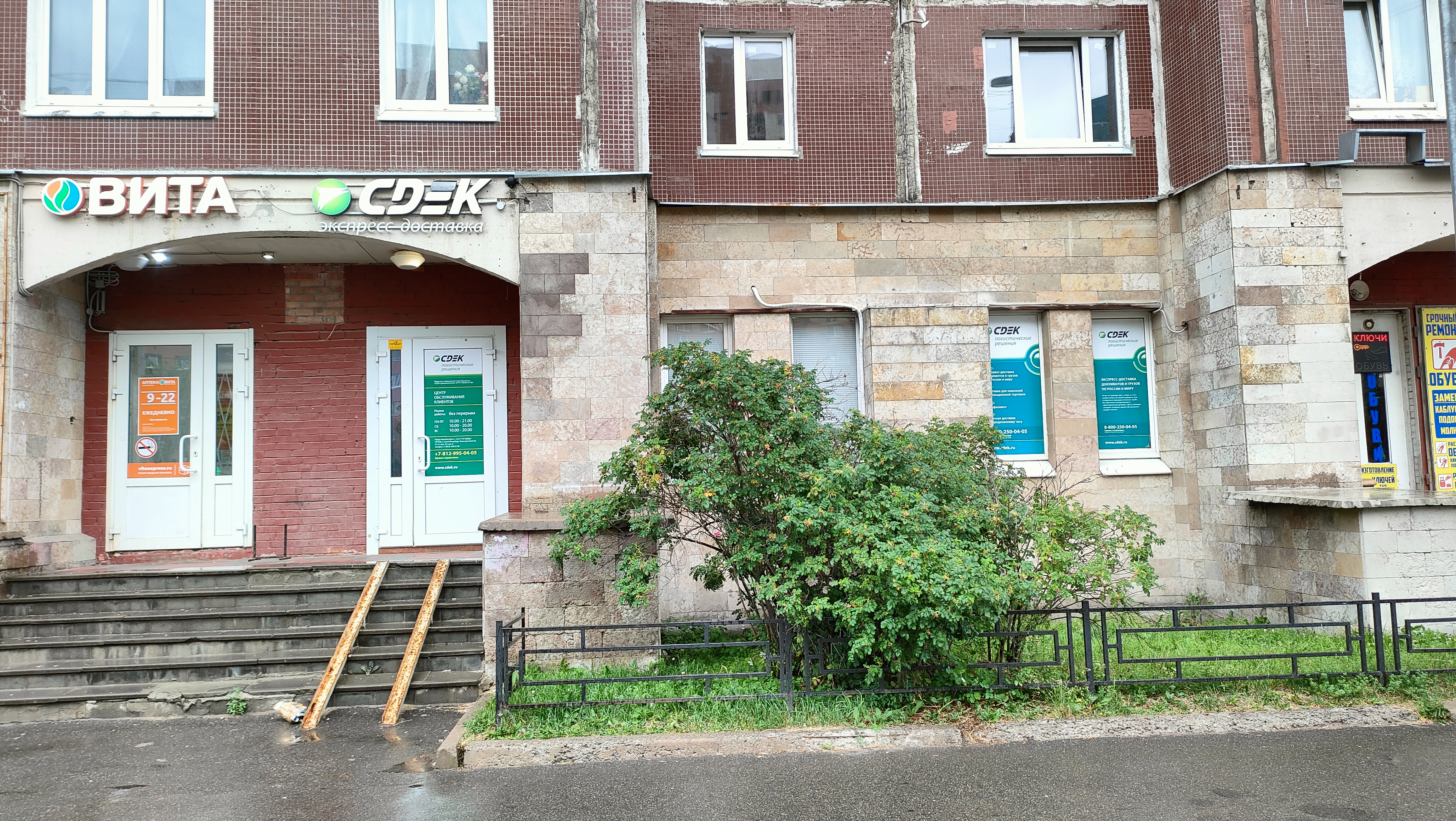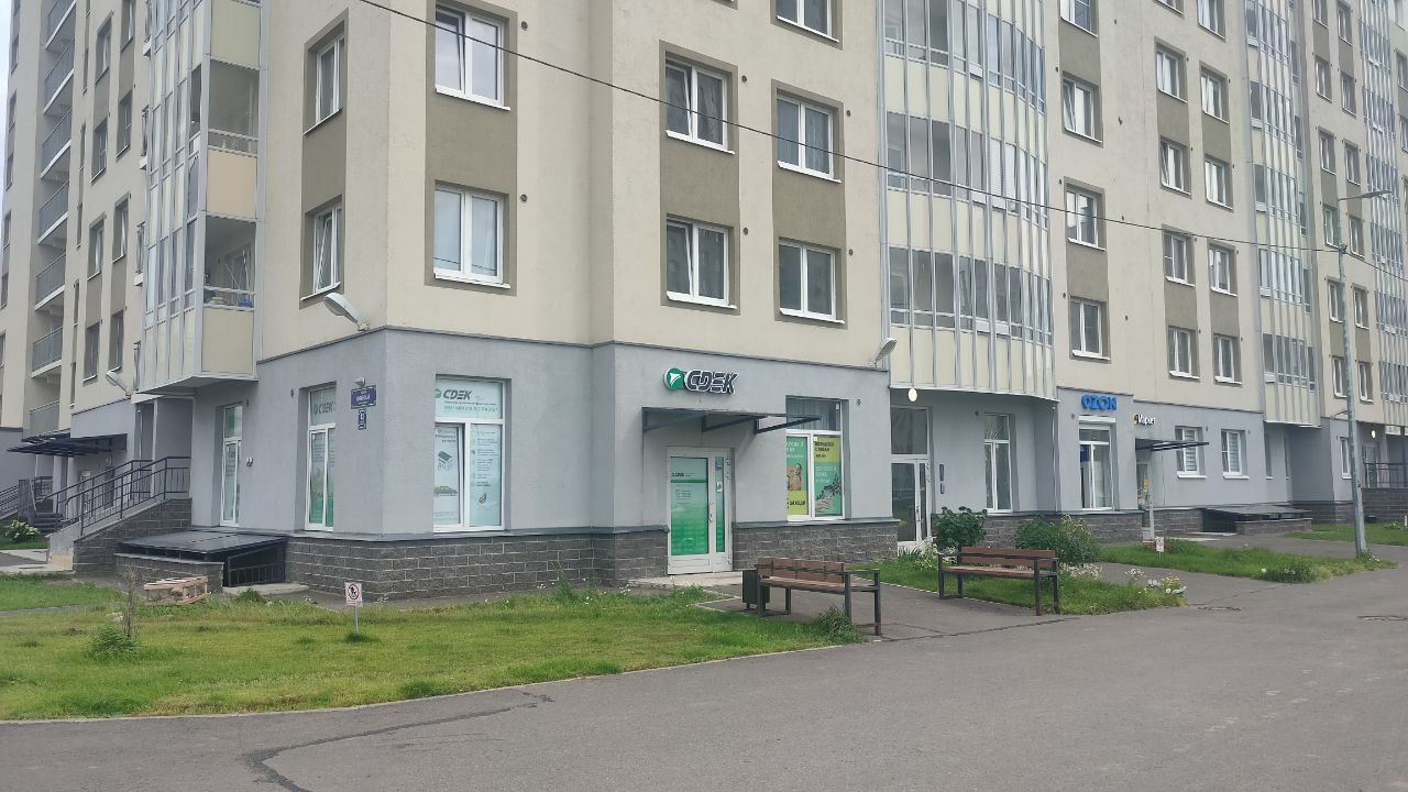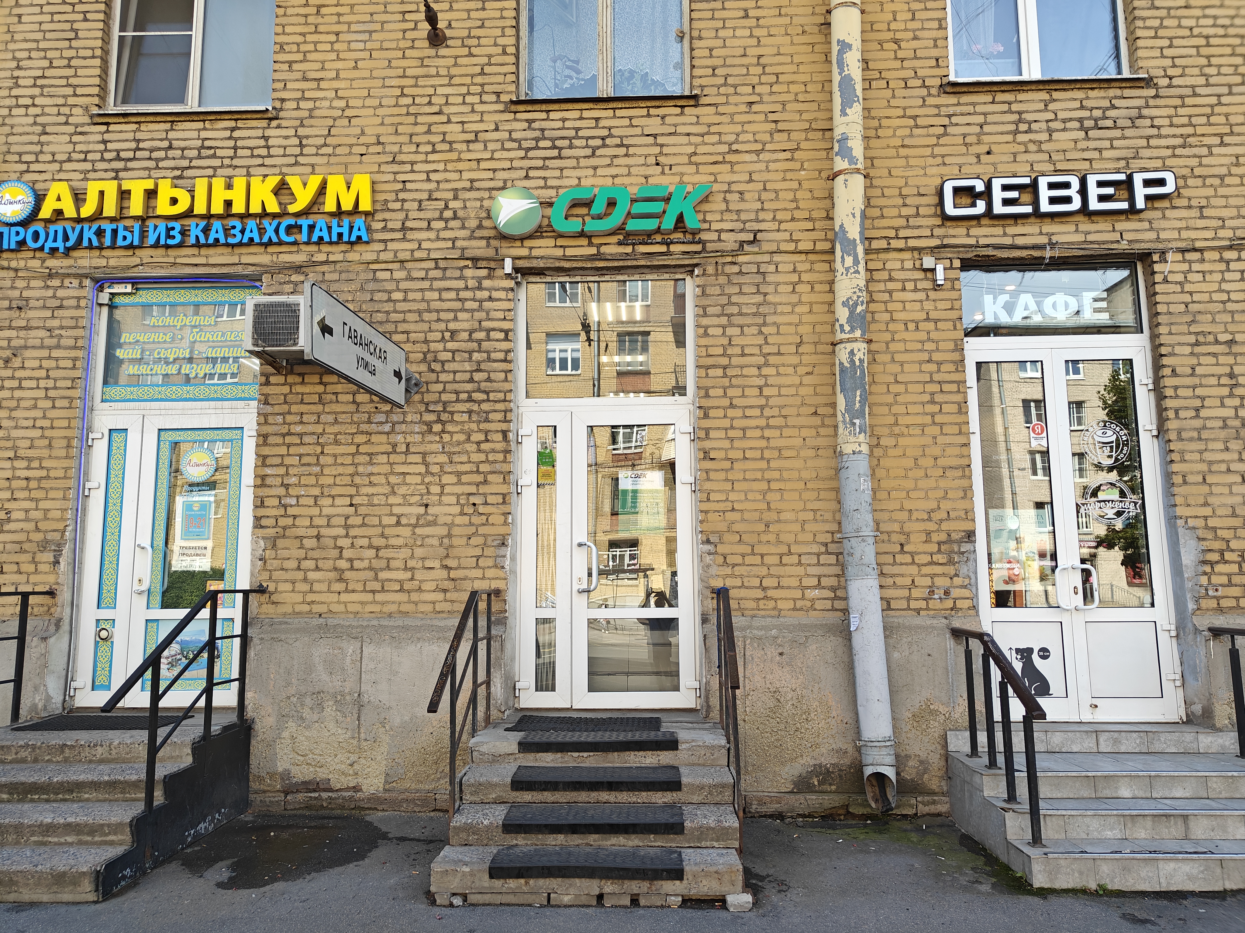 От перекрестка Гладышевского и Юнтоловского проспекта обойти дом с пекарней пока не будет видно вывеску СДЭК через дворовый проезд.