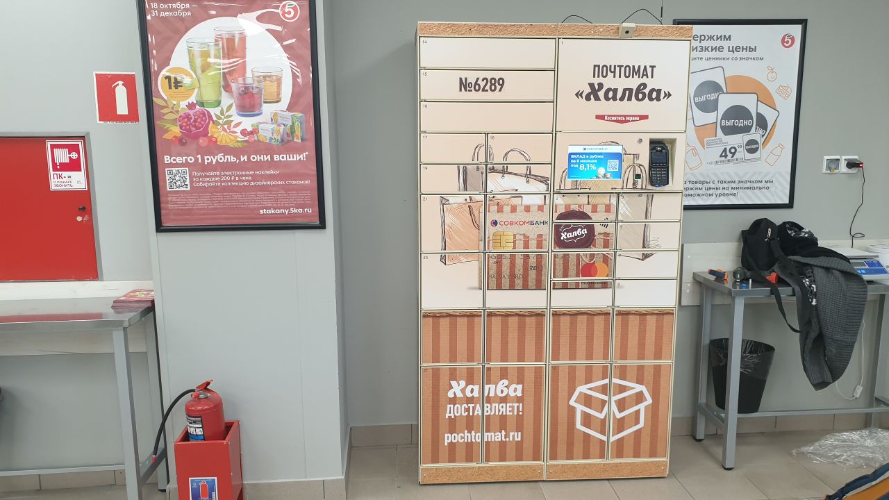 Почтомат Халва. Войти в супермаркет Магнит через центральный вход, на 1 этаже около входа расположен почтомат