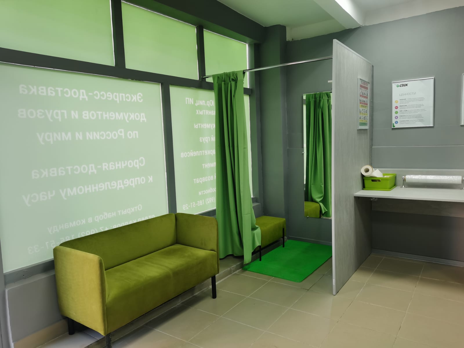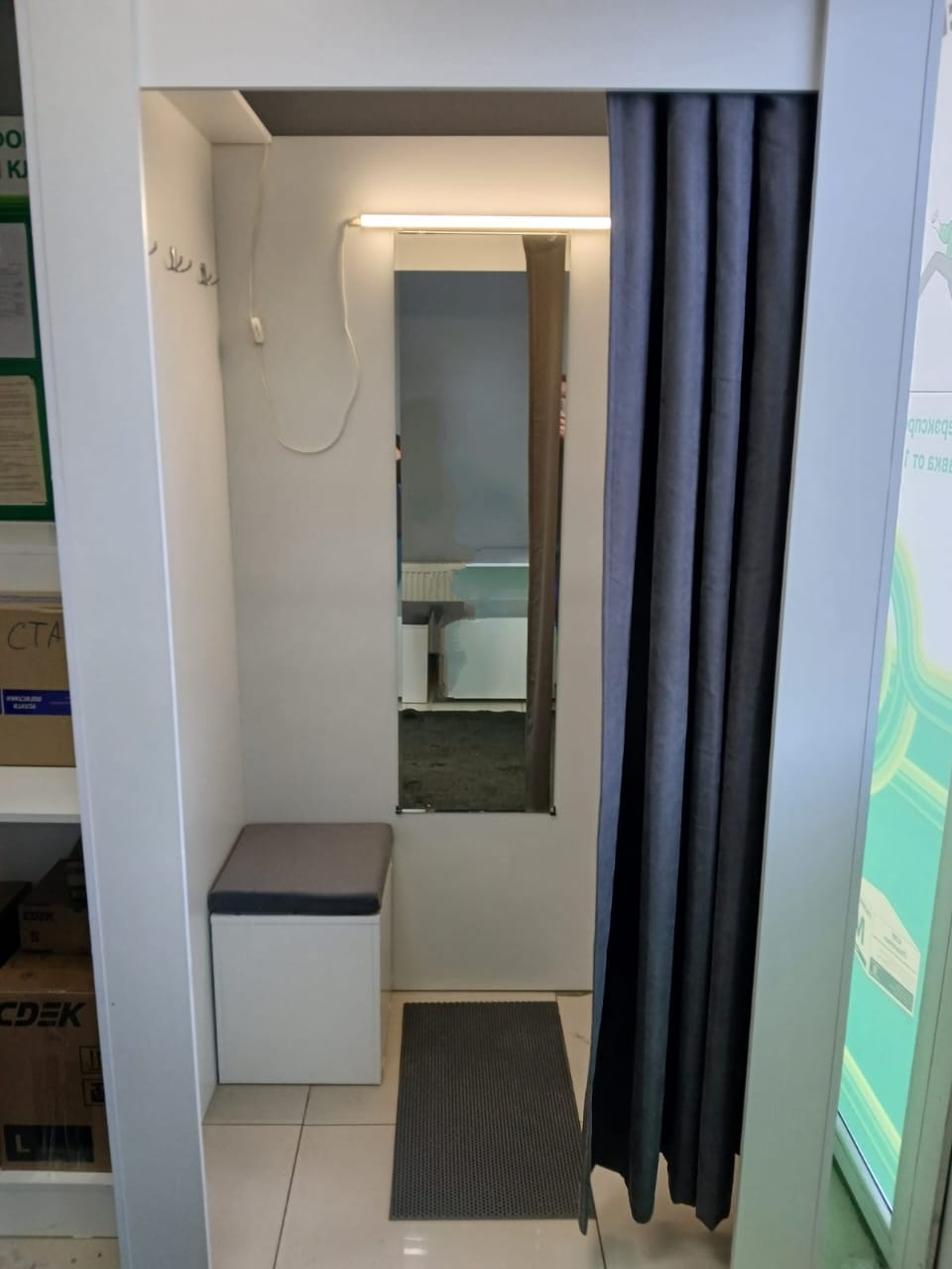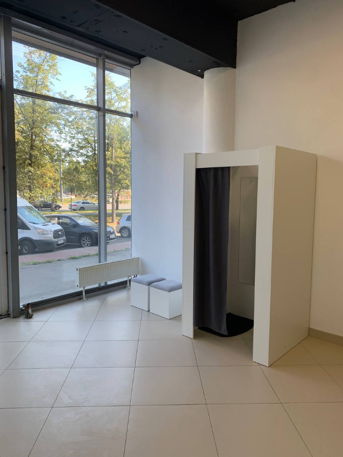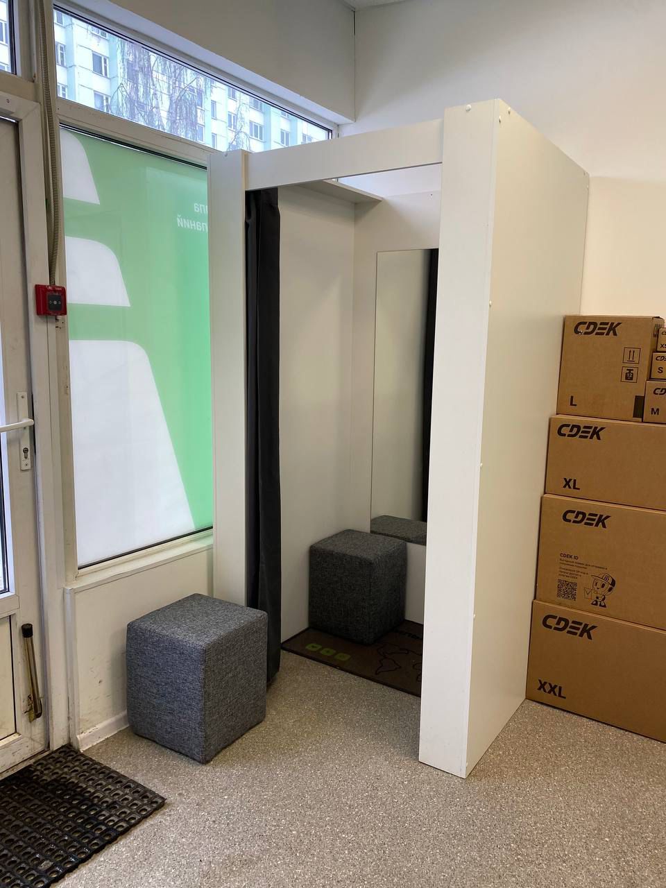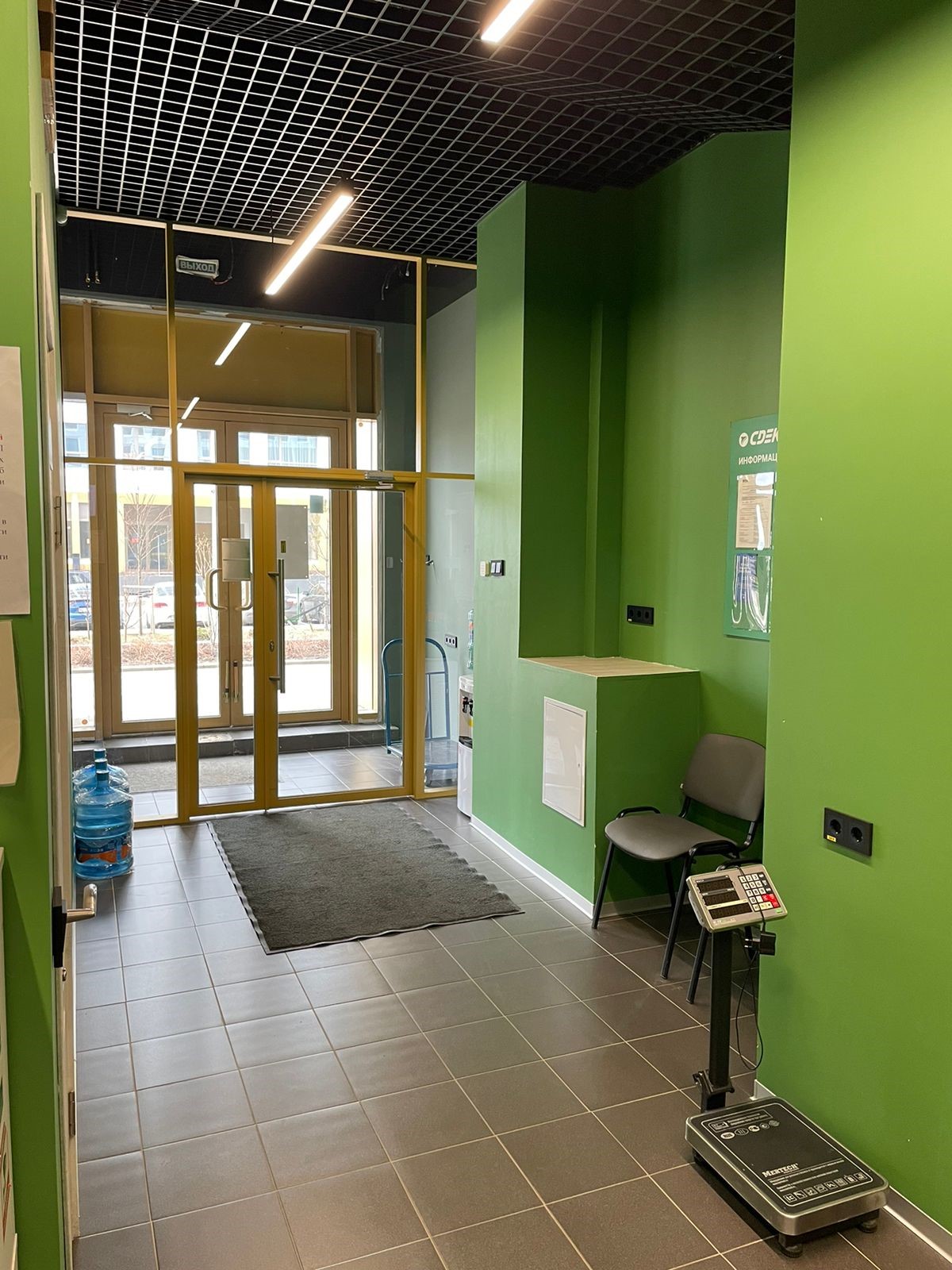 Войти в административное здание. Вход справа от мебельного салона (черная дверь). Постамат расположен на 1 этаже при входе.