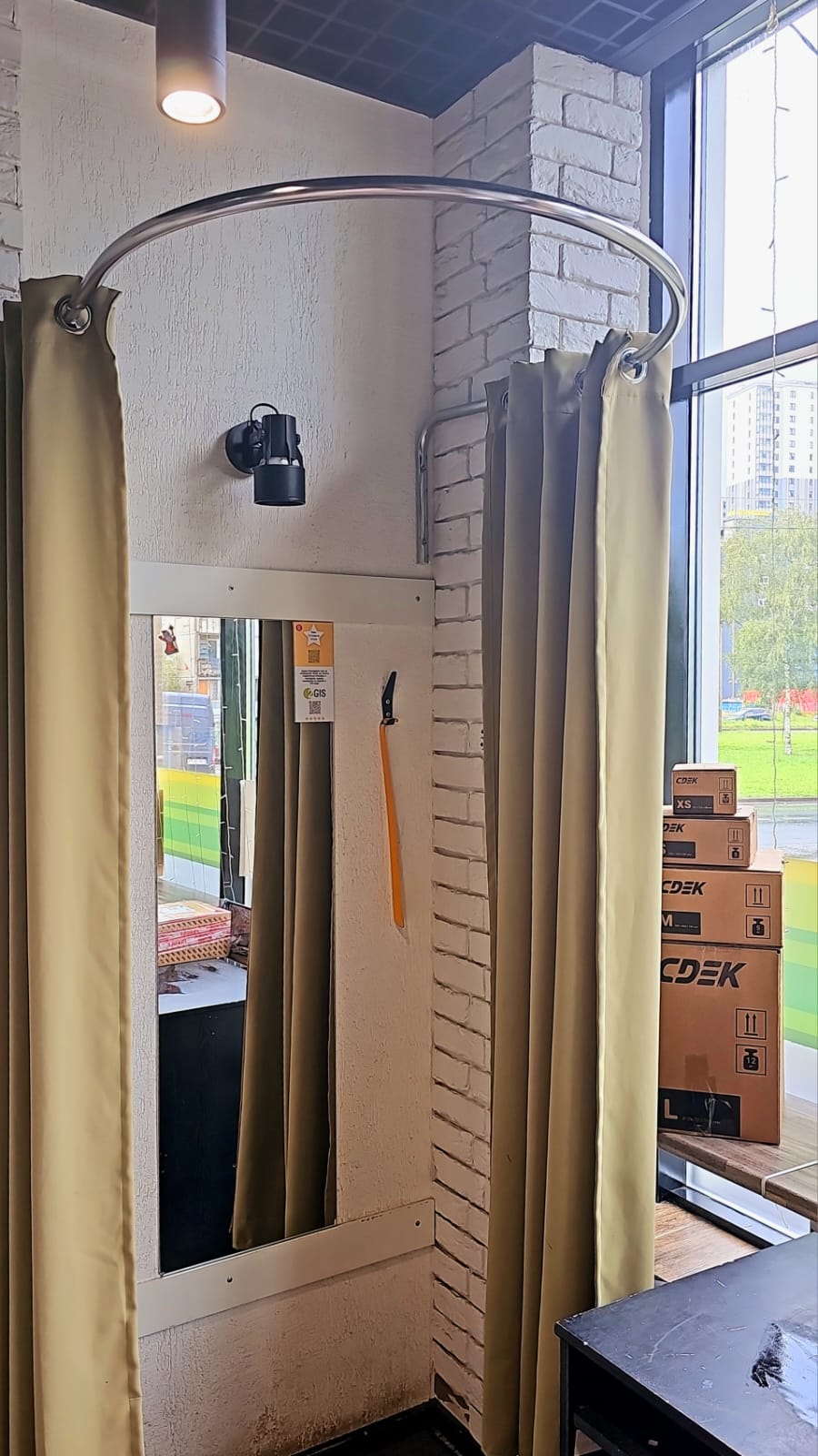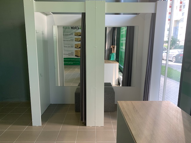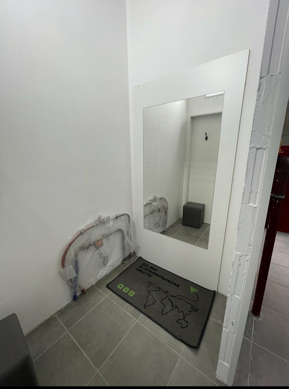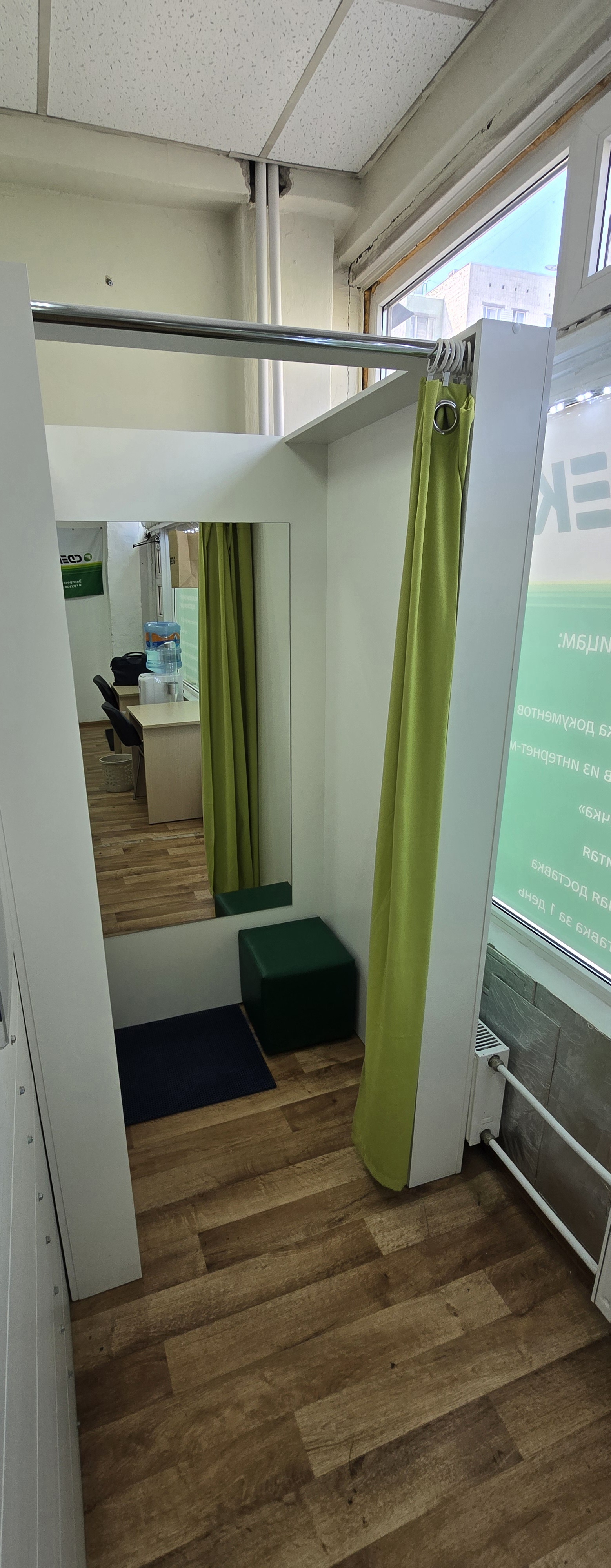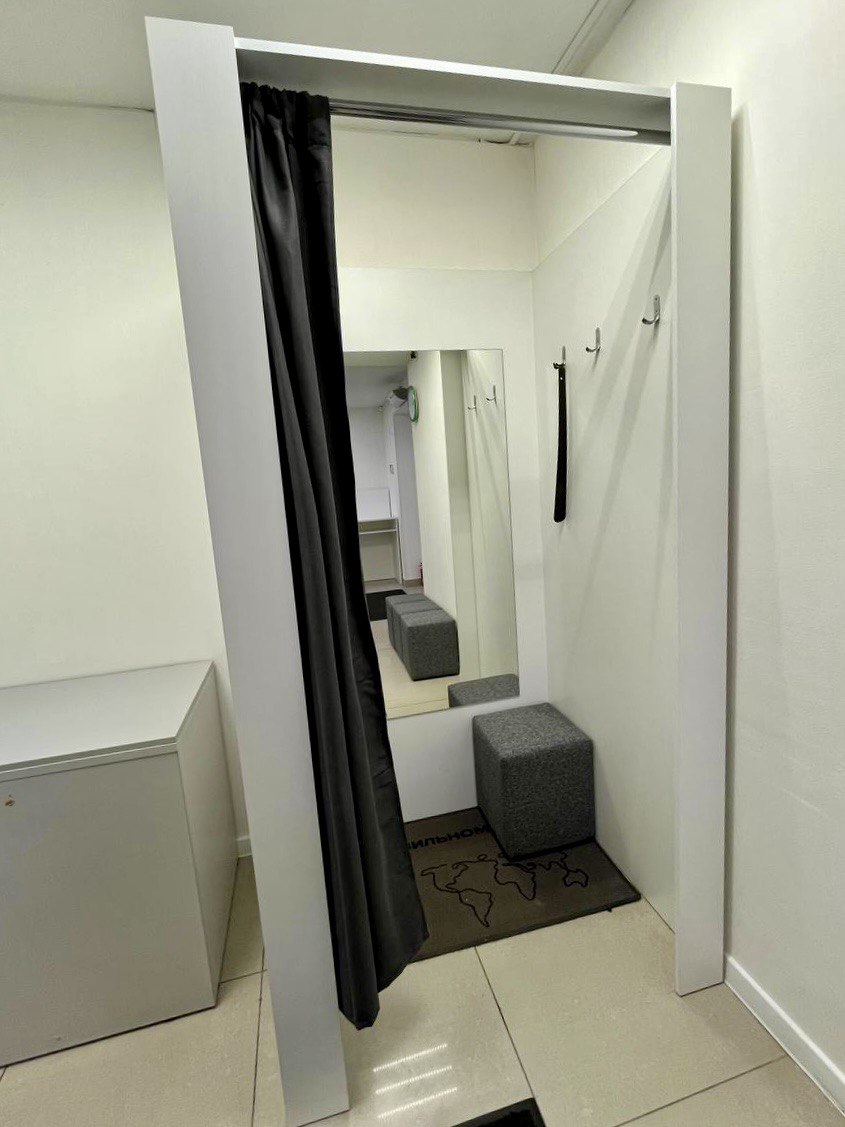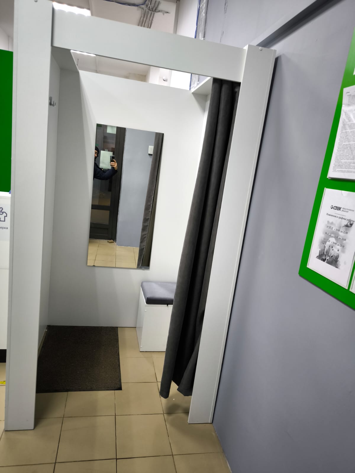 Войти в административное здание. Вход справа от мебельного салона (черная дверь). Постамат расположен на 1 этаже при входе.