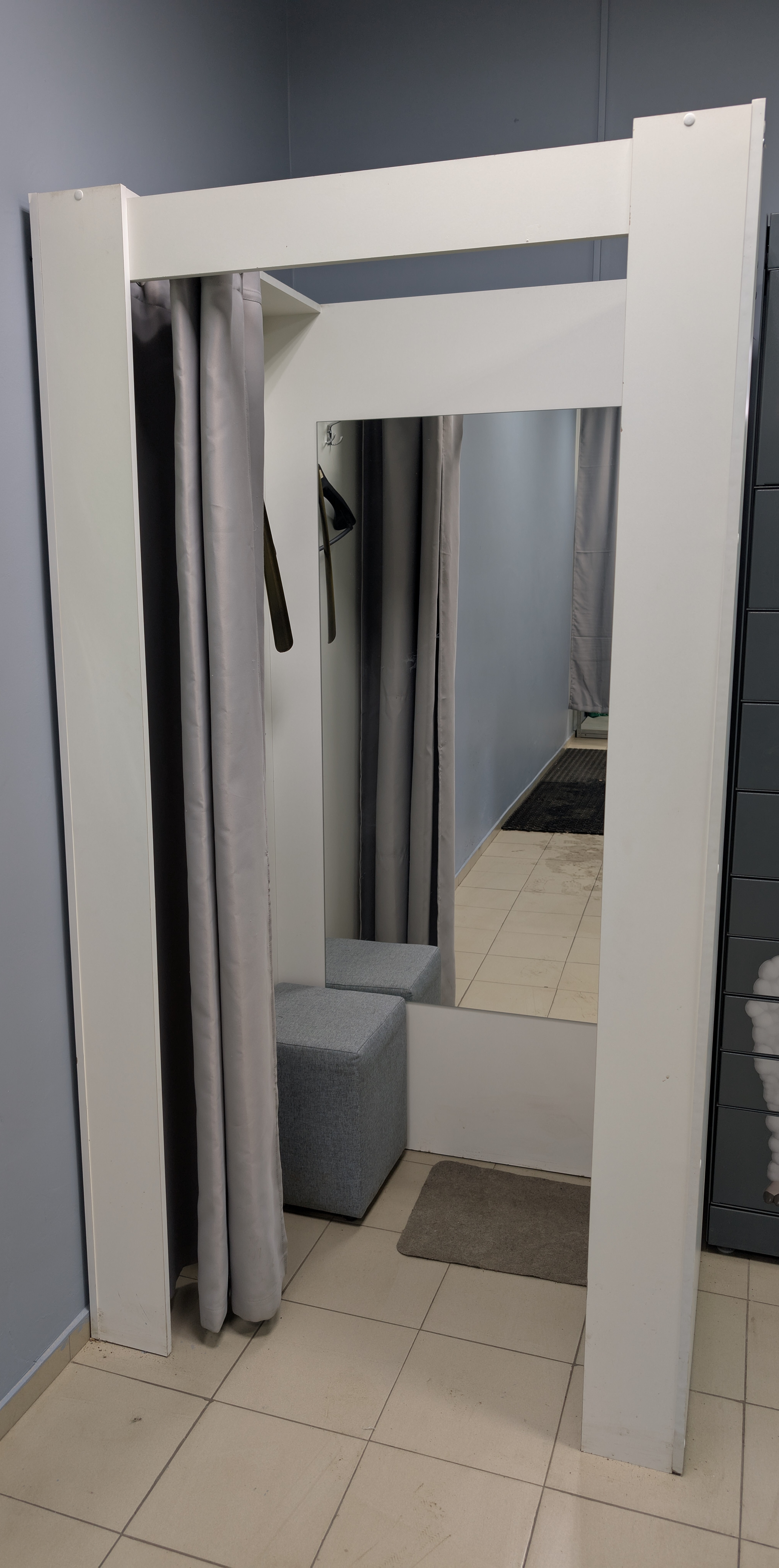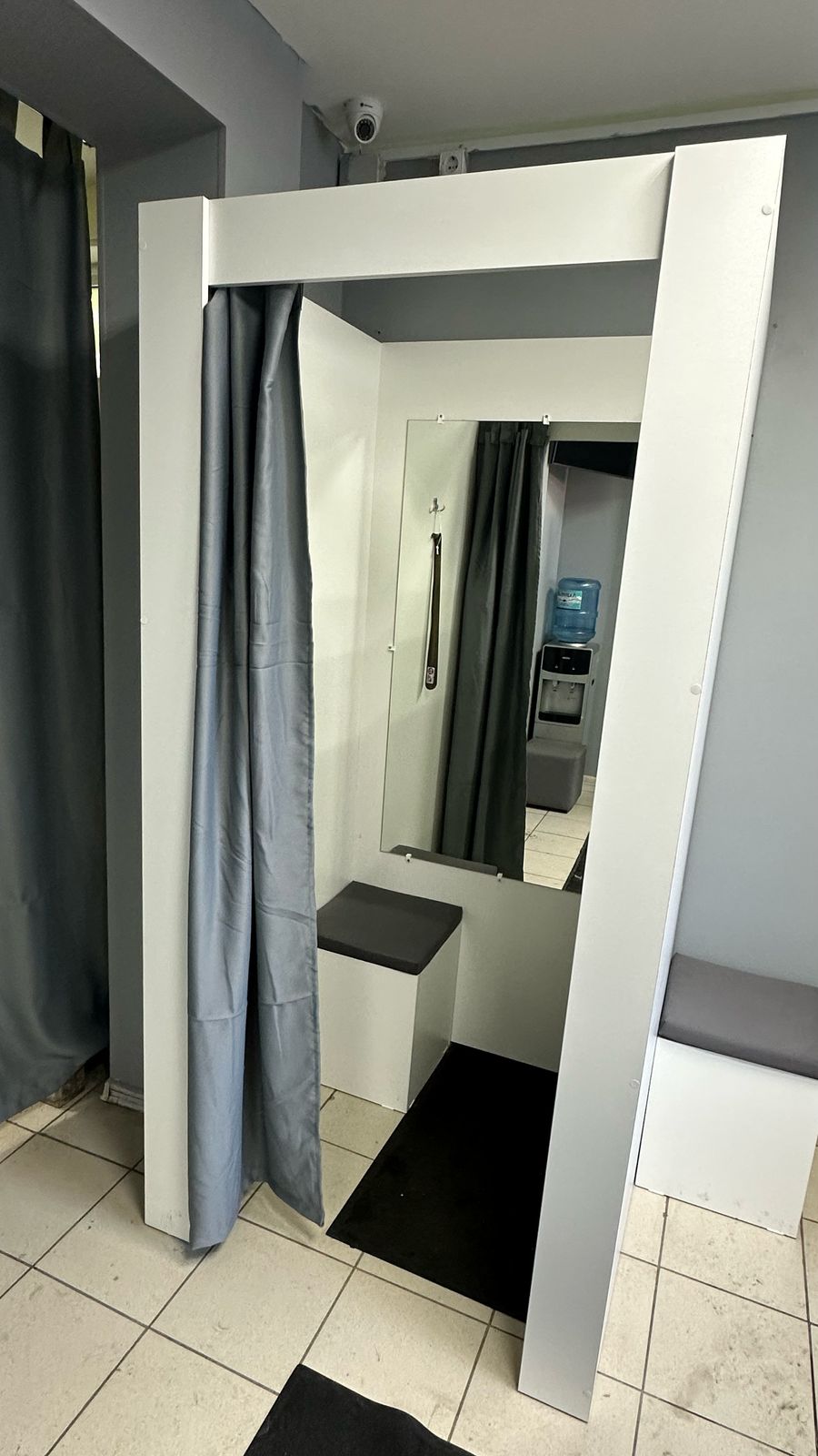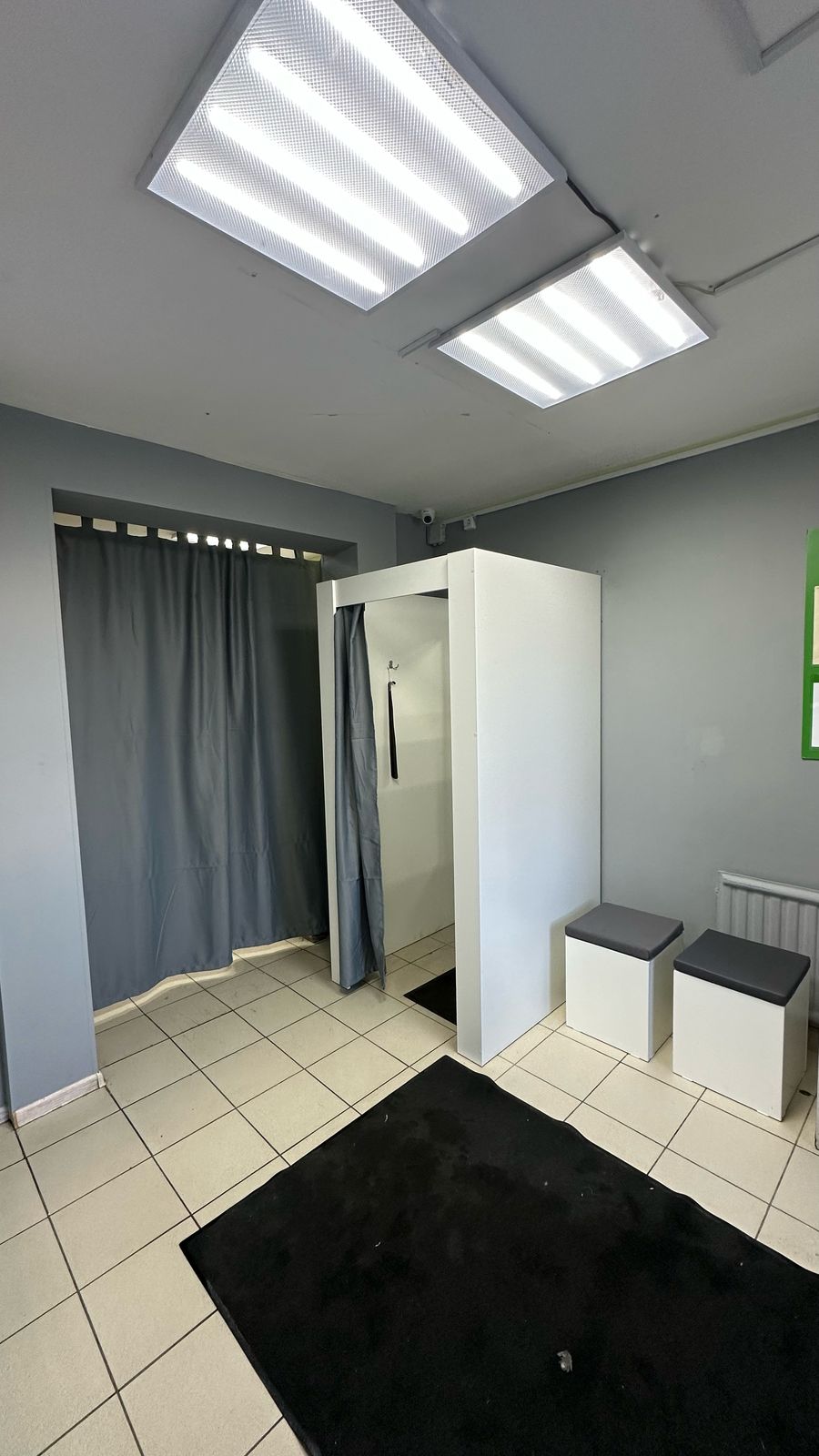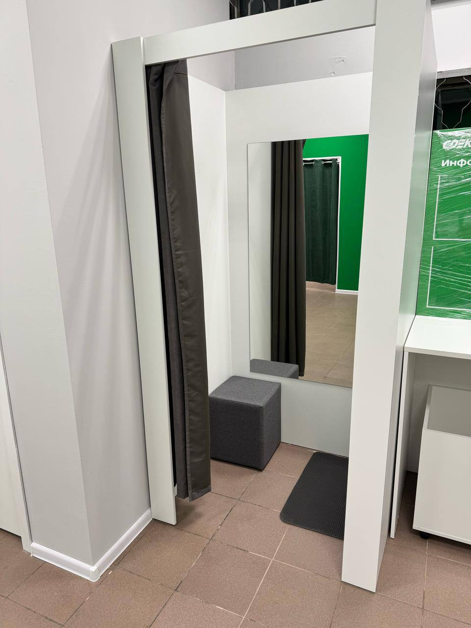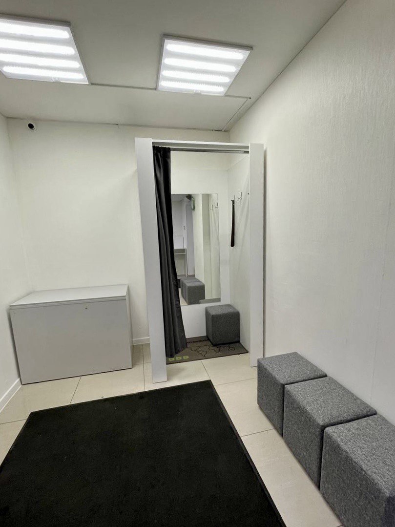 Войти в административное здание. Вход справа от мебельного салона (черная дверь). Постамат расположен на 1 этаже при входе.