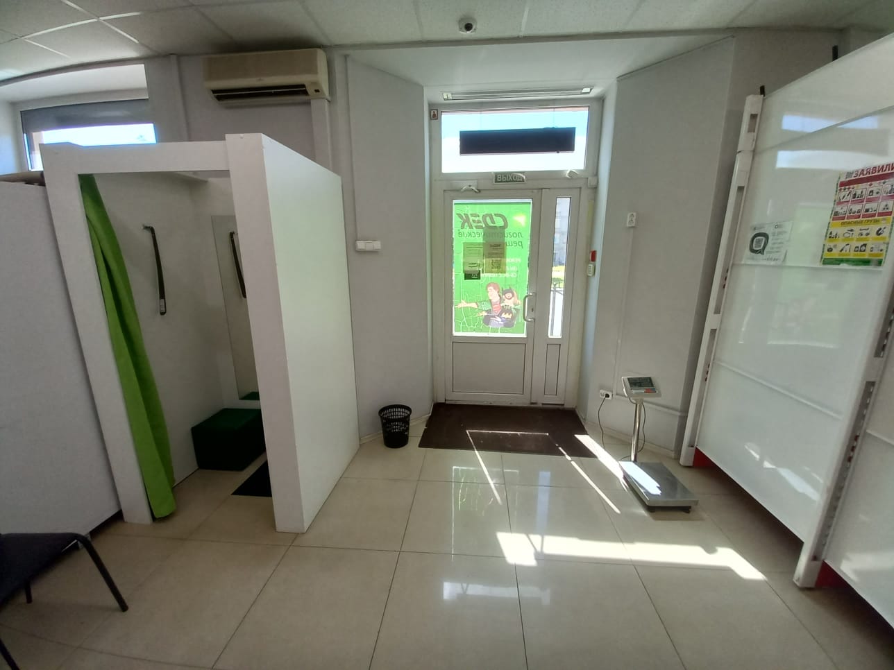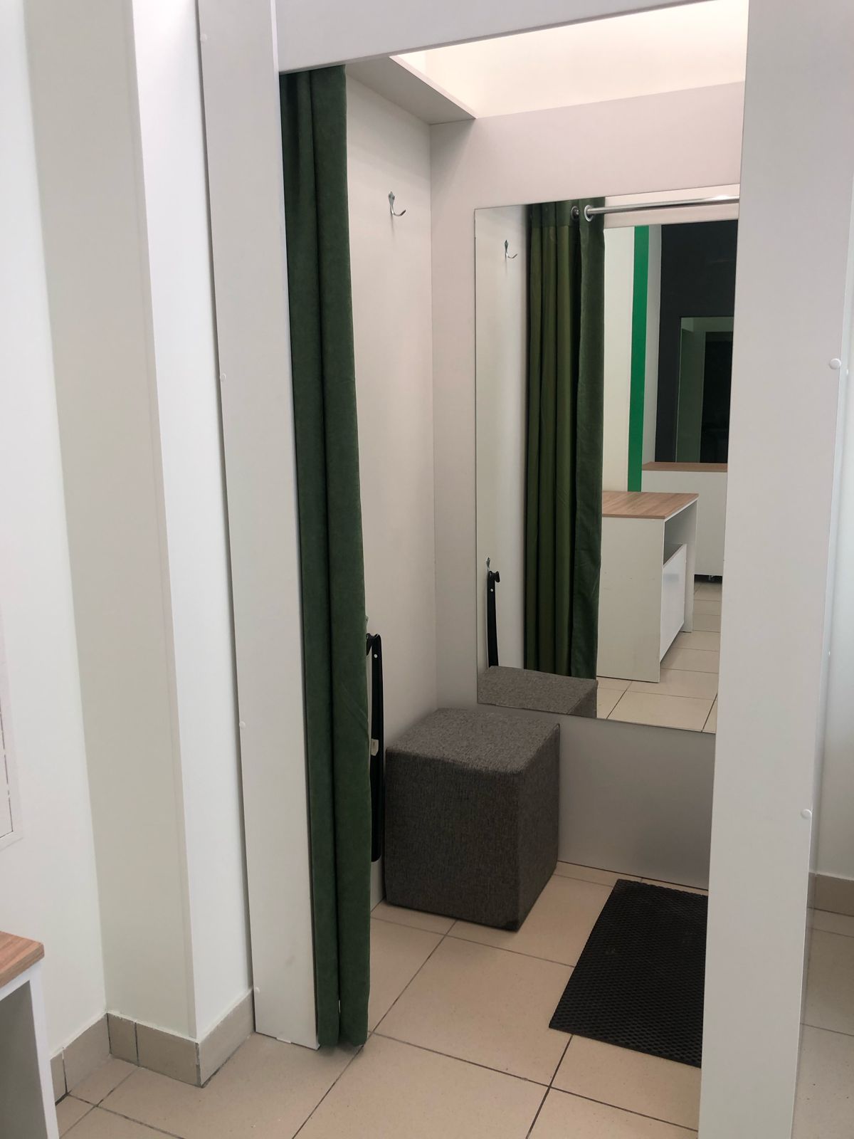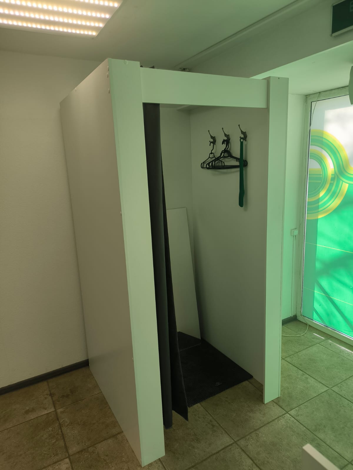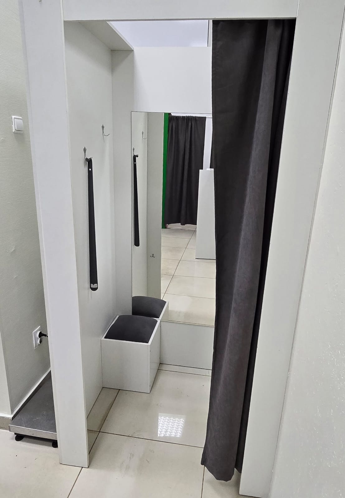 Войти в административное здание. Вход справа от мебельного салона (черная дверь). Постамат расположен на 1 этаже при входе.